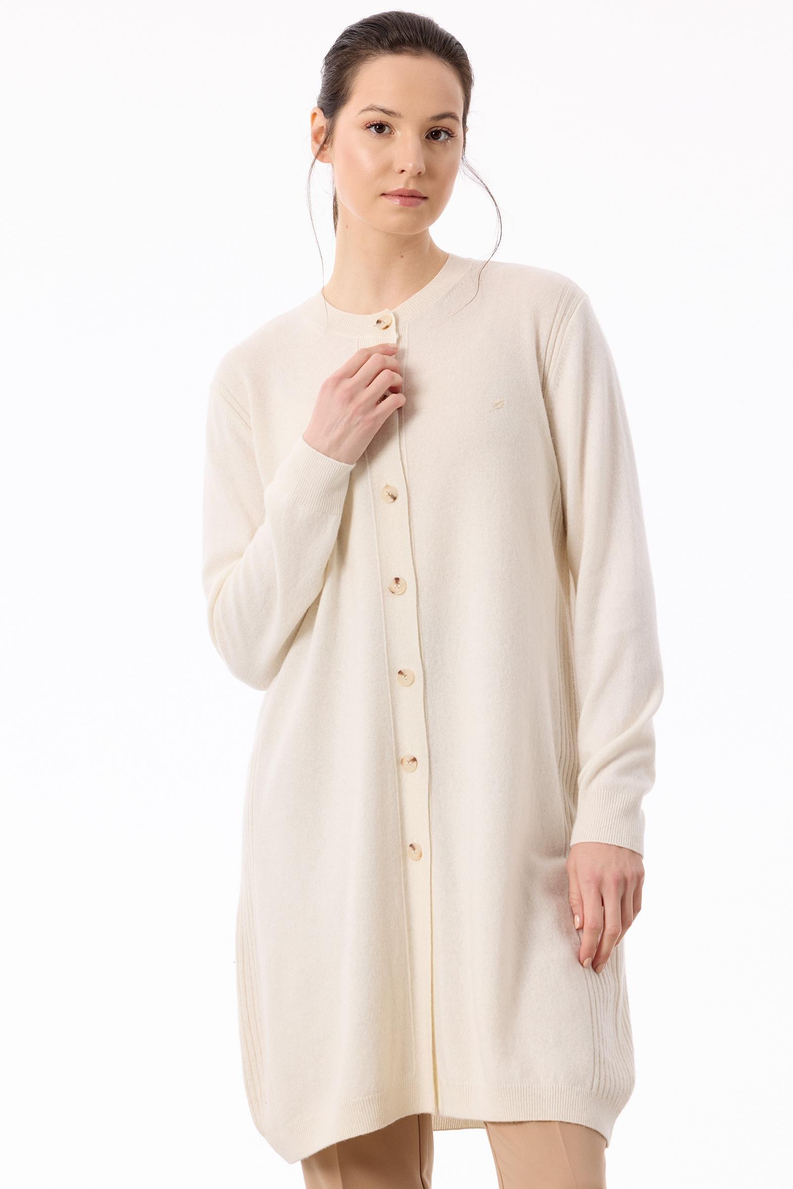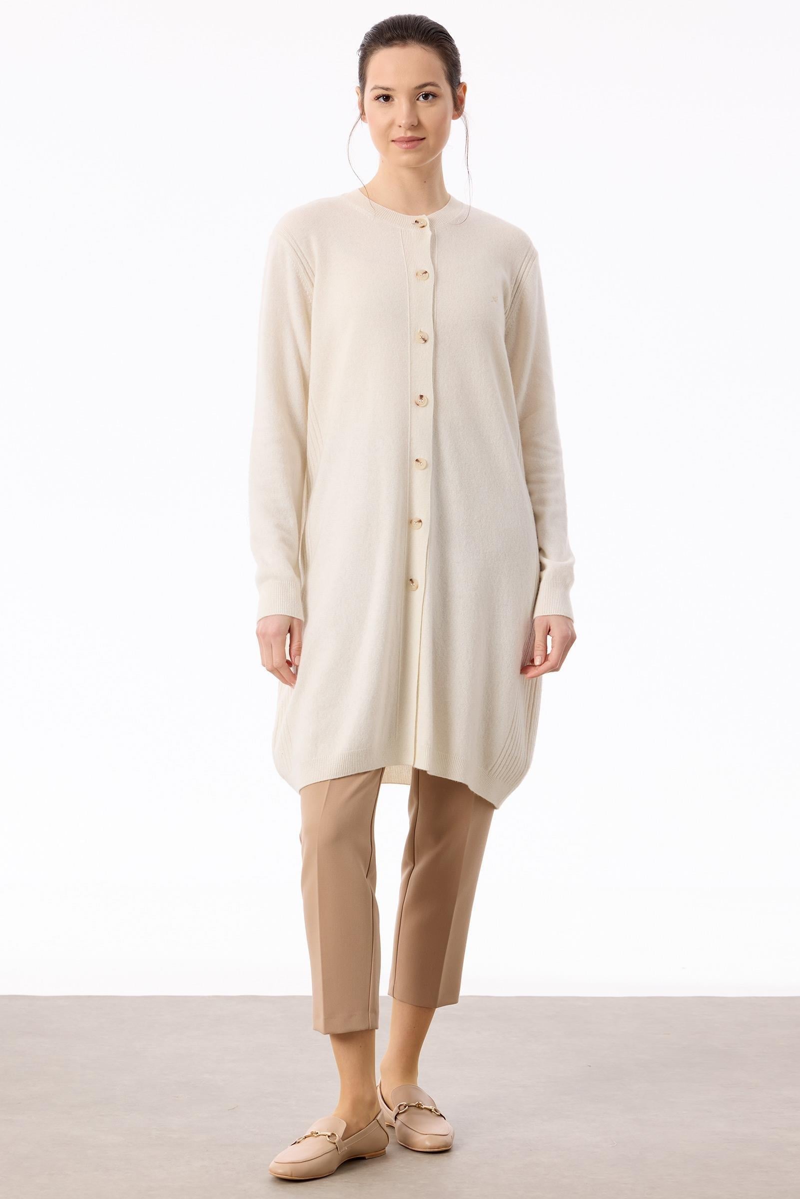 Basic Kaşmir Uzun Hırka EKRU (HRK.14571.1)