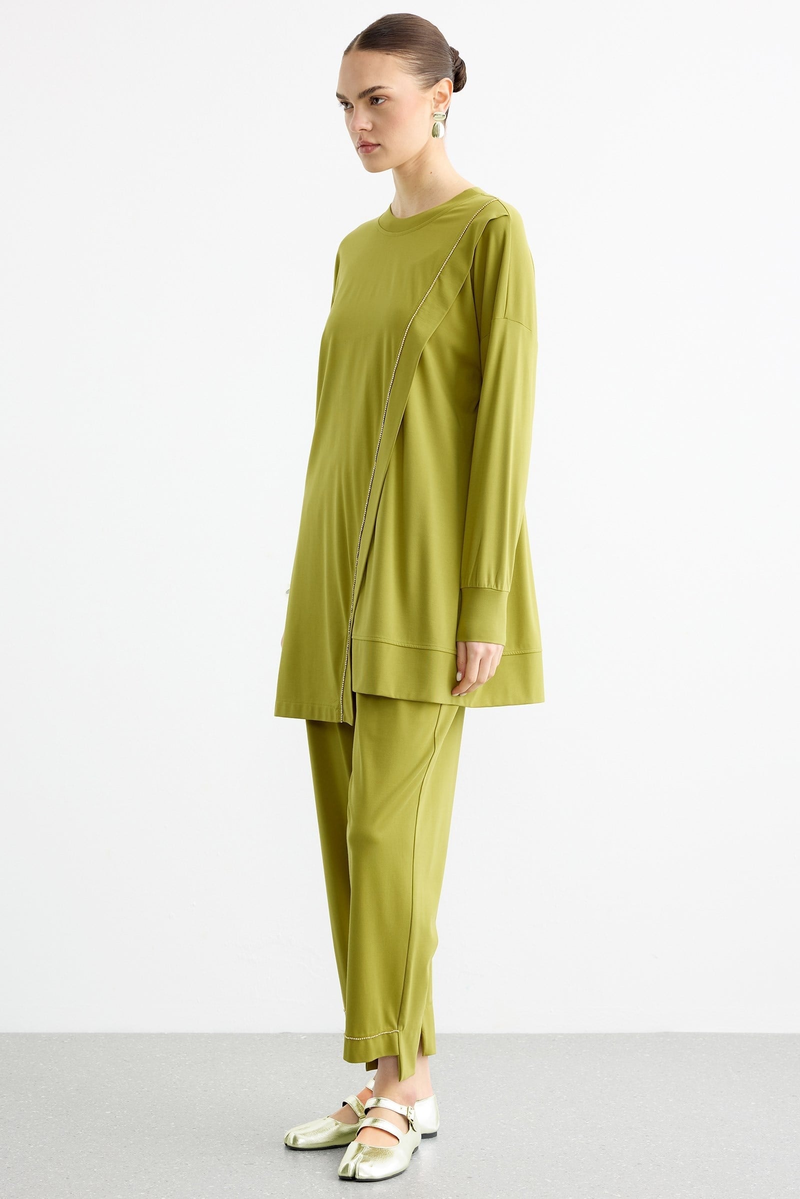 Çapraz Bantlı Tunik Kademeli Pantolon Takım YEŞİL (TKM.3113.01)