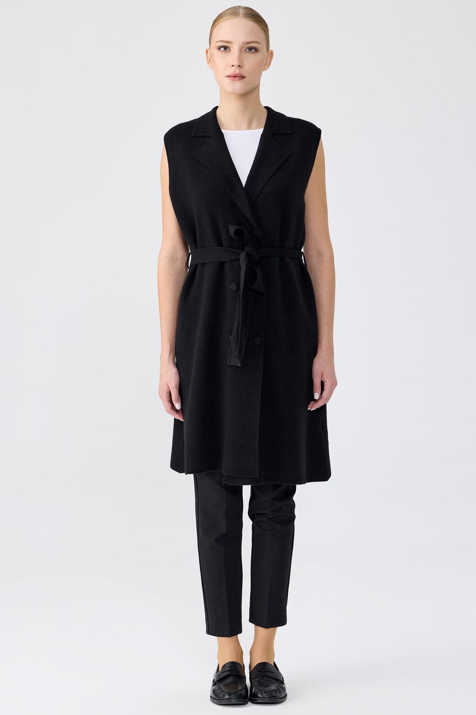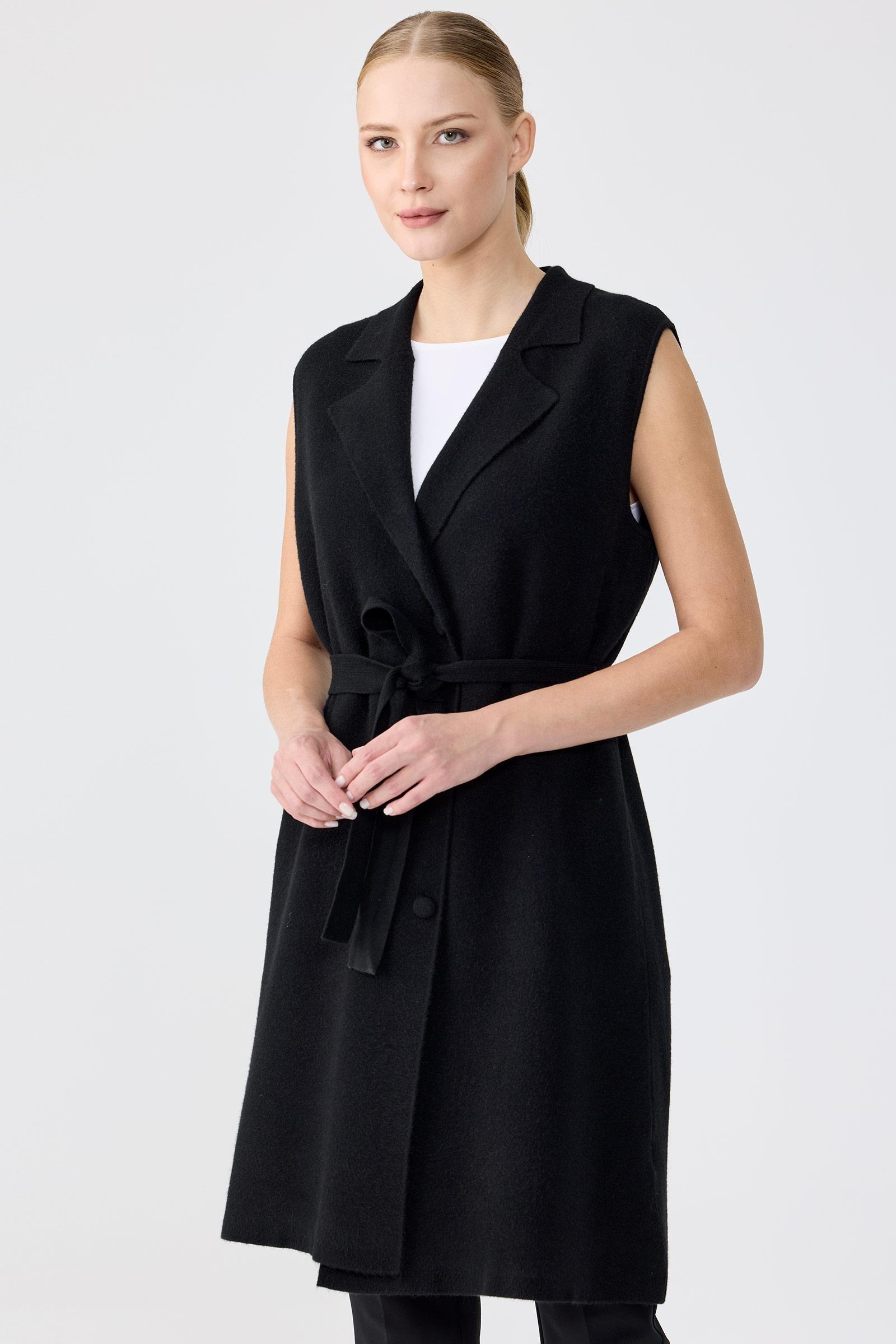 Kruvaze Yaka Düğmeli Triko Yelek SİYAH (YLK.22013.1)