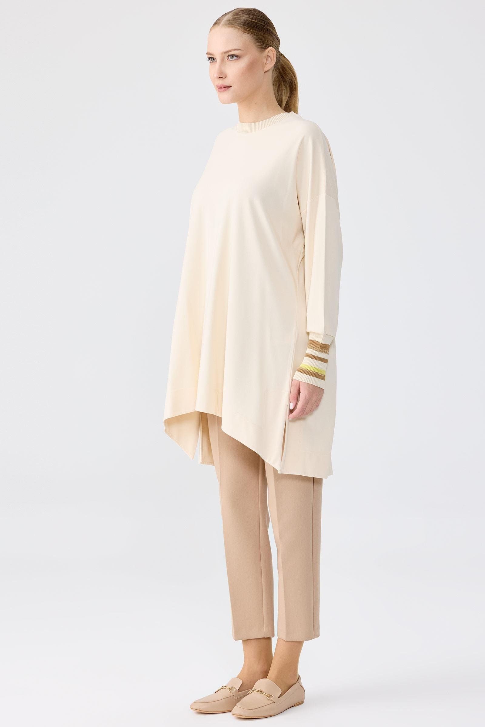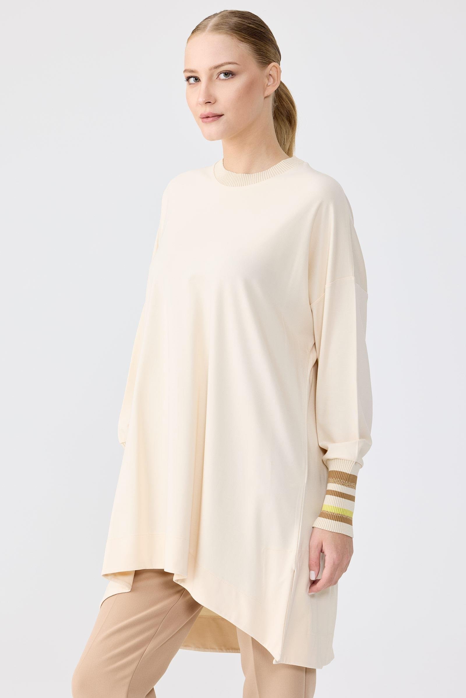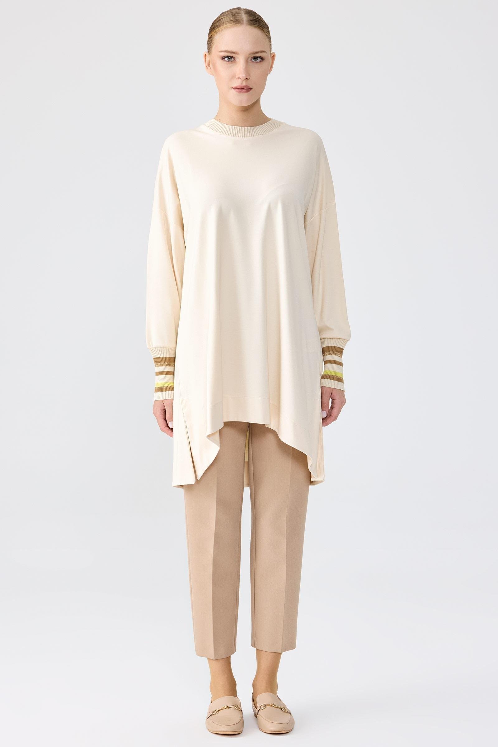 Manşetleri Çizgili Ribanalı Tunik BEJ (TNK.3067.01)