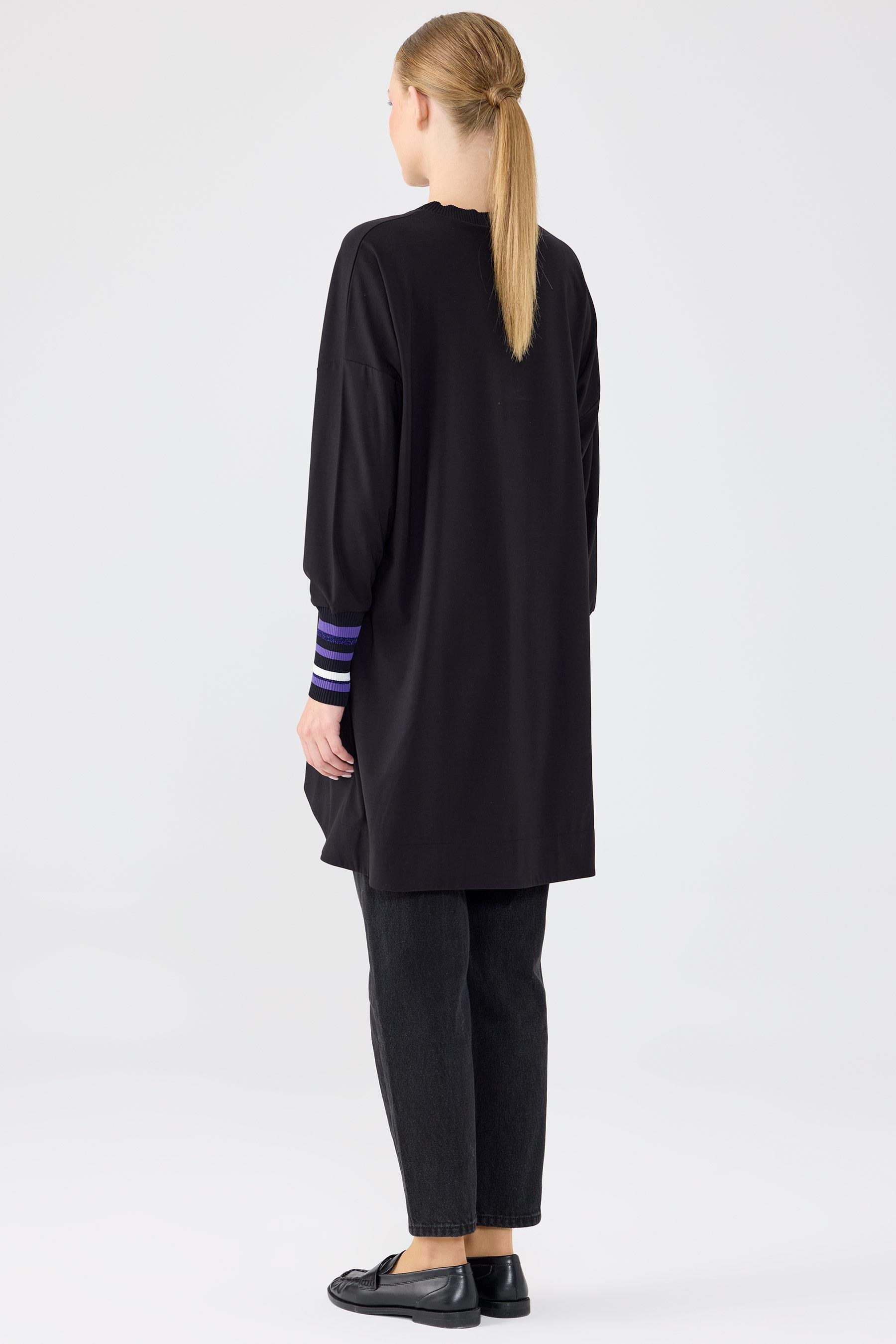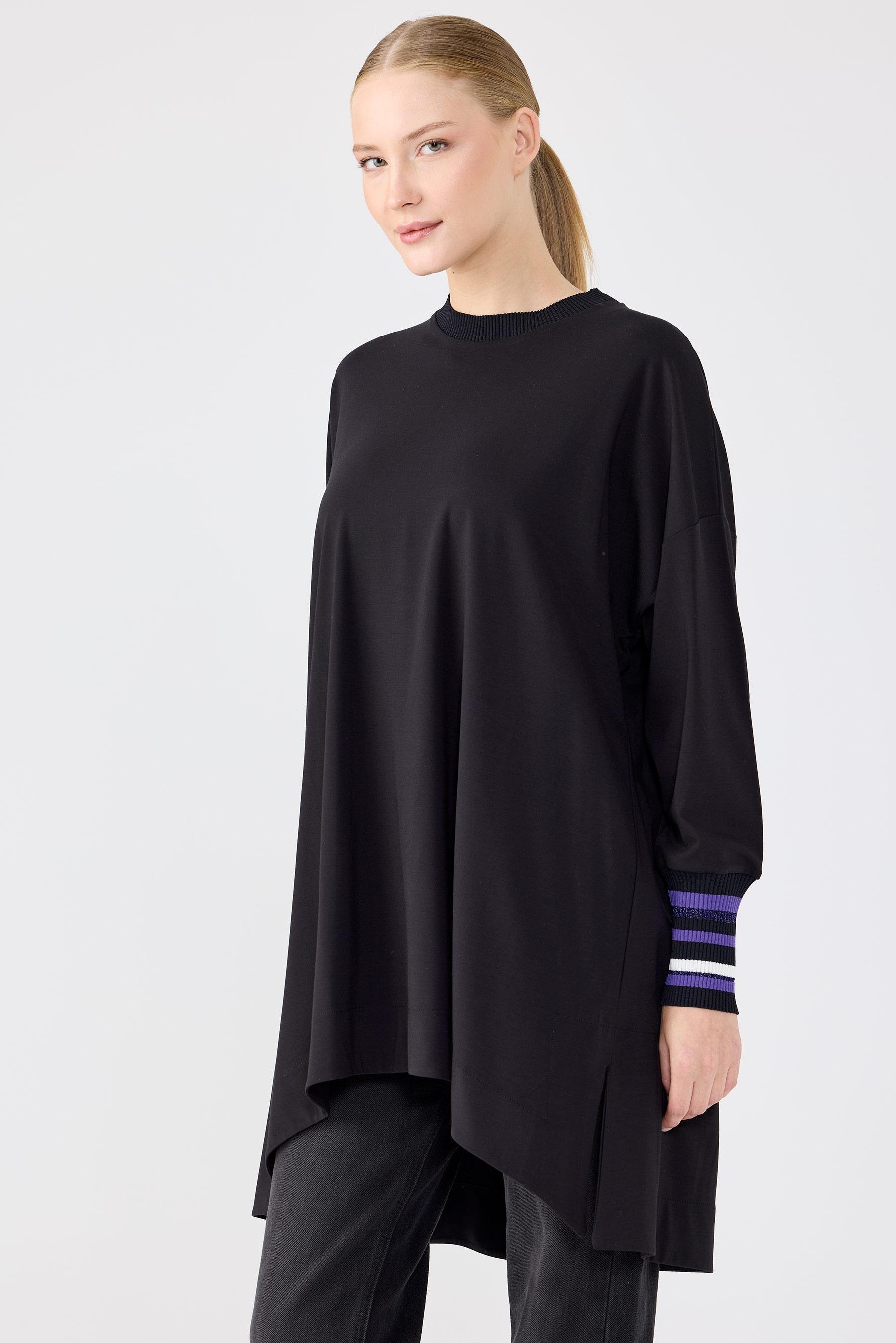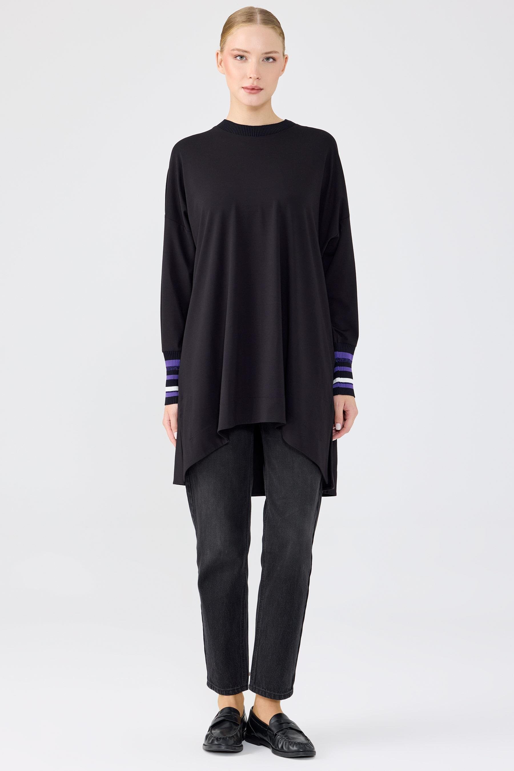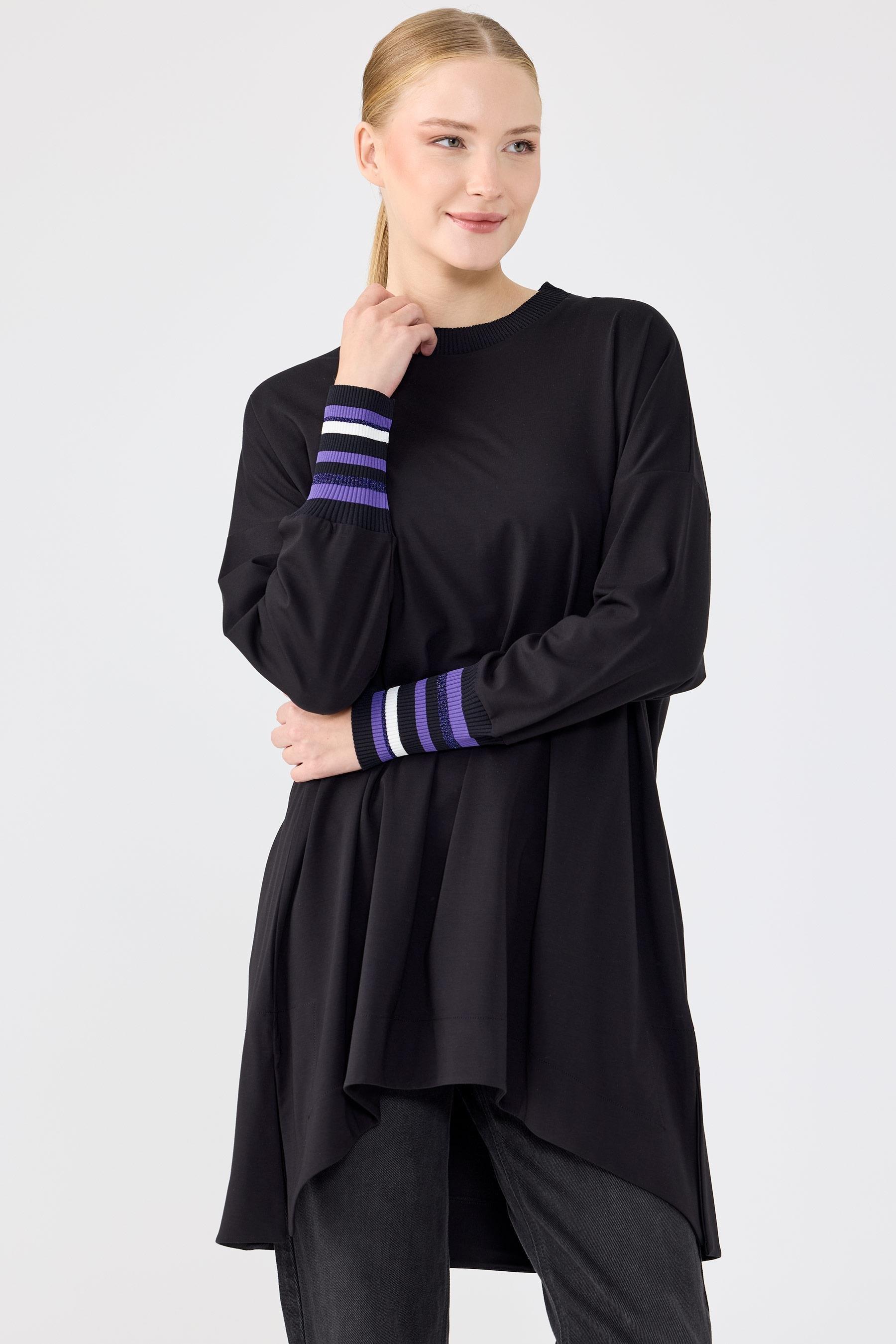 Manşetleri Çizgili Ribanalı Tunik SİYAH (TNK.3067.01)