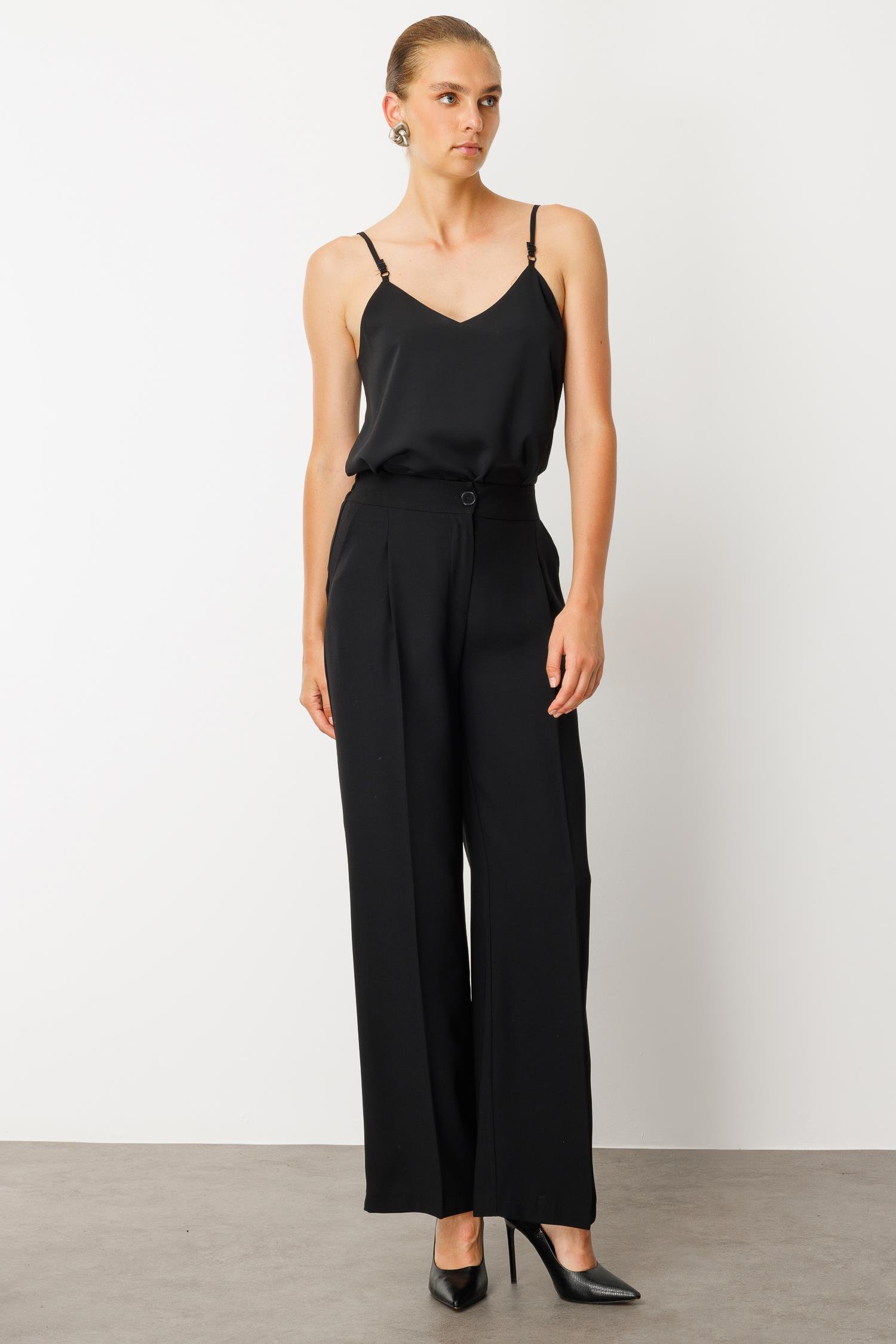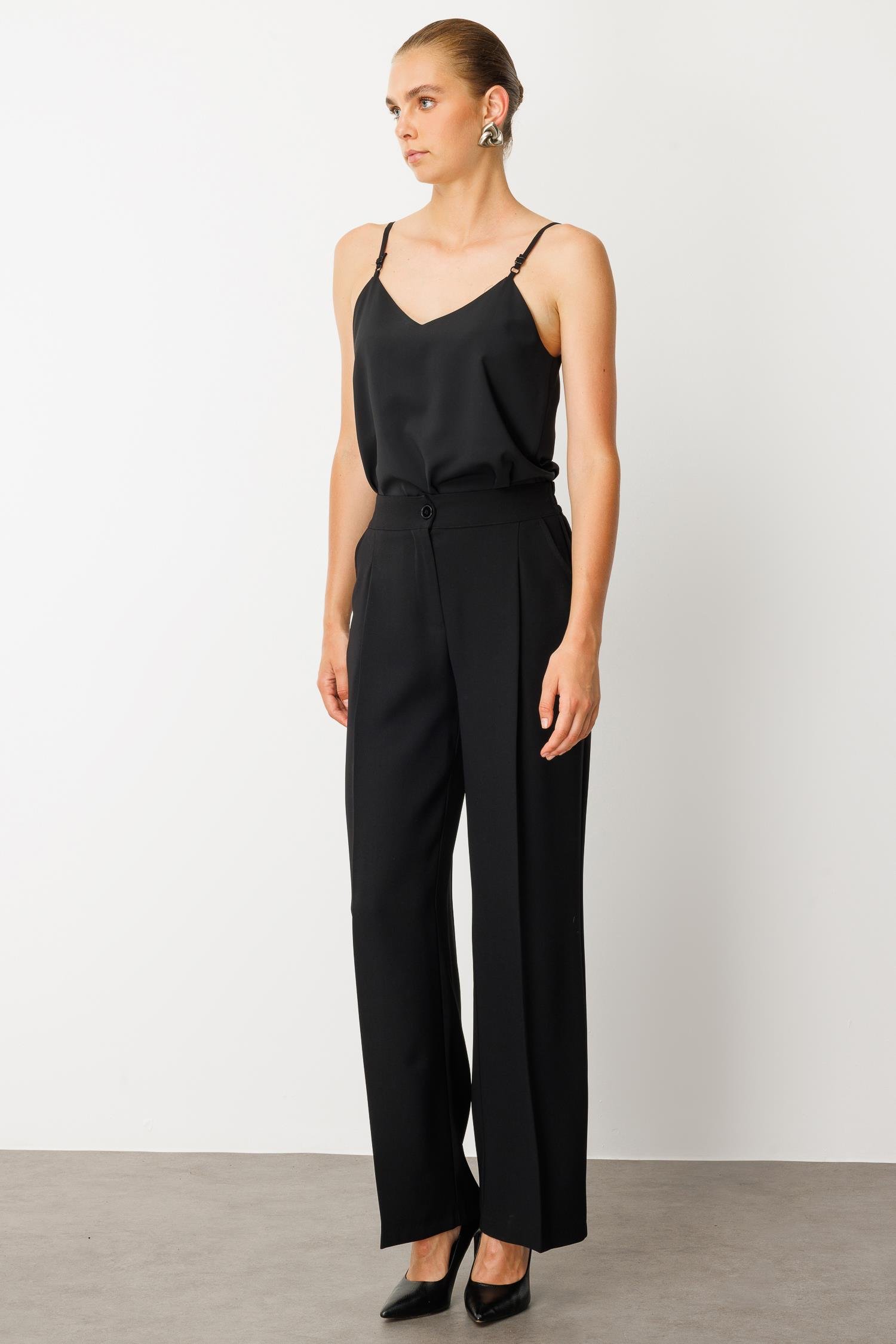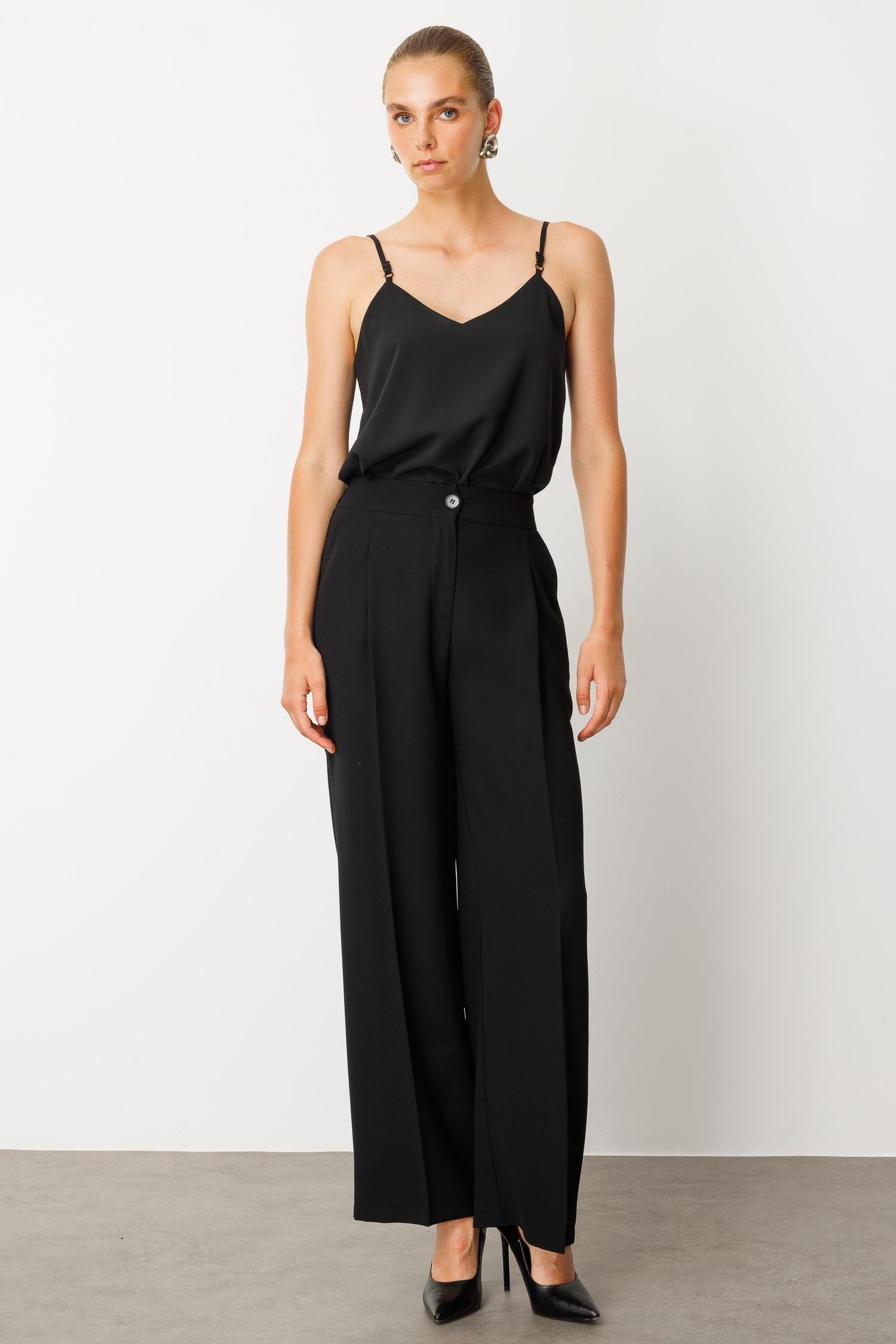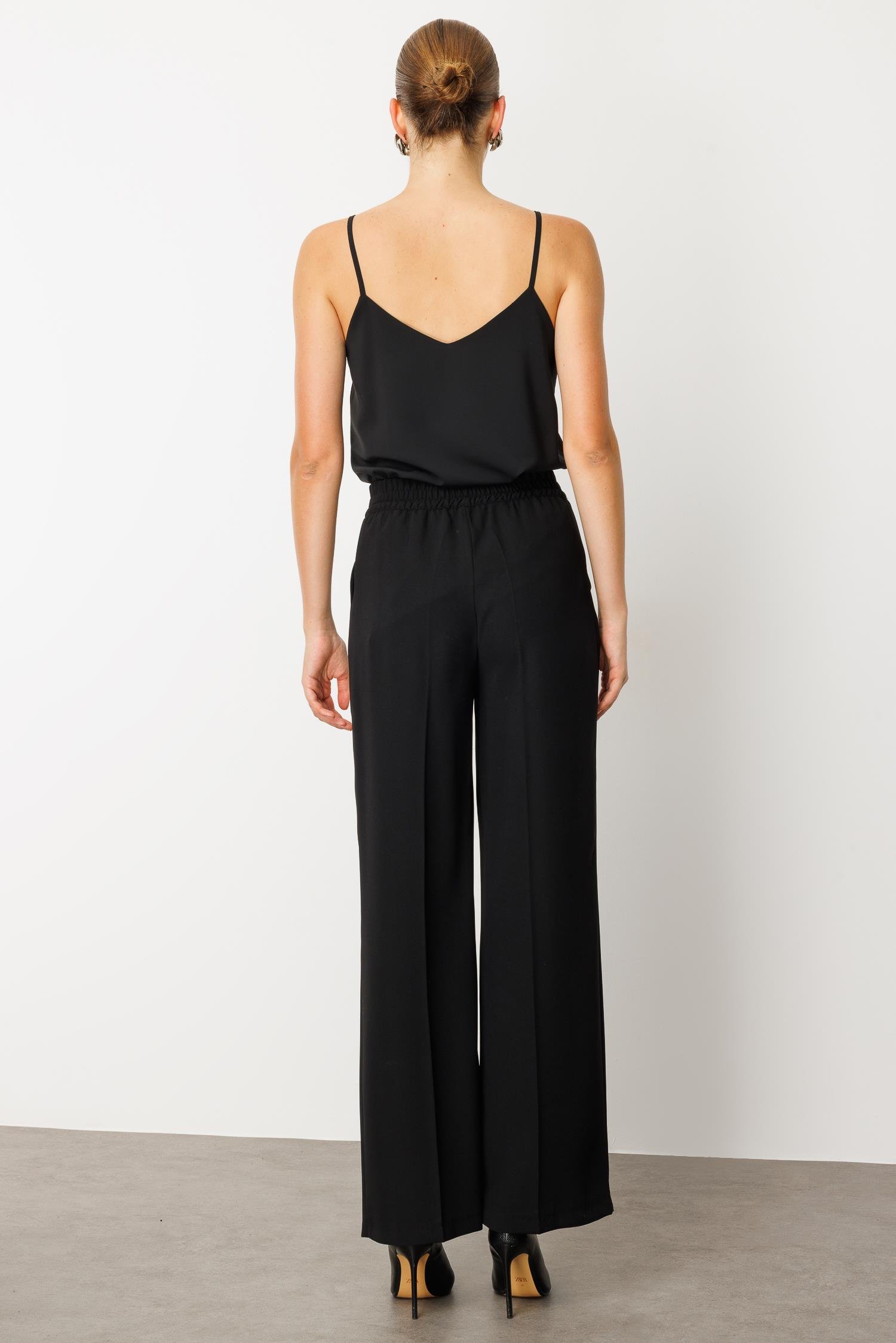 Modailgi Arka Kemeri Lastikli Yandan Cepli Yüksek Bel Pile Detaylı Plazzo Pantolon Siyah (ILG260PNT40044-263)