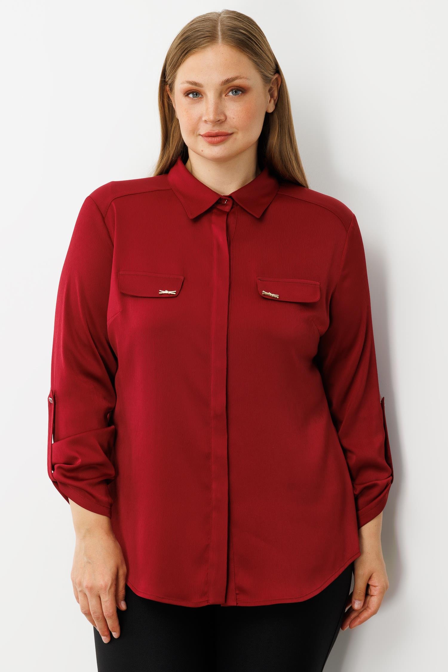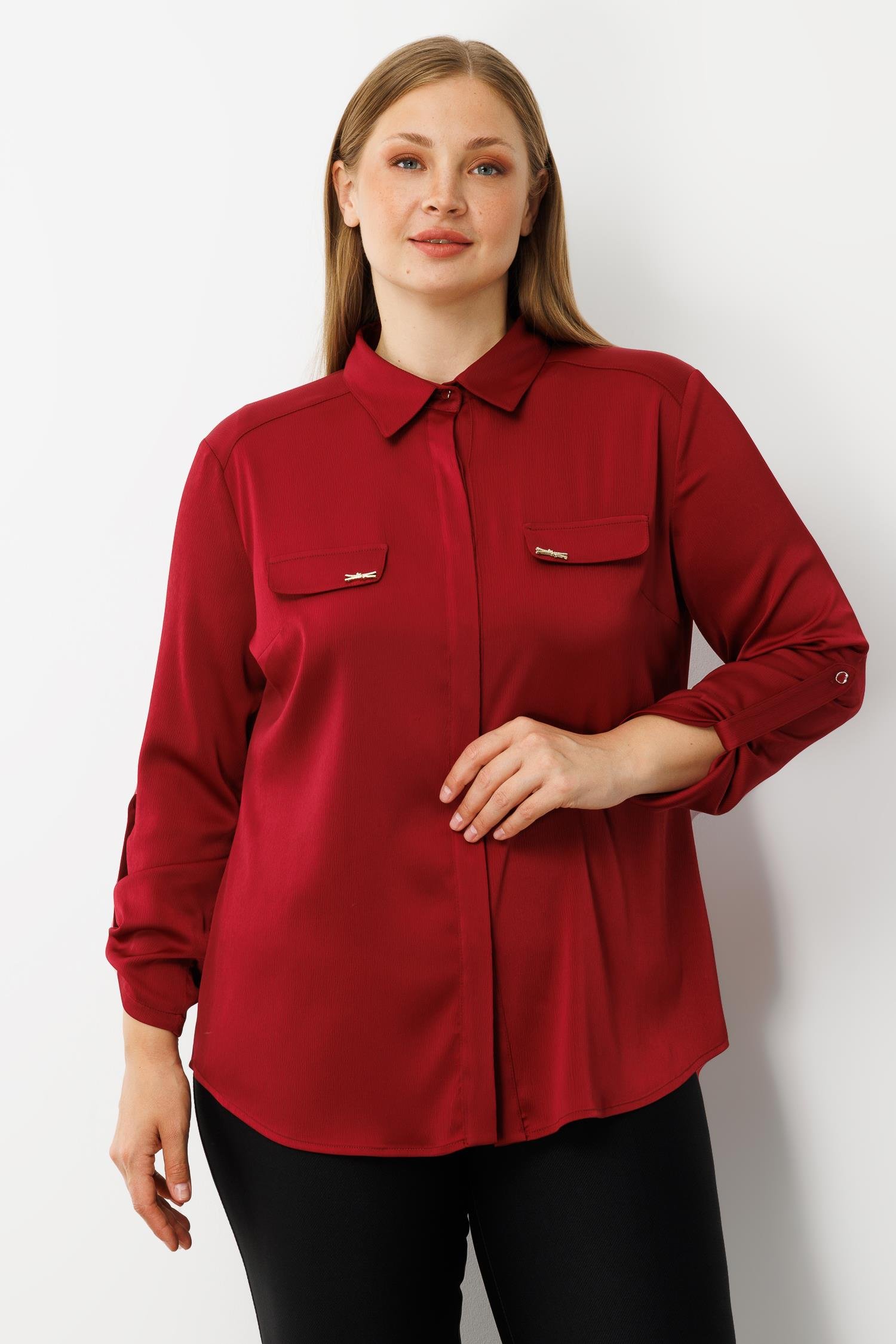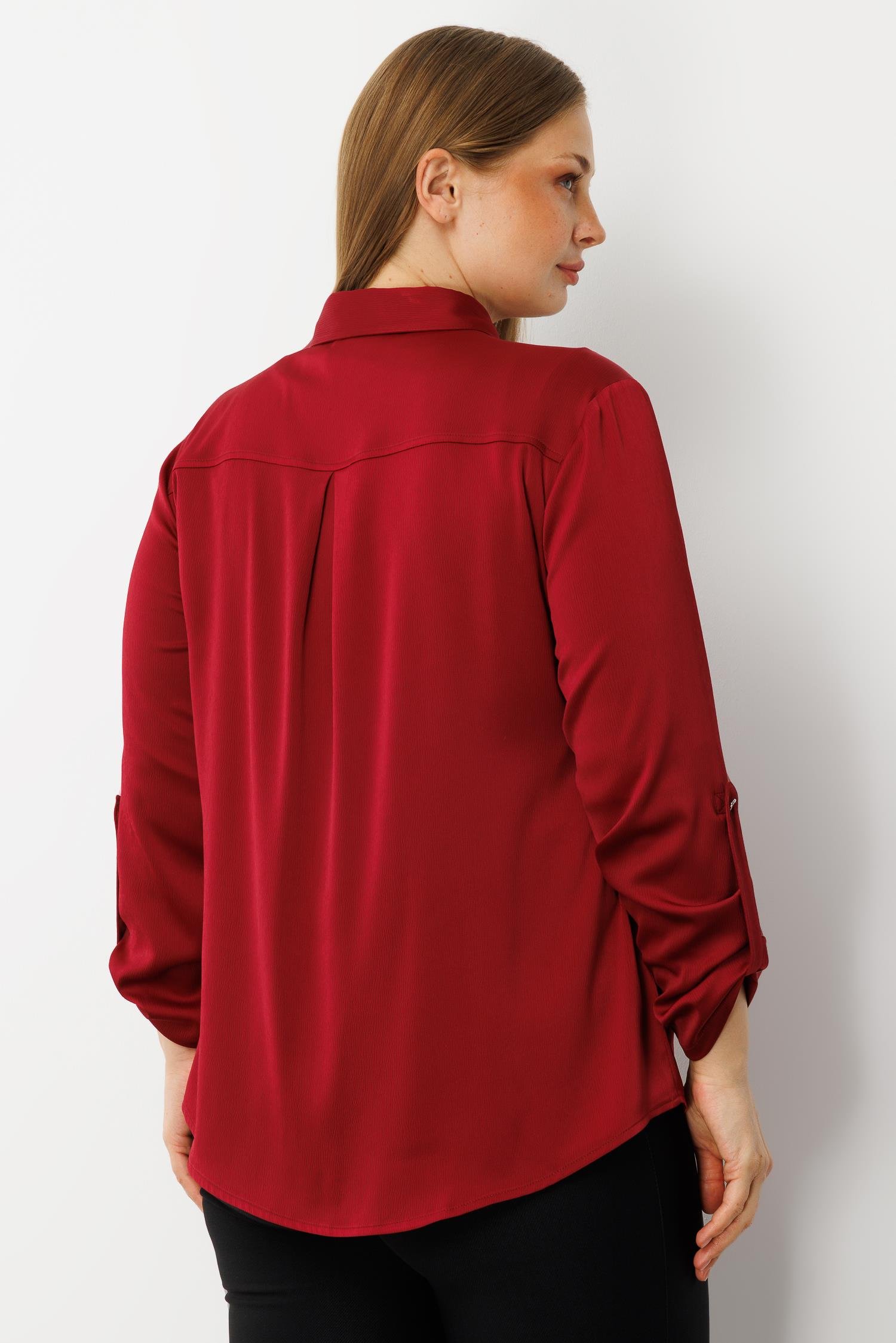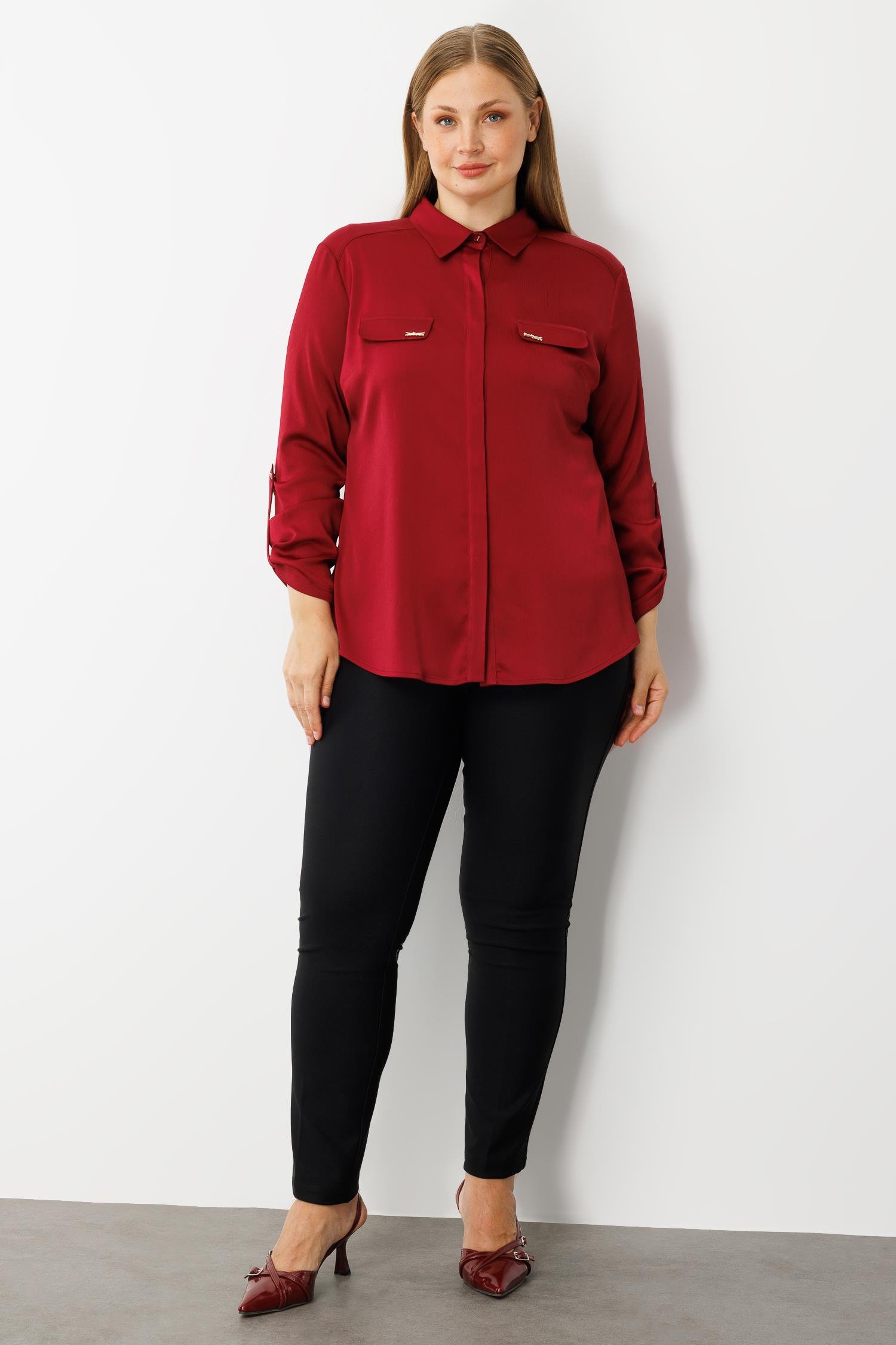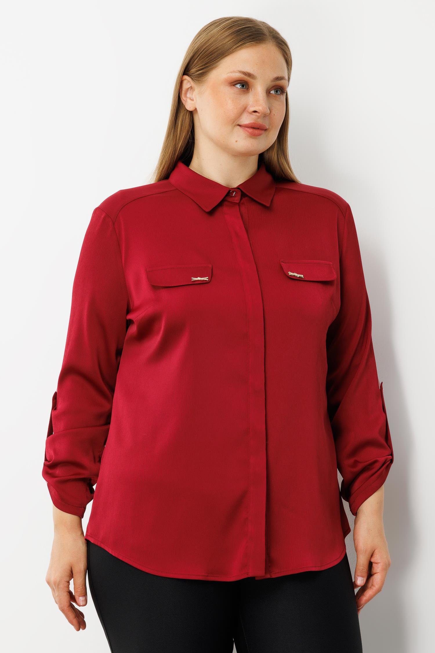 Modailgi Cep Kapaklı Kolları Apoletli Saten Gömlek Bordo (GLD260GMK40078-041)