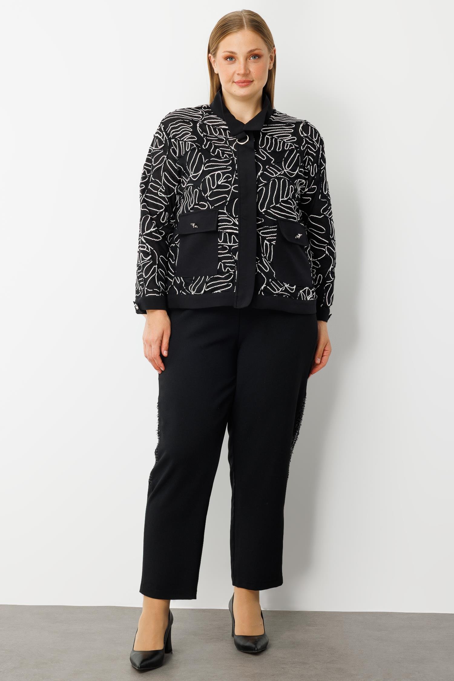 Modailgi Düz Kumaş Garni Detaylı Fermuar Kapamalı Torba Cepli Kordone Gömlek Siyah (GLD260GMK40054-263)