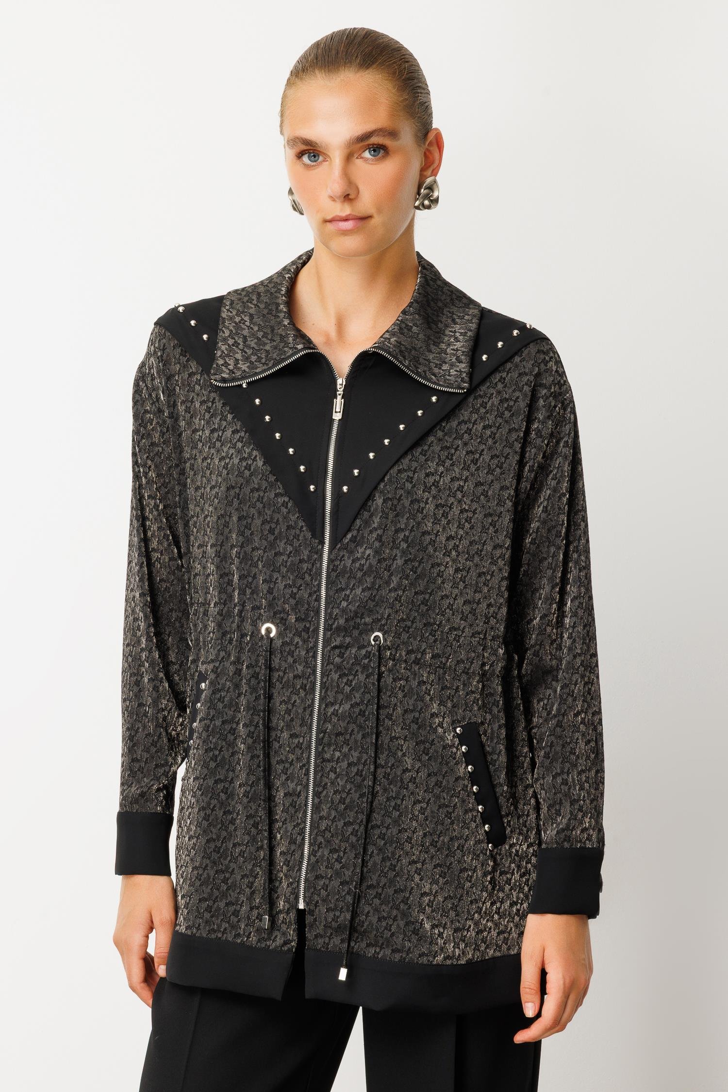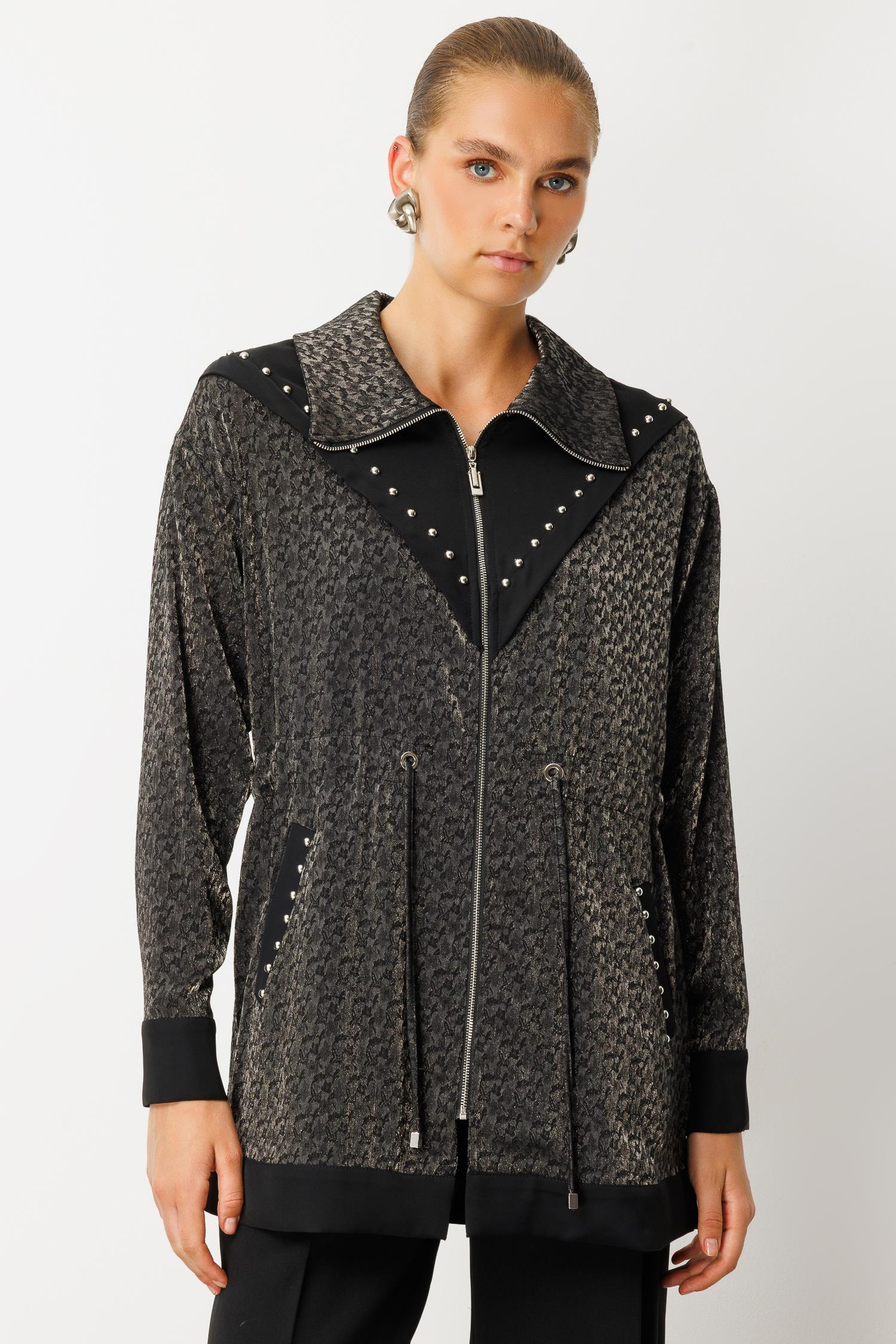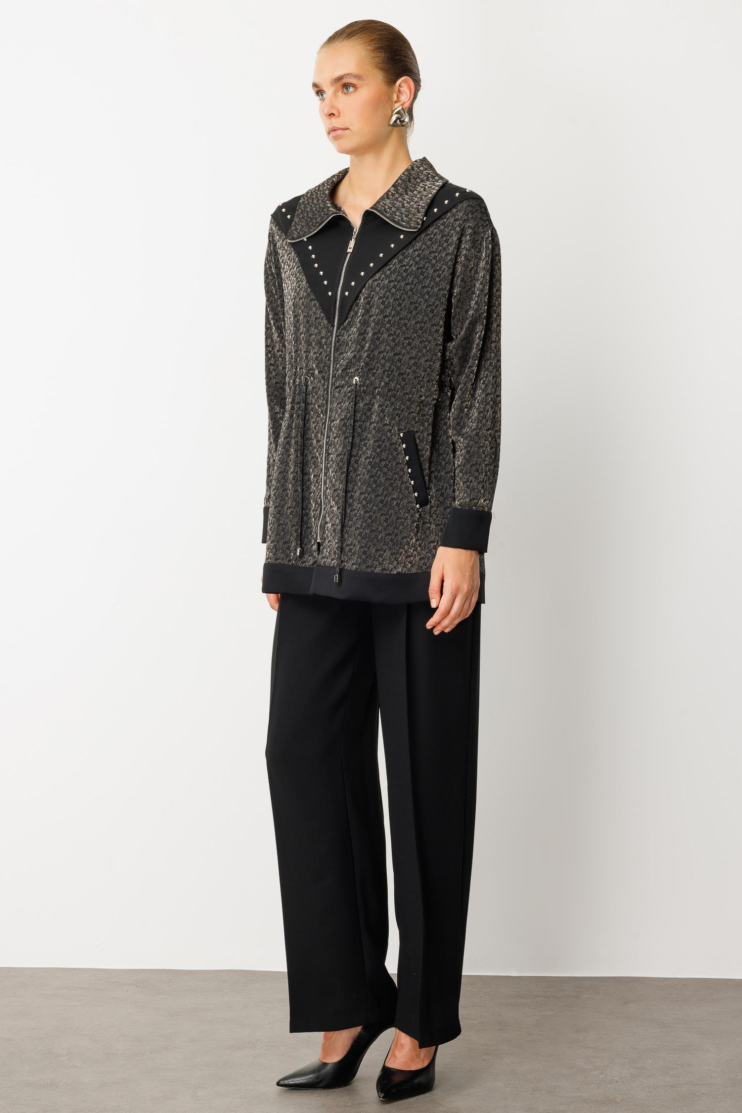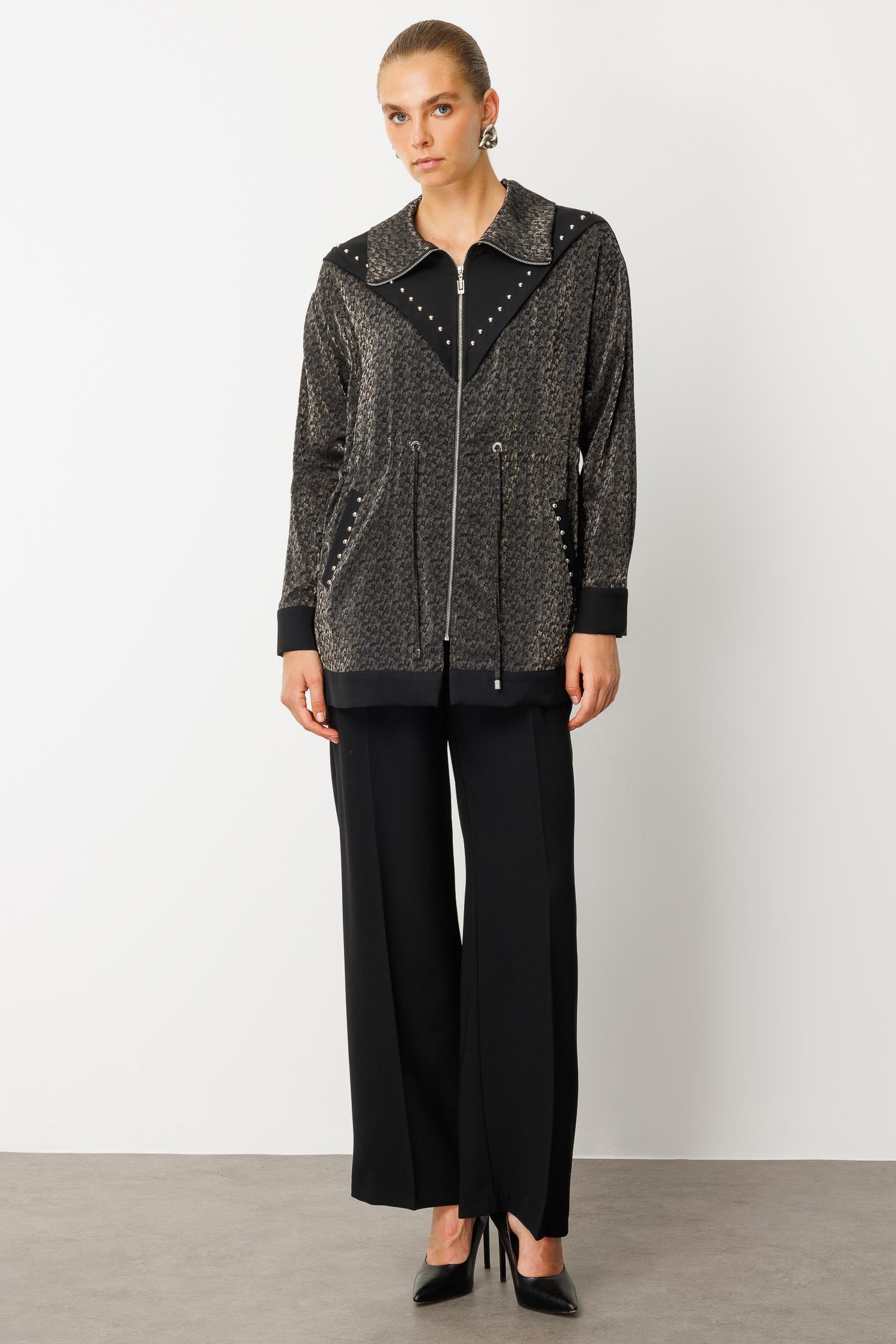 Modailgi  Düz Kumaş Garni Detaylı Fermuar Kapamalı Trok Çakma Detaylı Ara Boy Tunik - 40044 Siyah