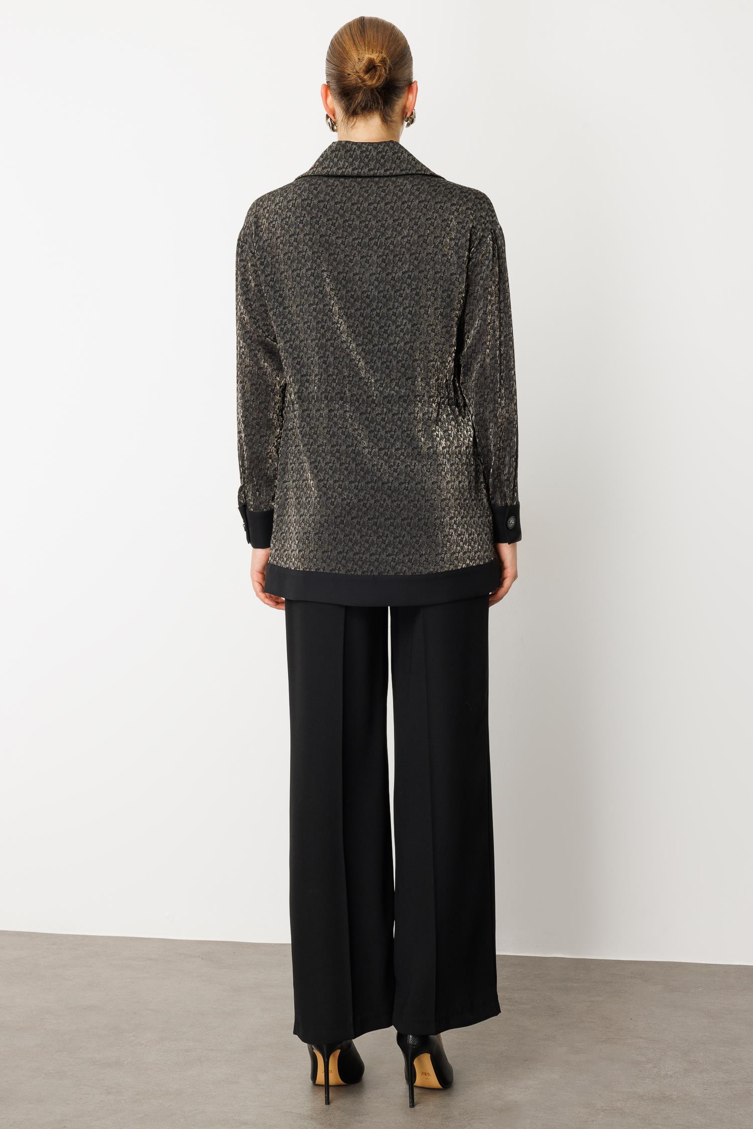 Modailgi Düz Kumaş Garni Detaylı Fermuar Kapamalı Trok Çakma Detaylı Ara Boy Tunik - 40044 Siyah (ILG260TNK15044-263)