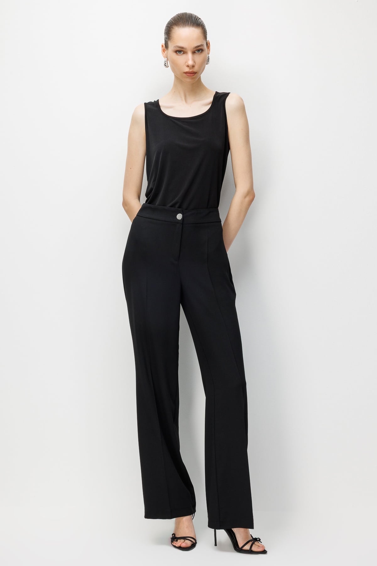 Modailgi İspanyol Paça Krep Kumaş Pantolon - 75042 Siyah (ILG261PNT45042-263)