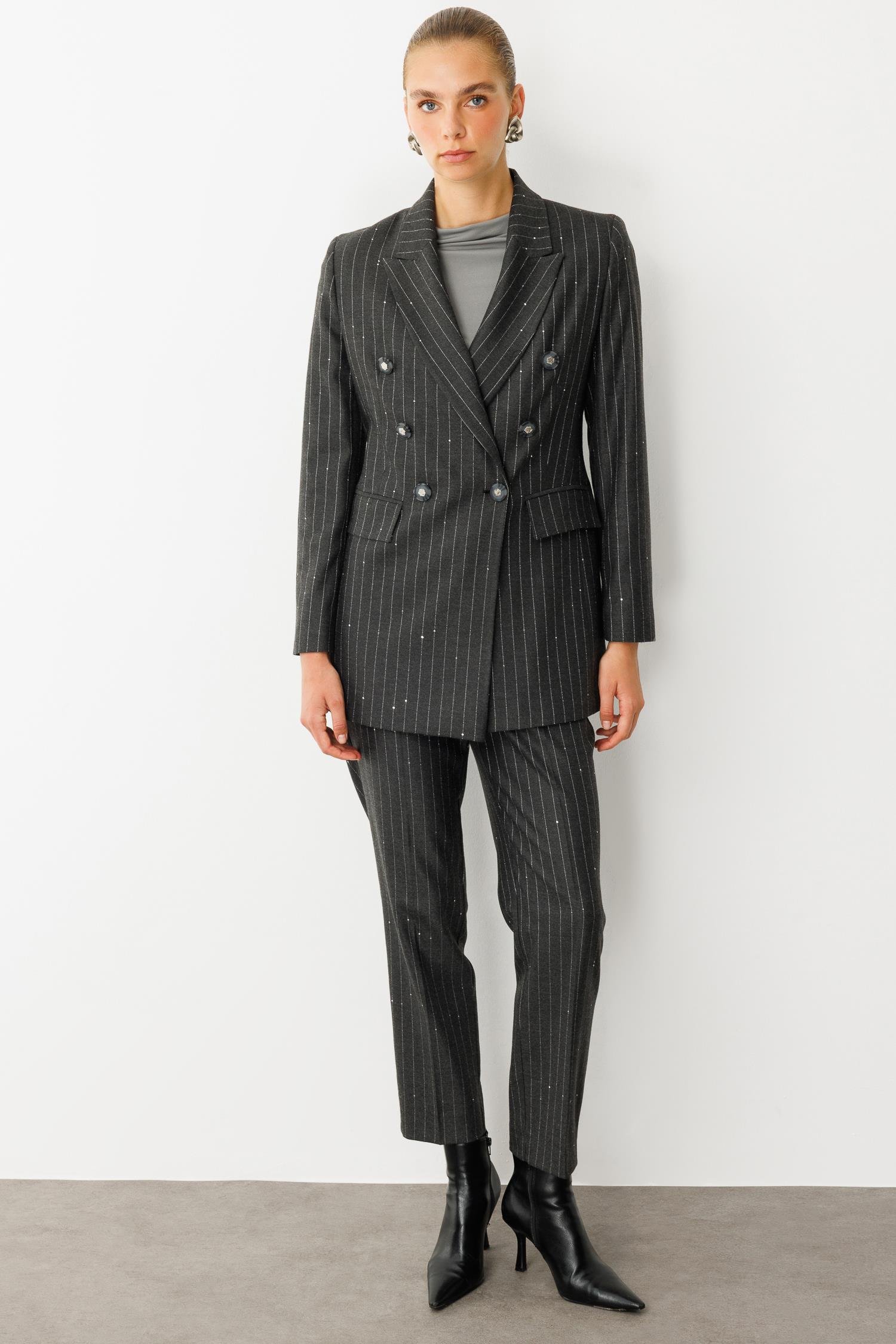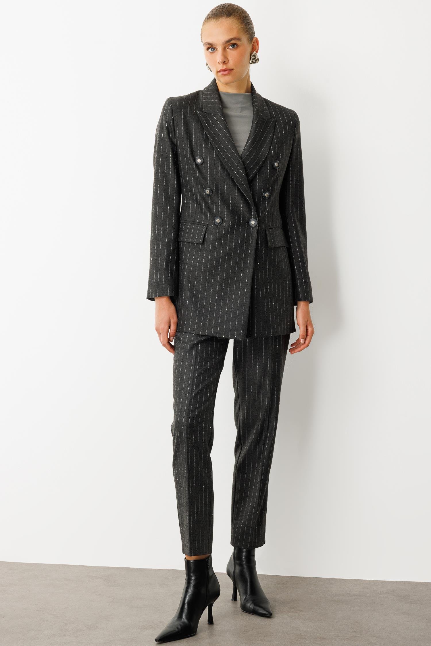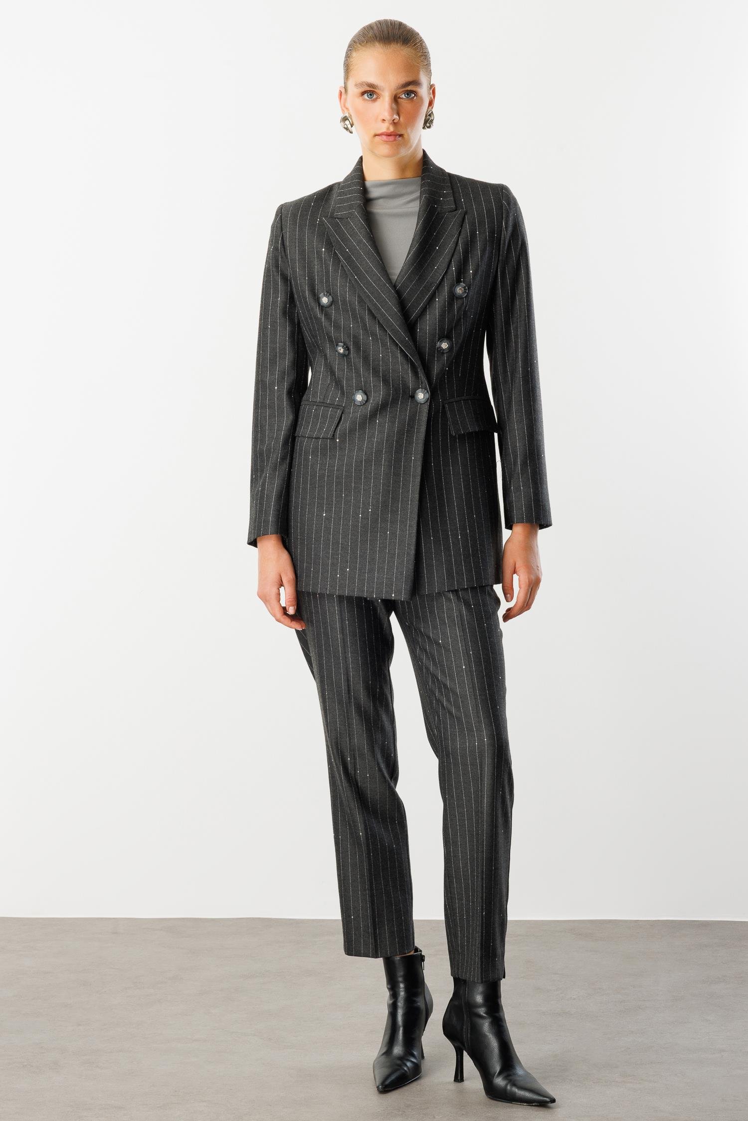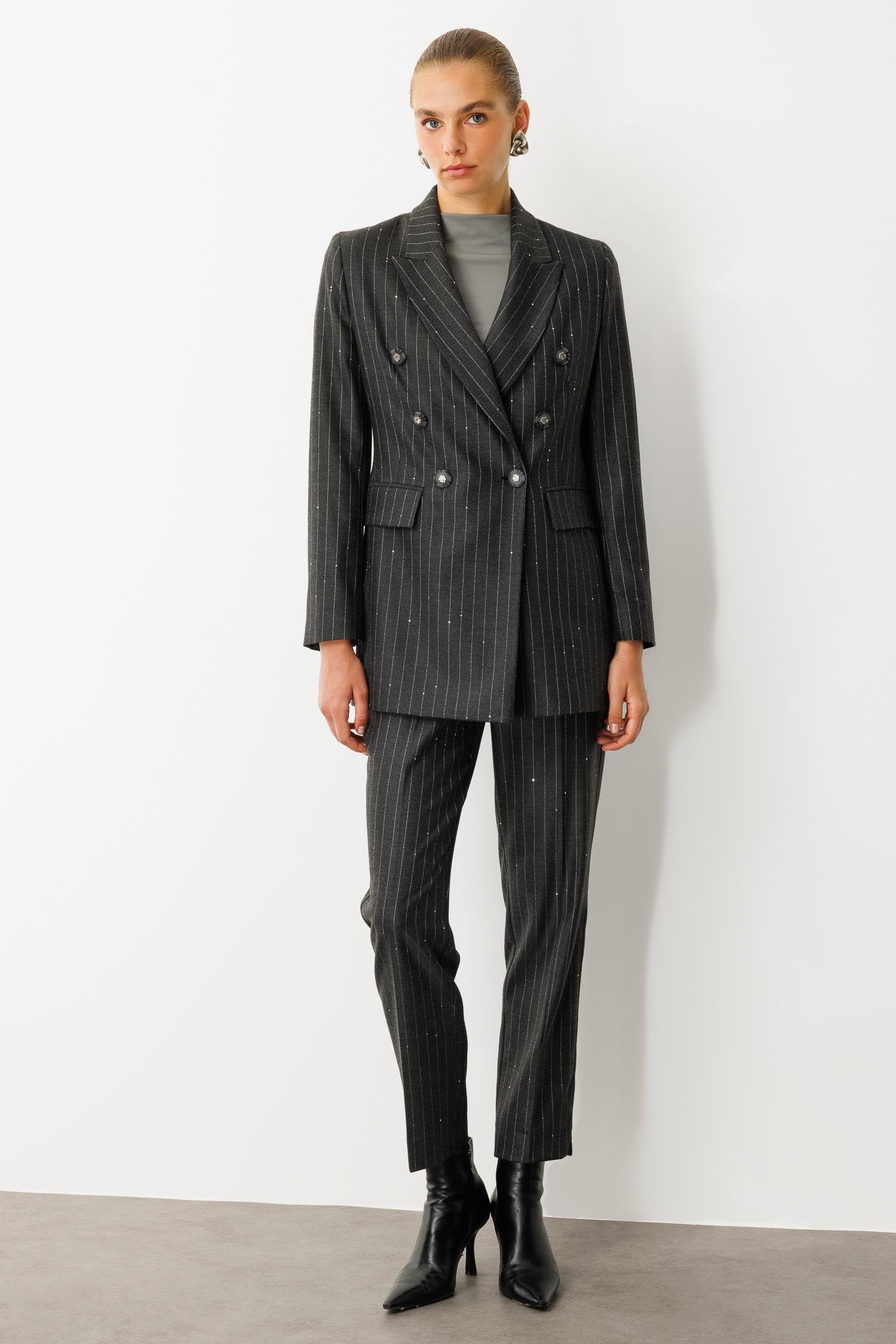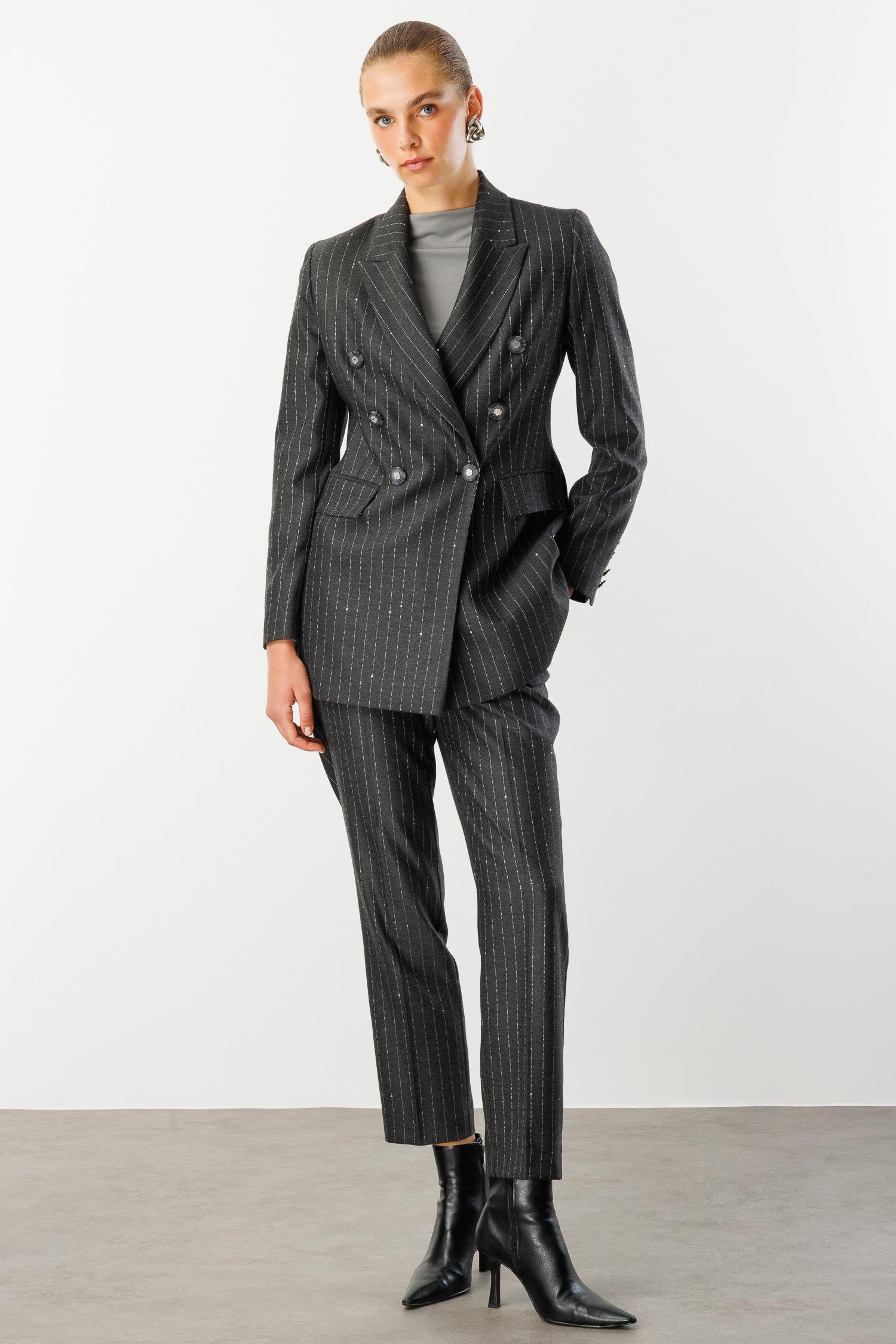 Modailgi Kırlangıç Yaka Kruvaze Kapama Düğme Detaylı Astarlı Ceket Siyah (ILG260CKT75003-263)