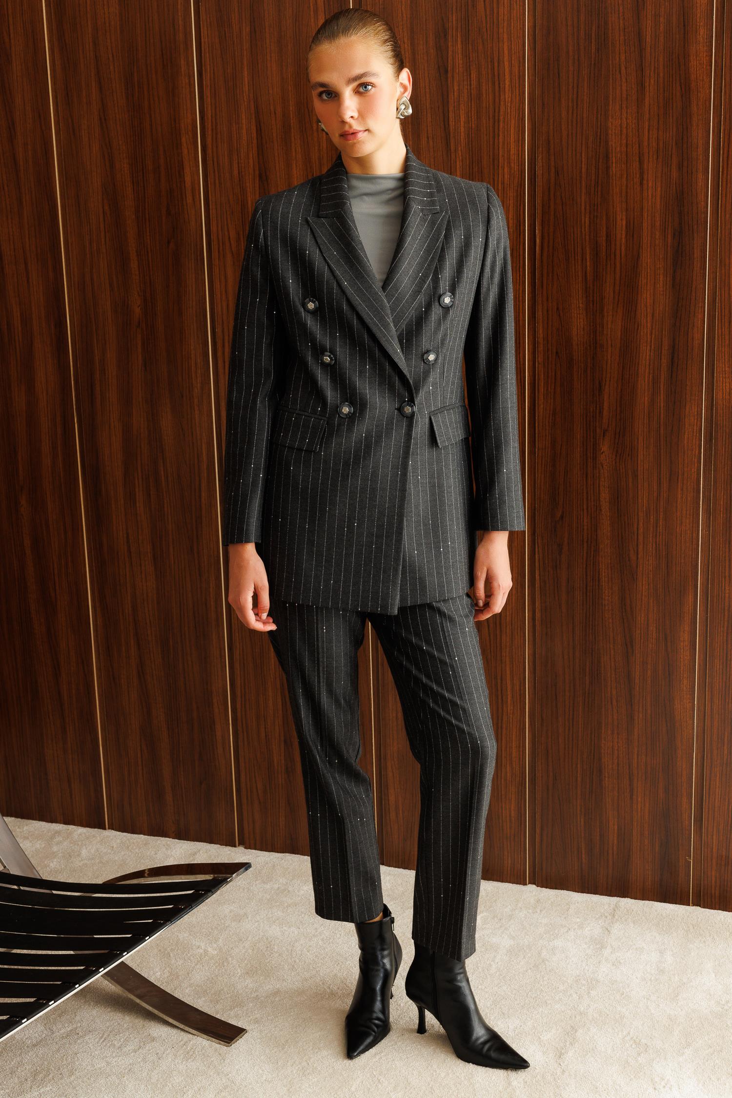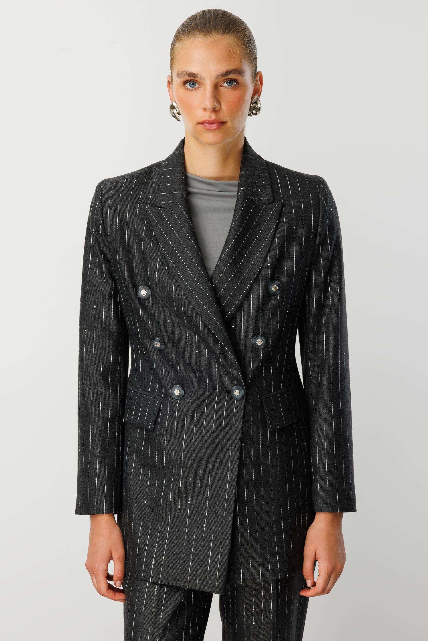 Modailgi  Kırlangıç Yaka Kruvaze Kapama Düğme Detaylı Astarlı Ceket Siyah