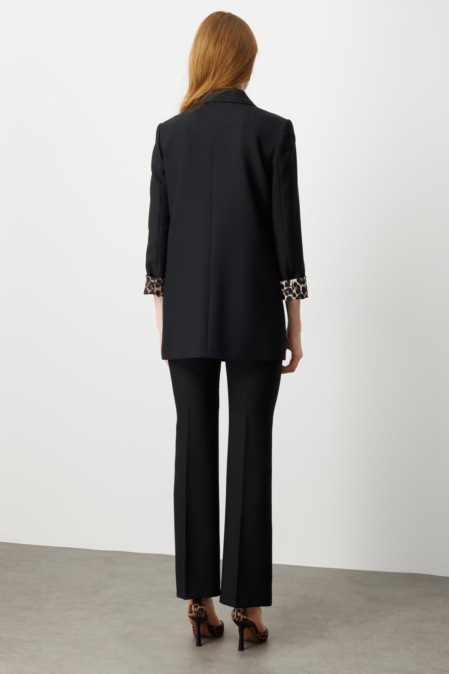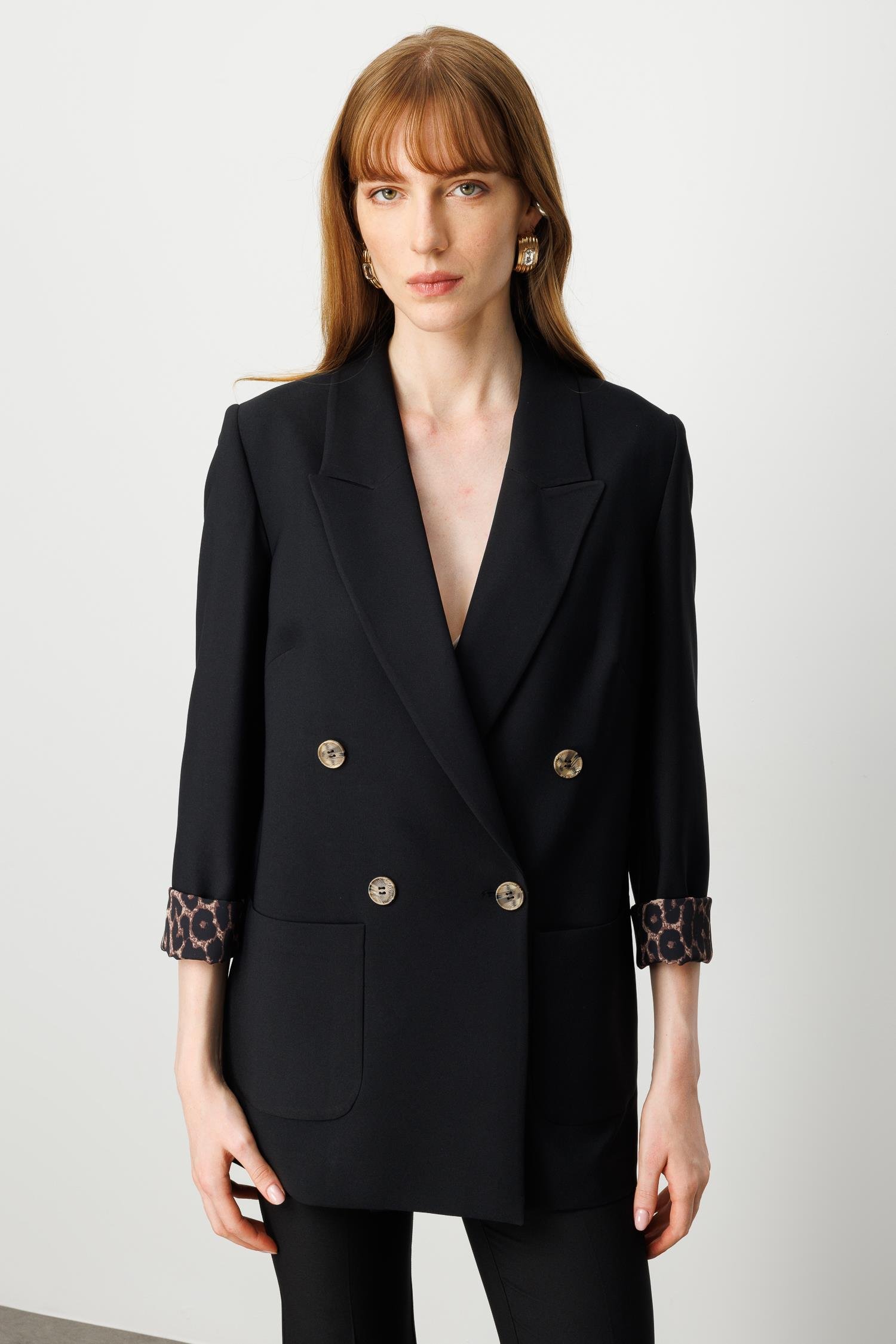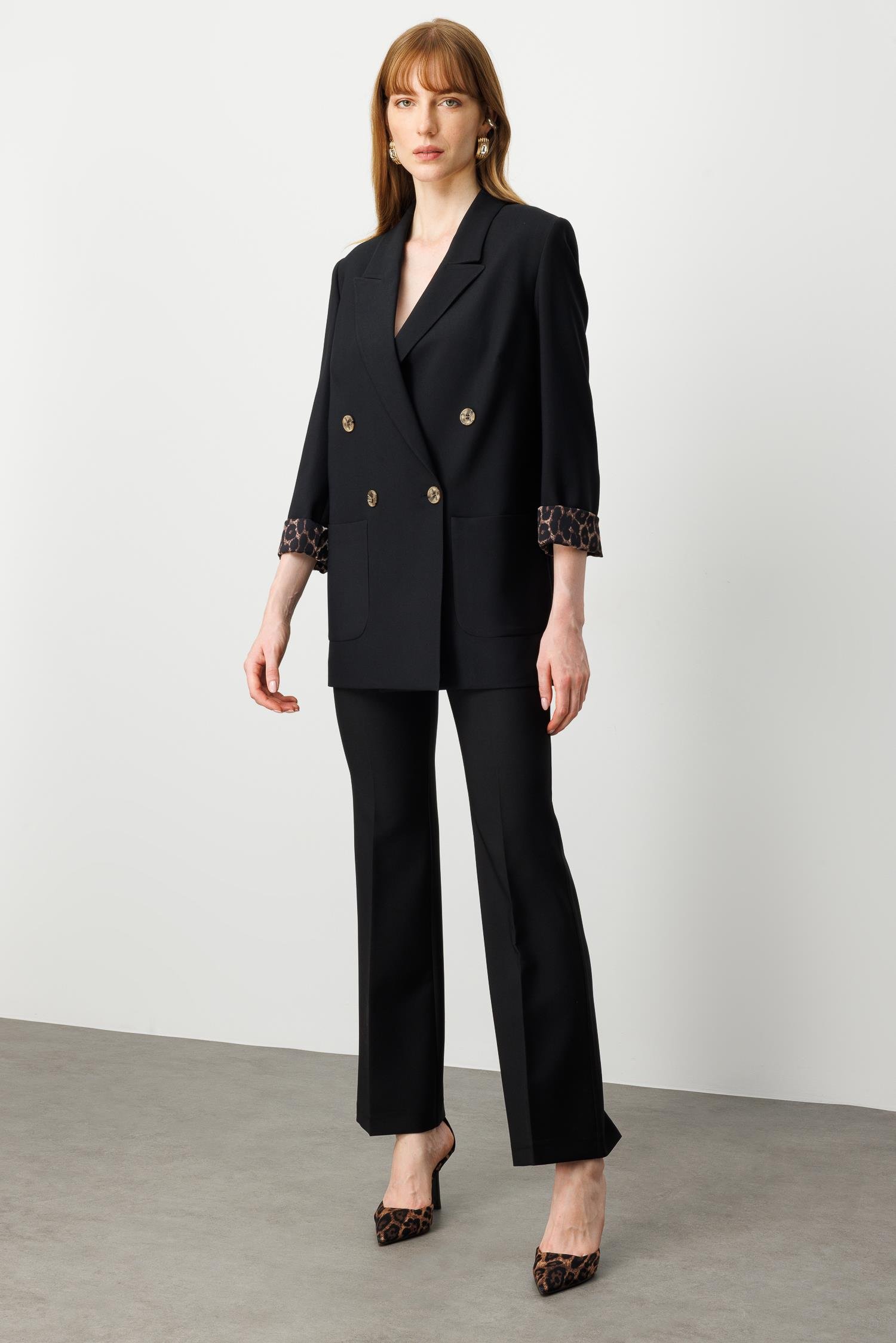 Modailgi Kırlangıç Yaka Kruvaze Kapamalı Torba Cepli Leopar Astarlı Ceket Siyah (ILG260CKT70049-263)