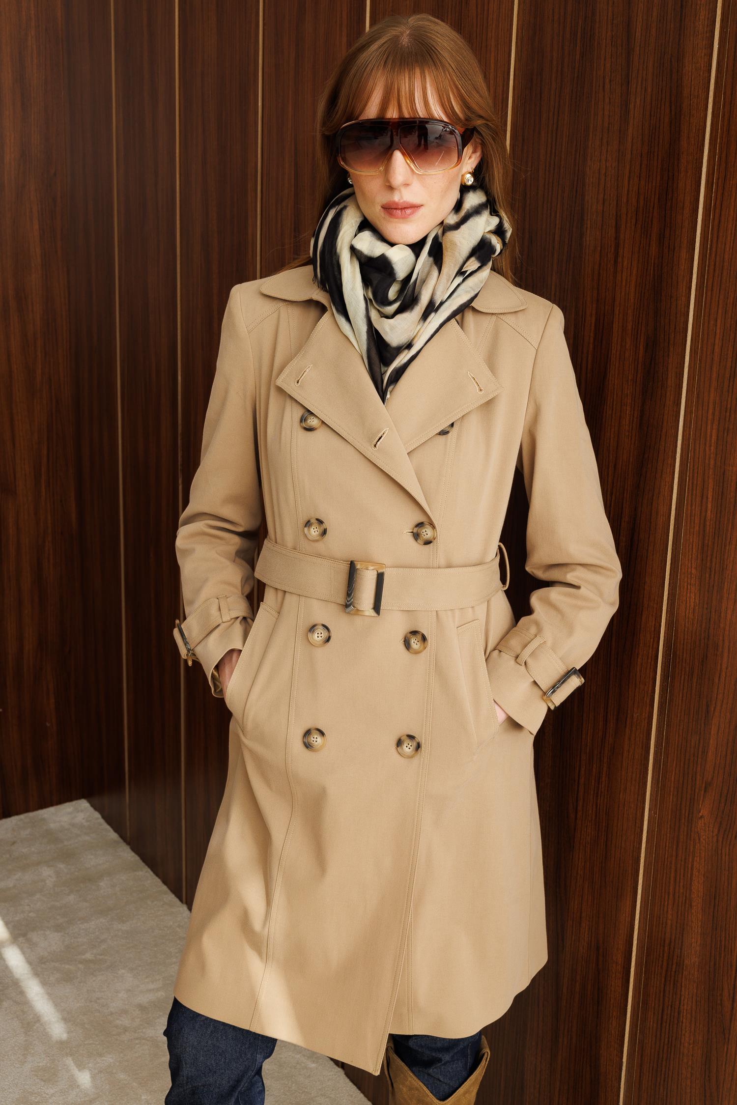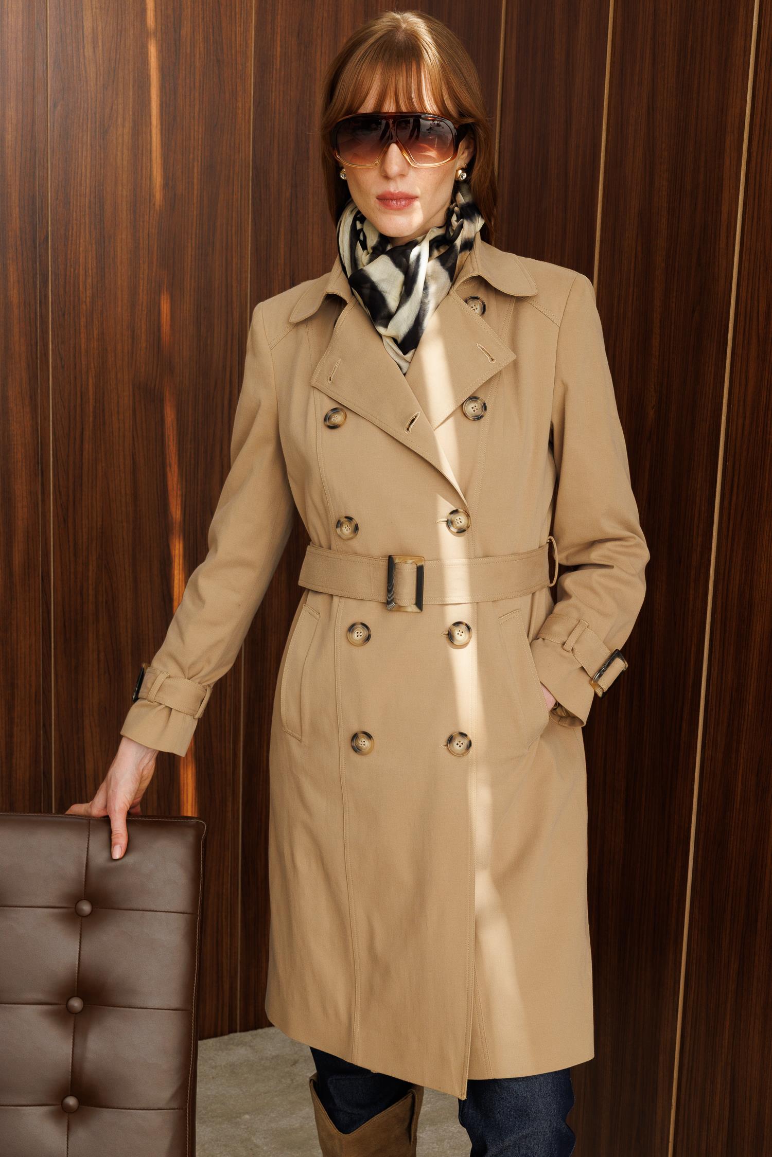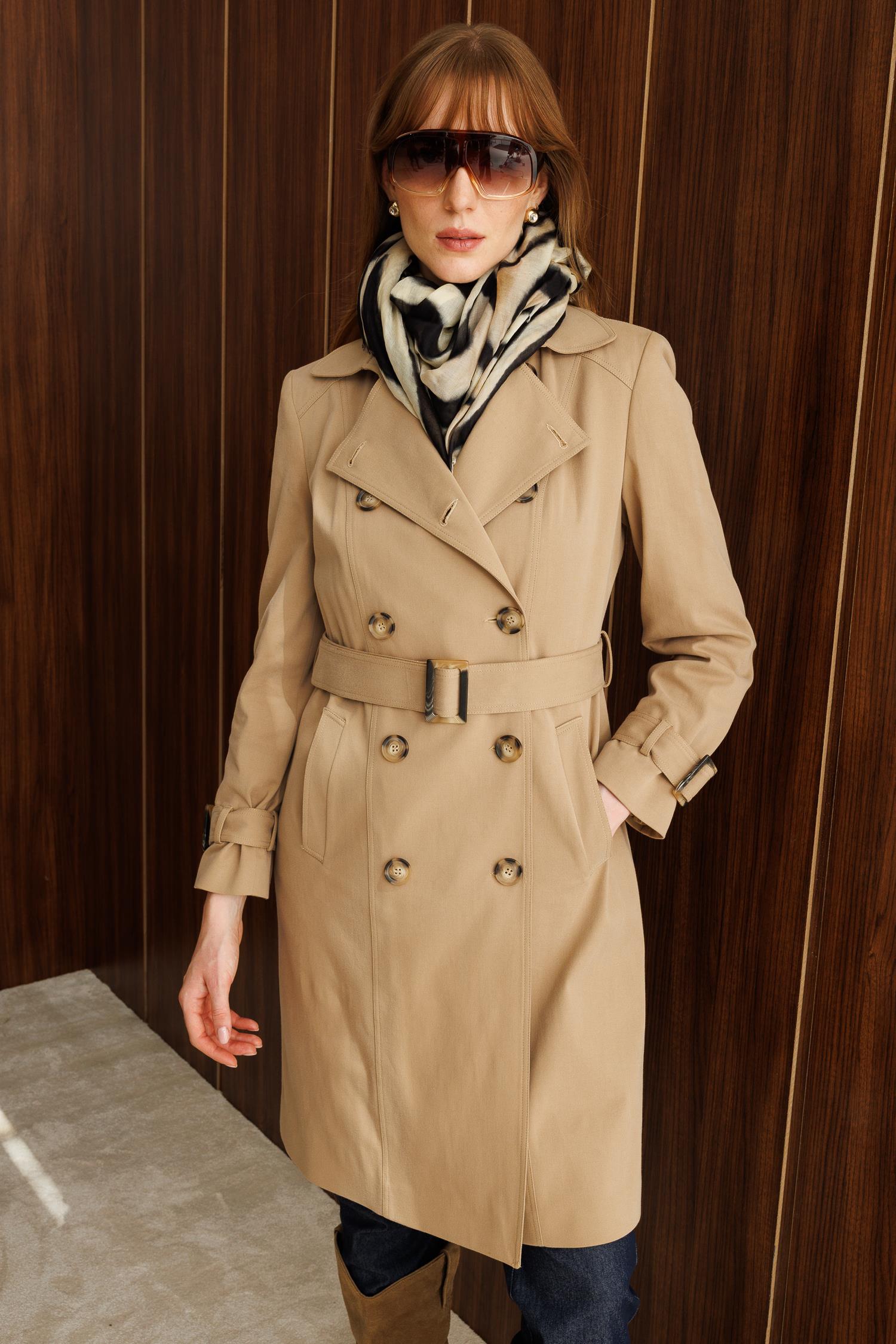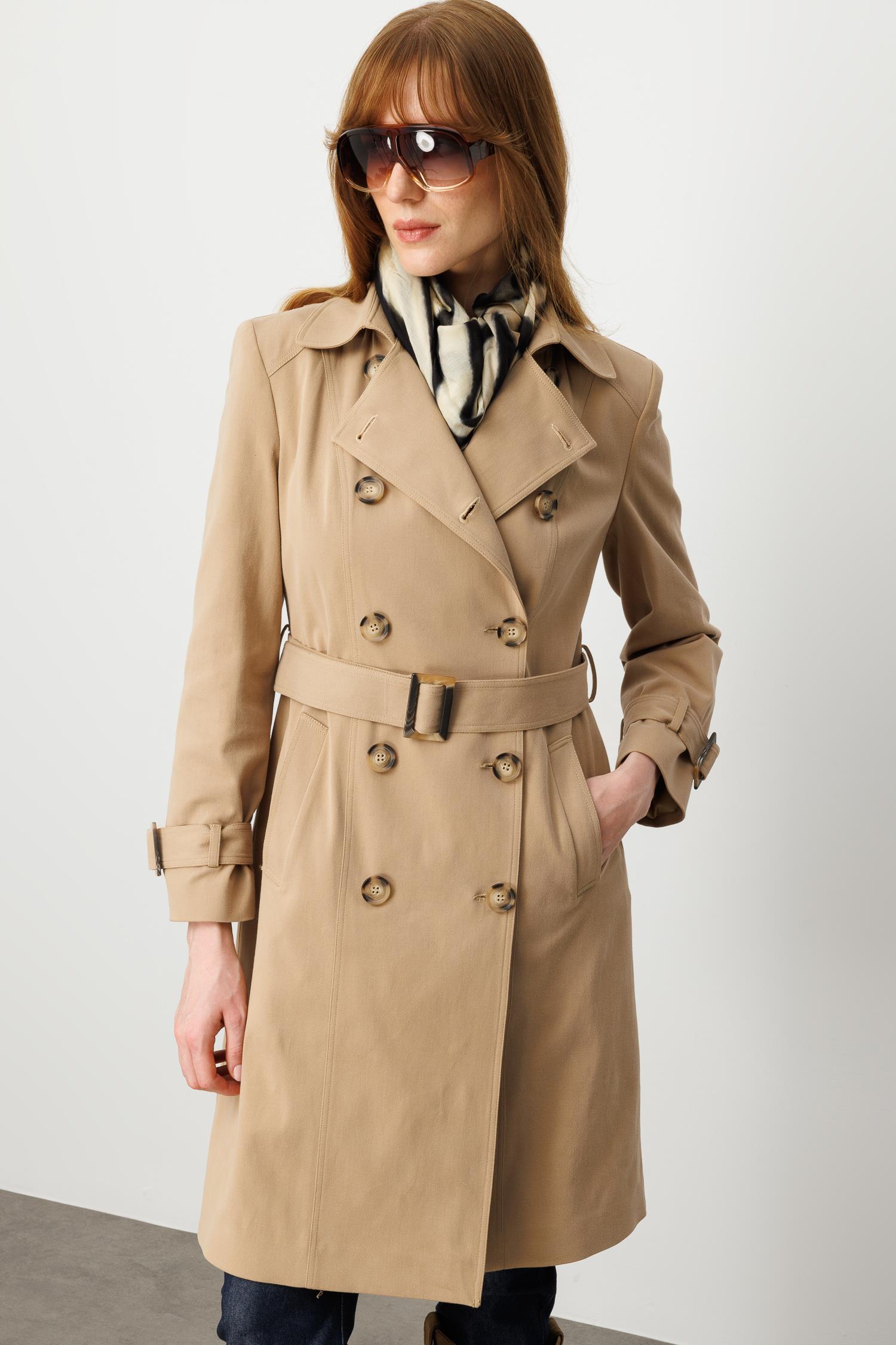 Modailgi Kruvaze Kapamalı Beli Ve Kolları Kemer Kuşak Detaylı Spor Dikişli Astarlı Ara Boy Trençkot Camel (ILG260TRC20003-047)