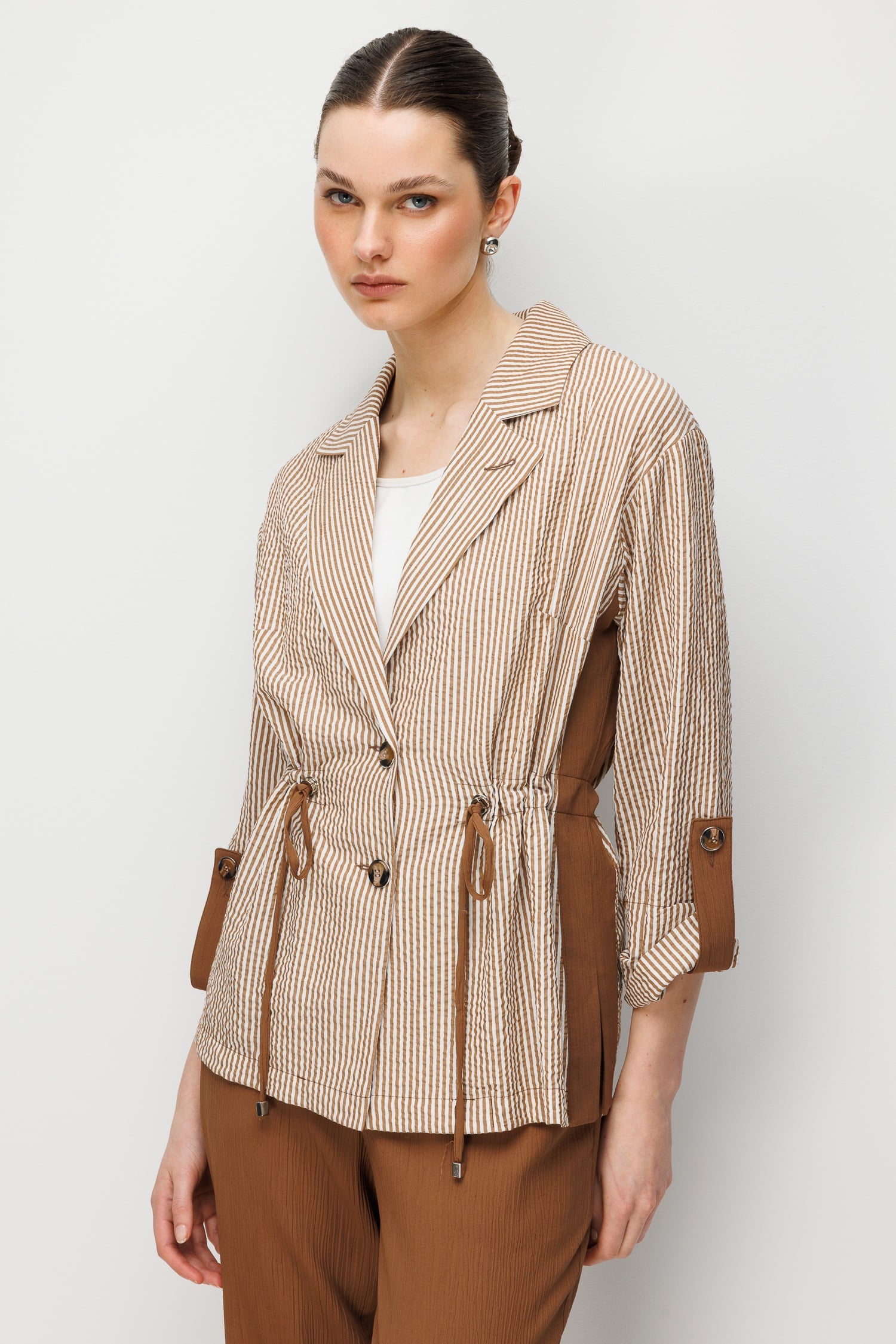 Modailgi Mono Yaka Manşeti Apoletli Çizgili İkili Takım - 40095 (ILG261TKM15095-122)