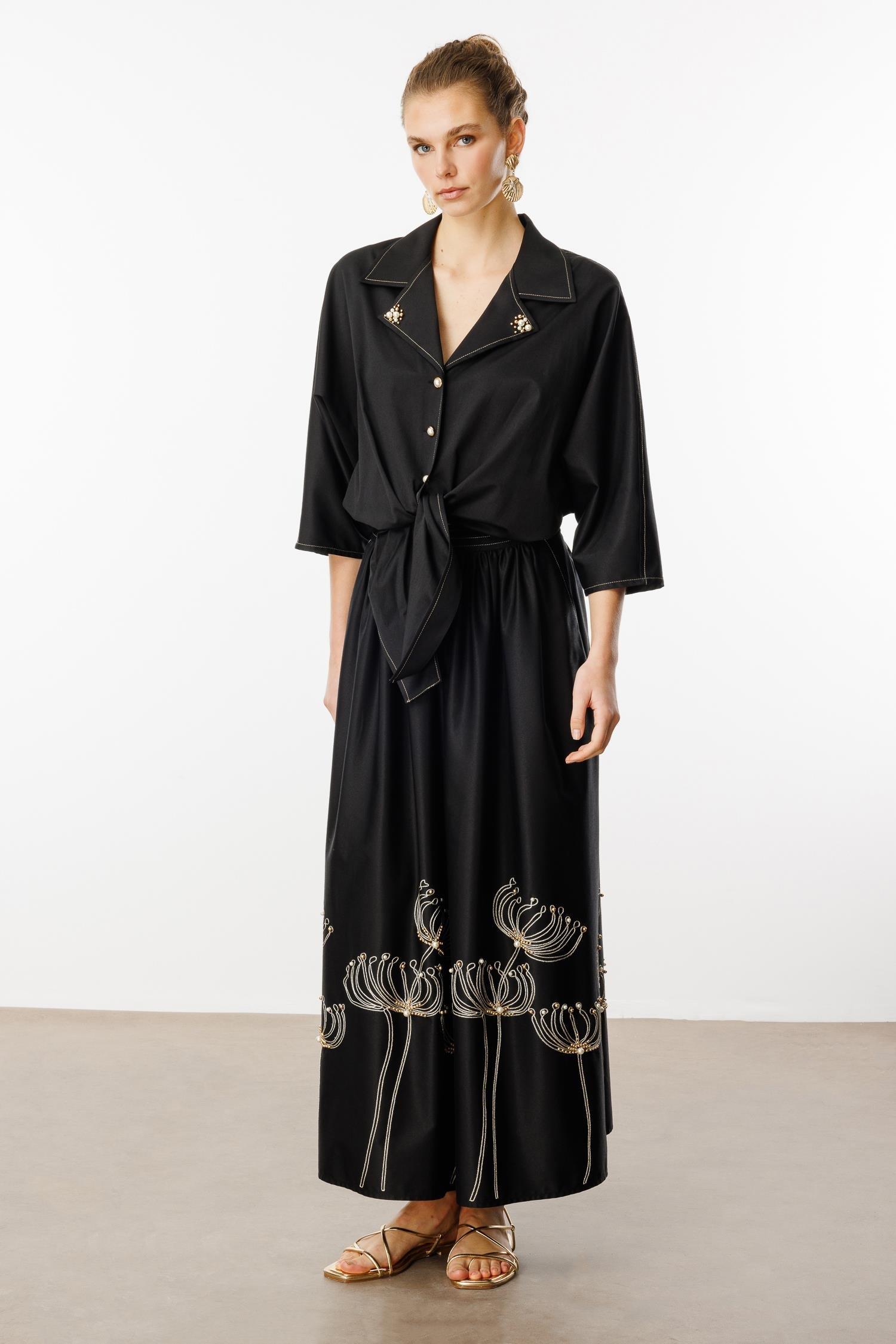 Modailgi Nakış ve İnci İşlemeli Yandan Cepli Etek Siyah (ILG251ETK30020-263)