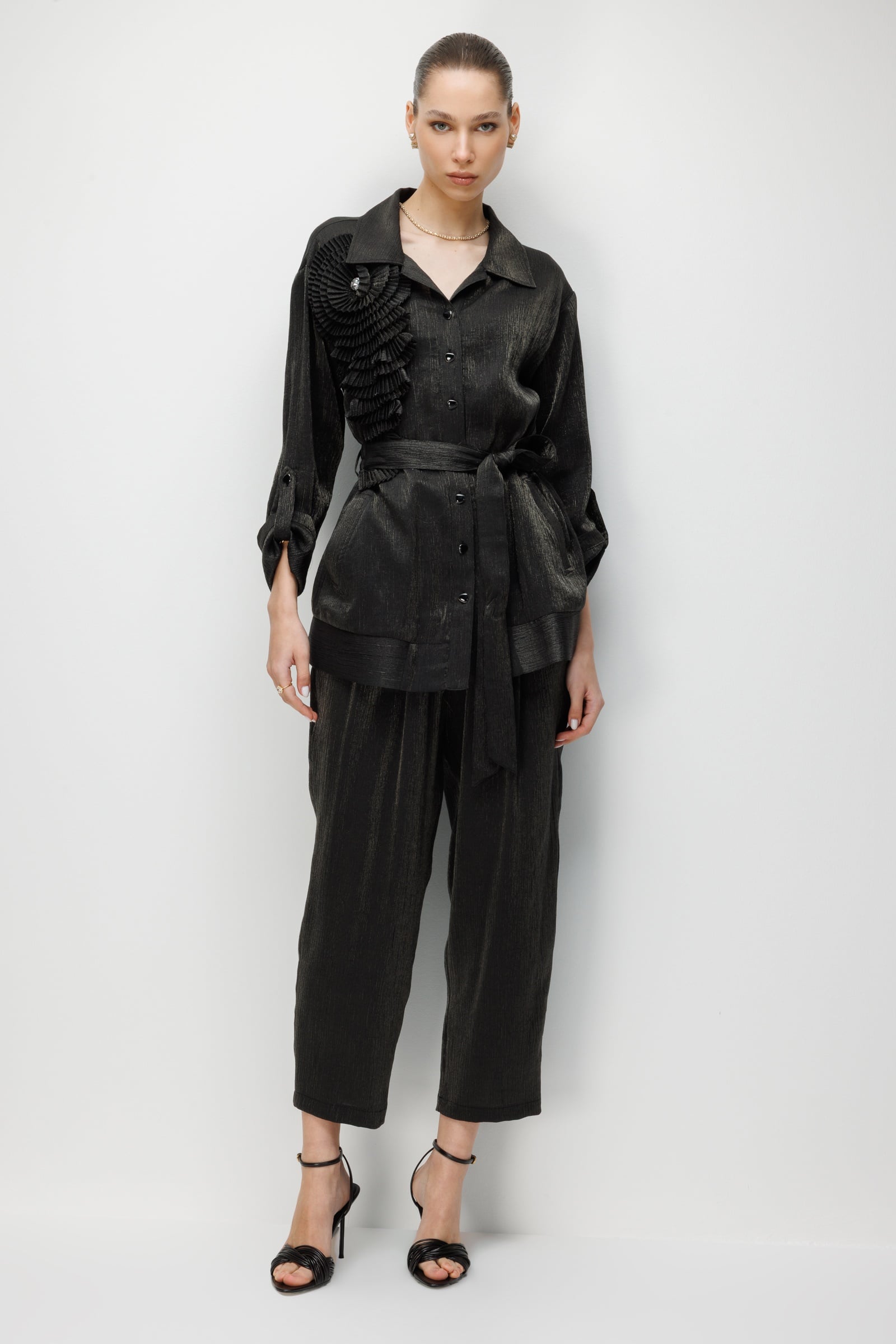 Modailgi Pilise Süslemeli Beli Kemerli Tunik - 40012 Siyah (ILG261TNK15012-263)