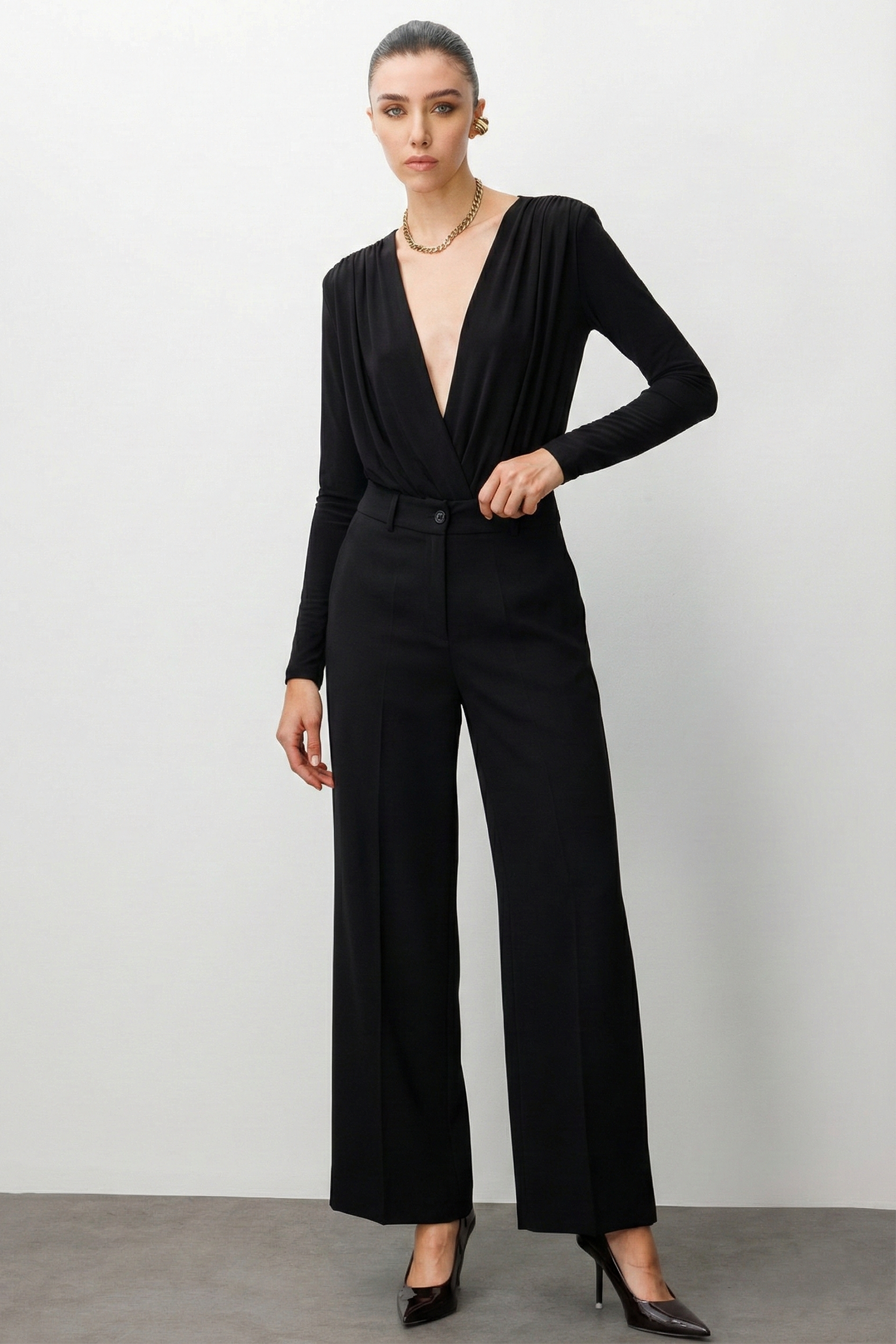 Modailgi Yüksek Bel Yandan Cepli Paçası Ek Ve Dikiş Detaylı Plazzo Pantolon Siyah (ILG260PNT40045-263)