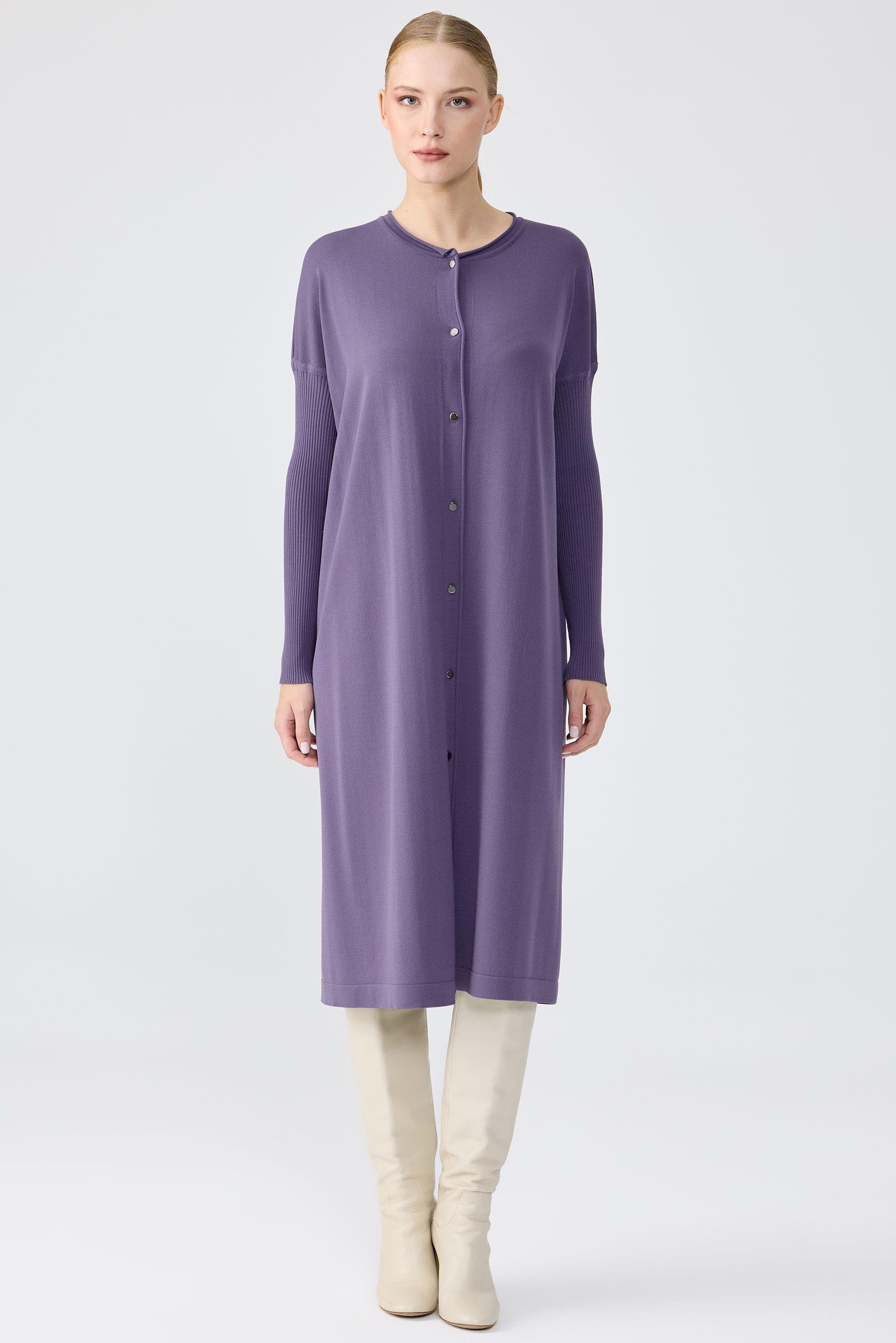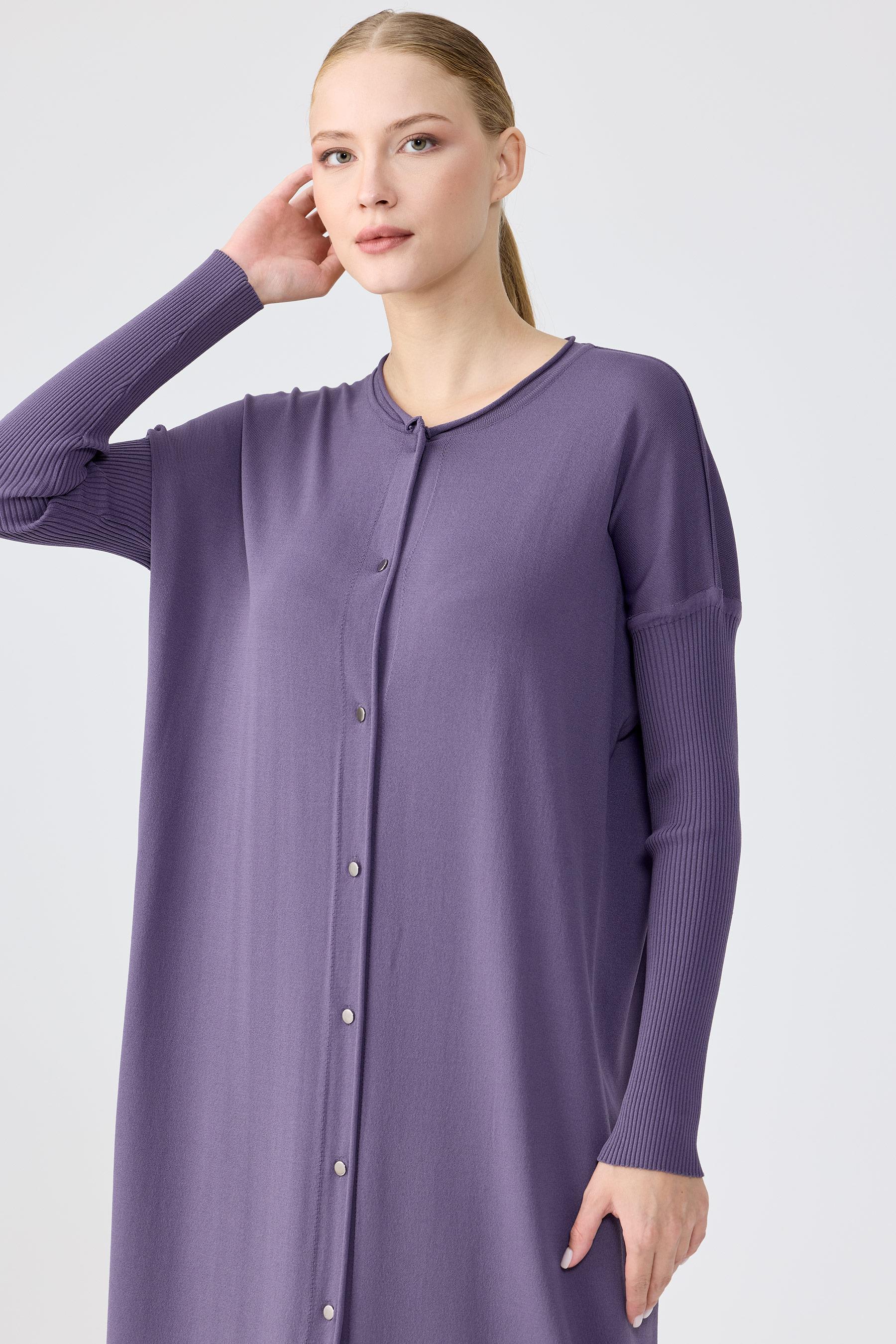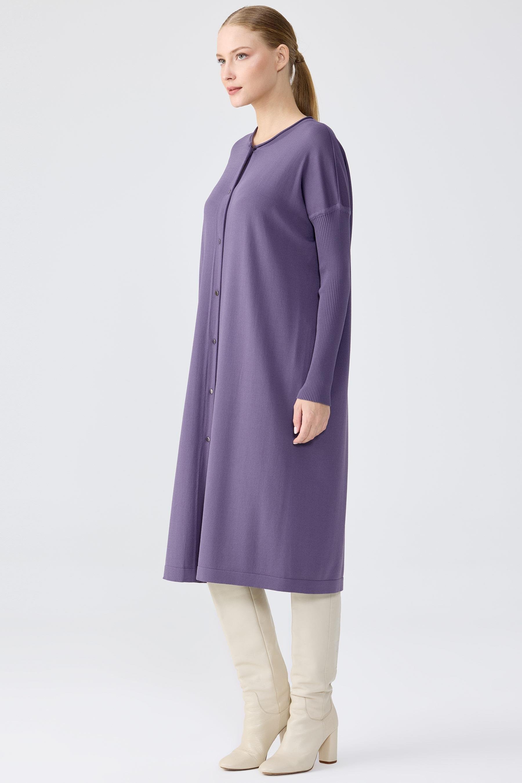 ÖNDEN DÜĞMELİ RAYON HIRKA LİLA (HRK.21246.1)