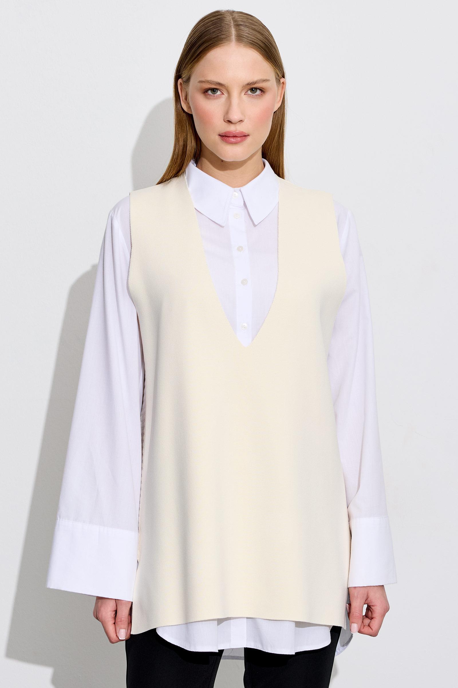 V Yaka Rayon Süveter VANİLLA (SVT.21939.1)