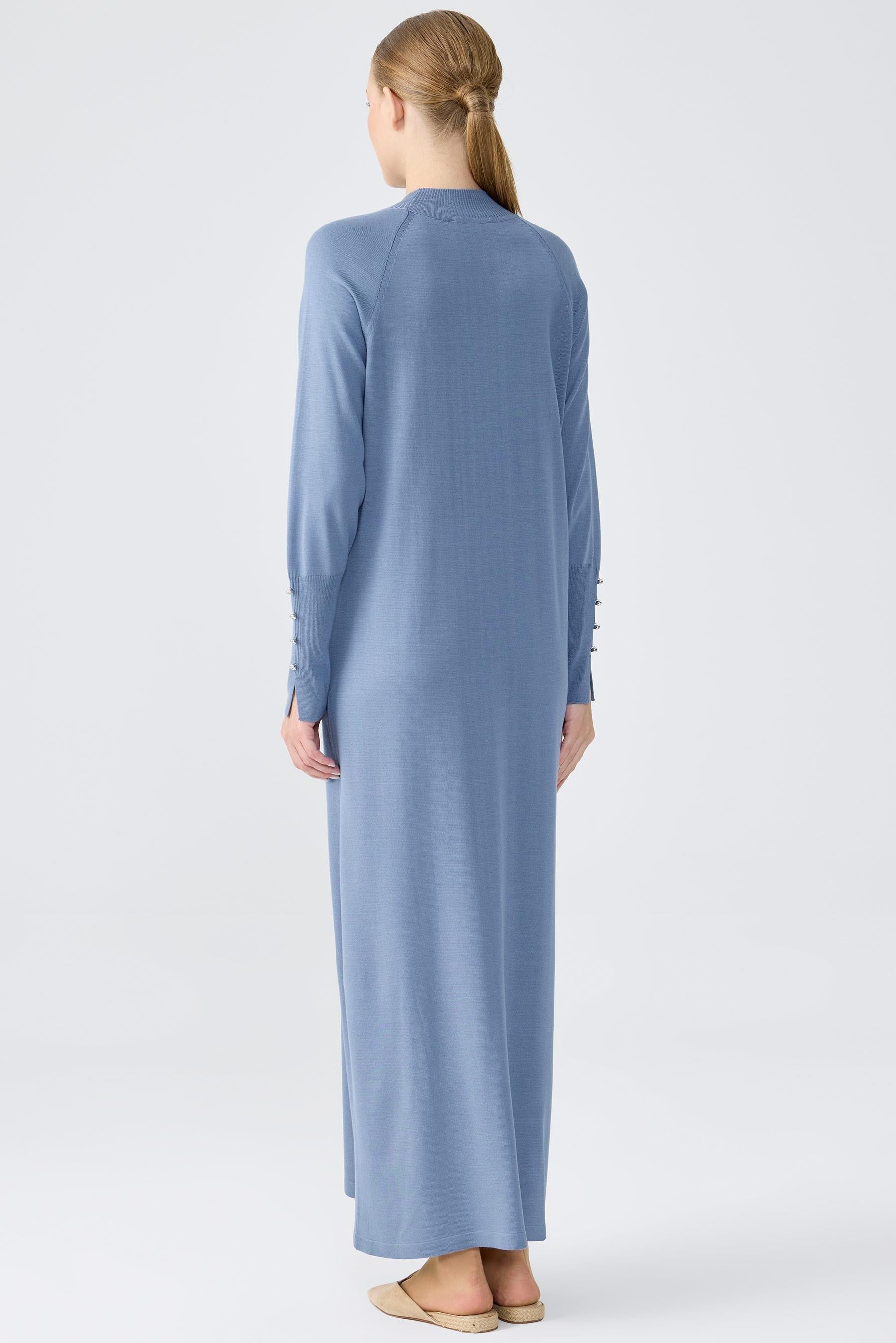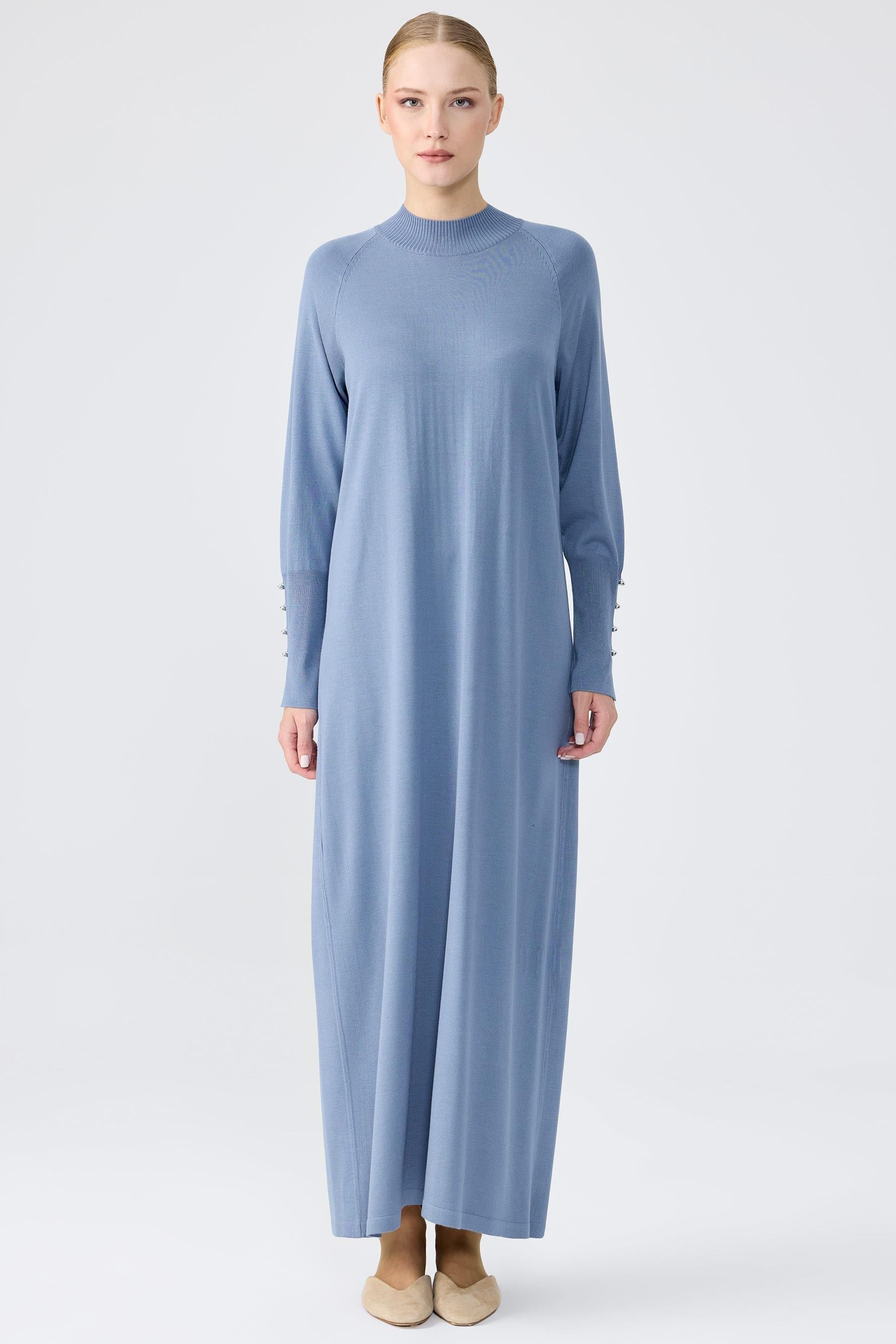 Yarım Balıkçı Basic Triko Elbise GRİ MAVİ (ELB.21597.1)