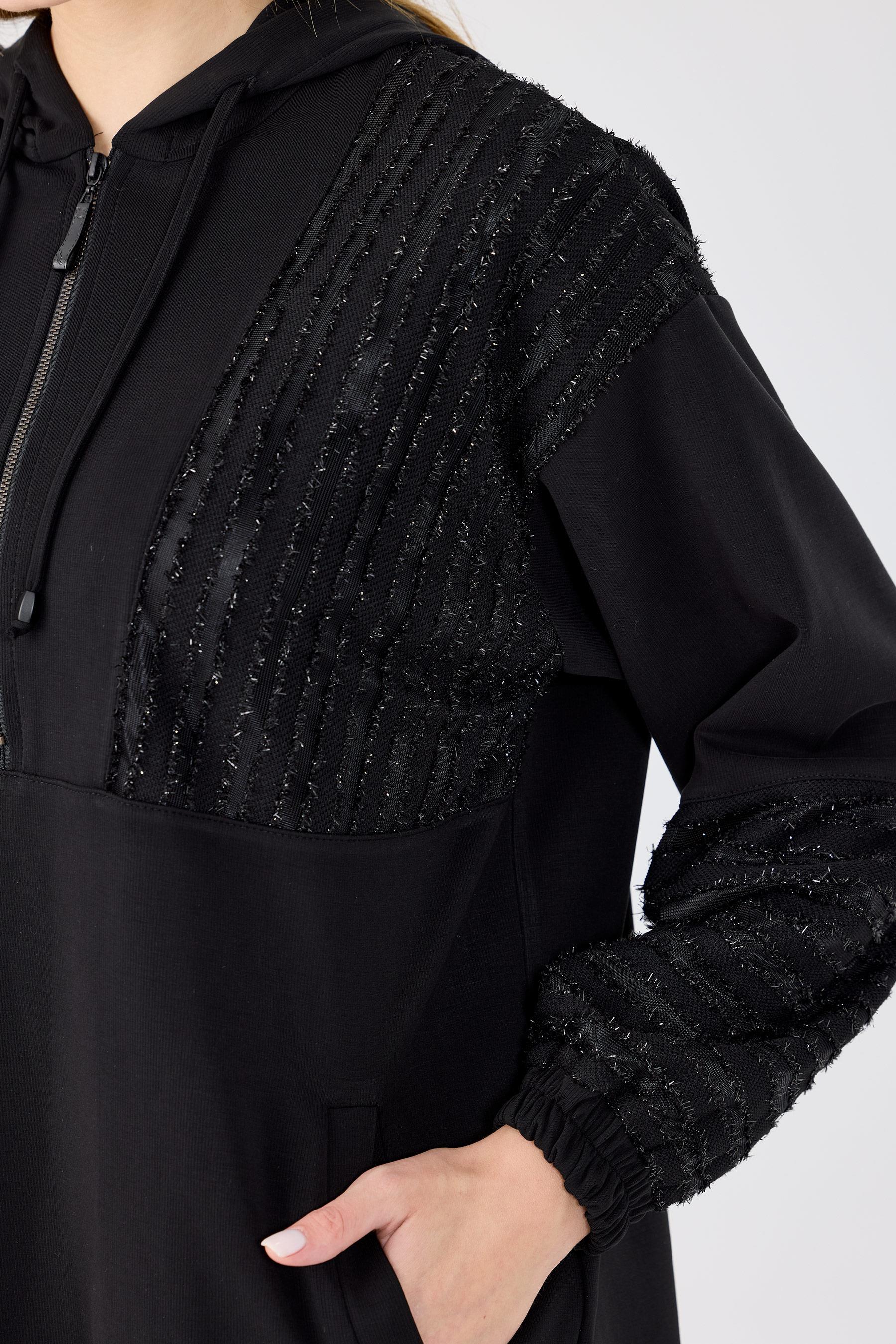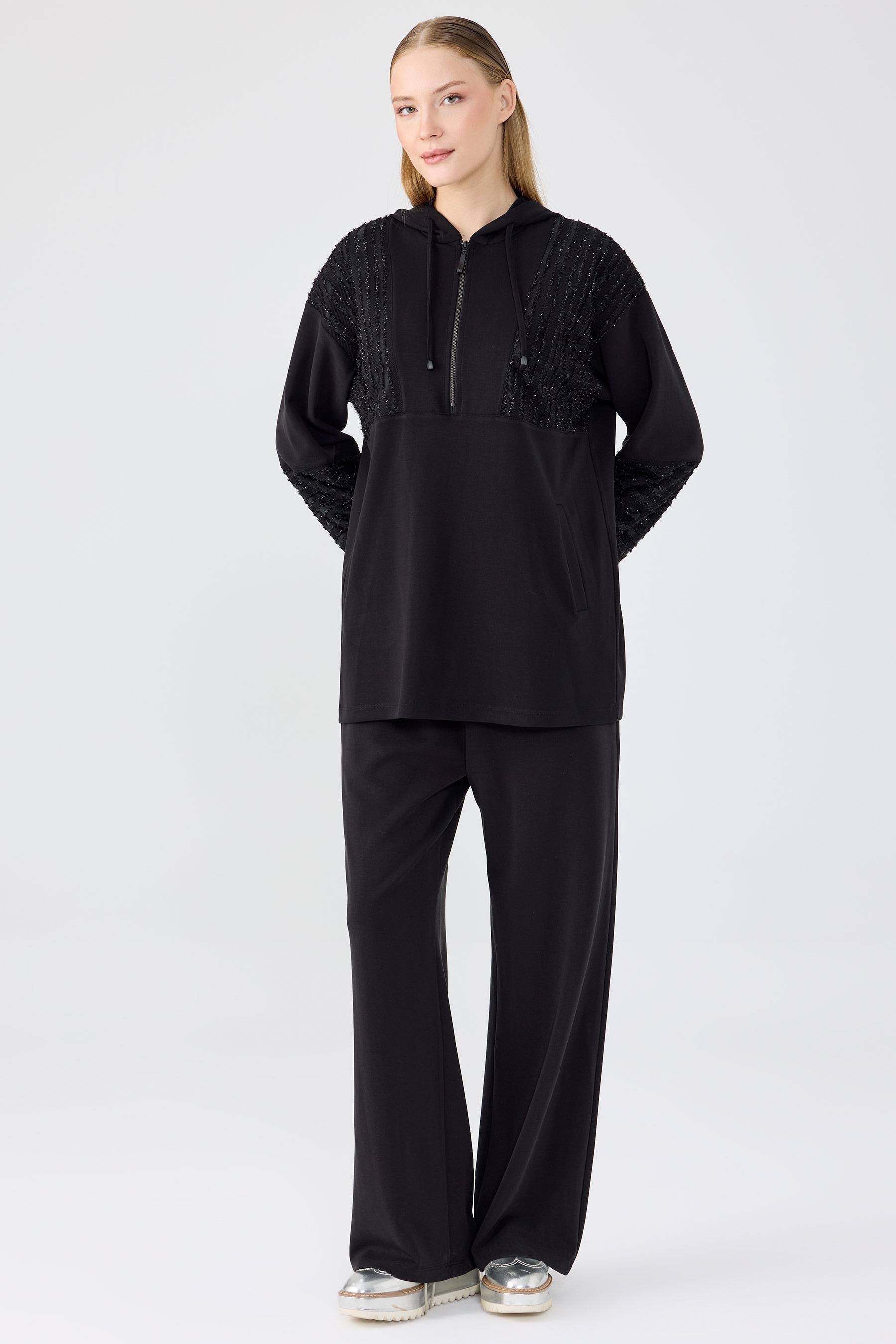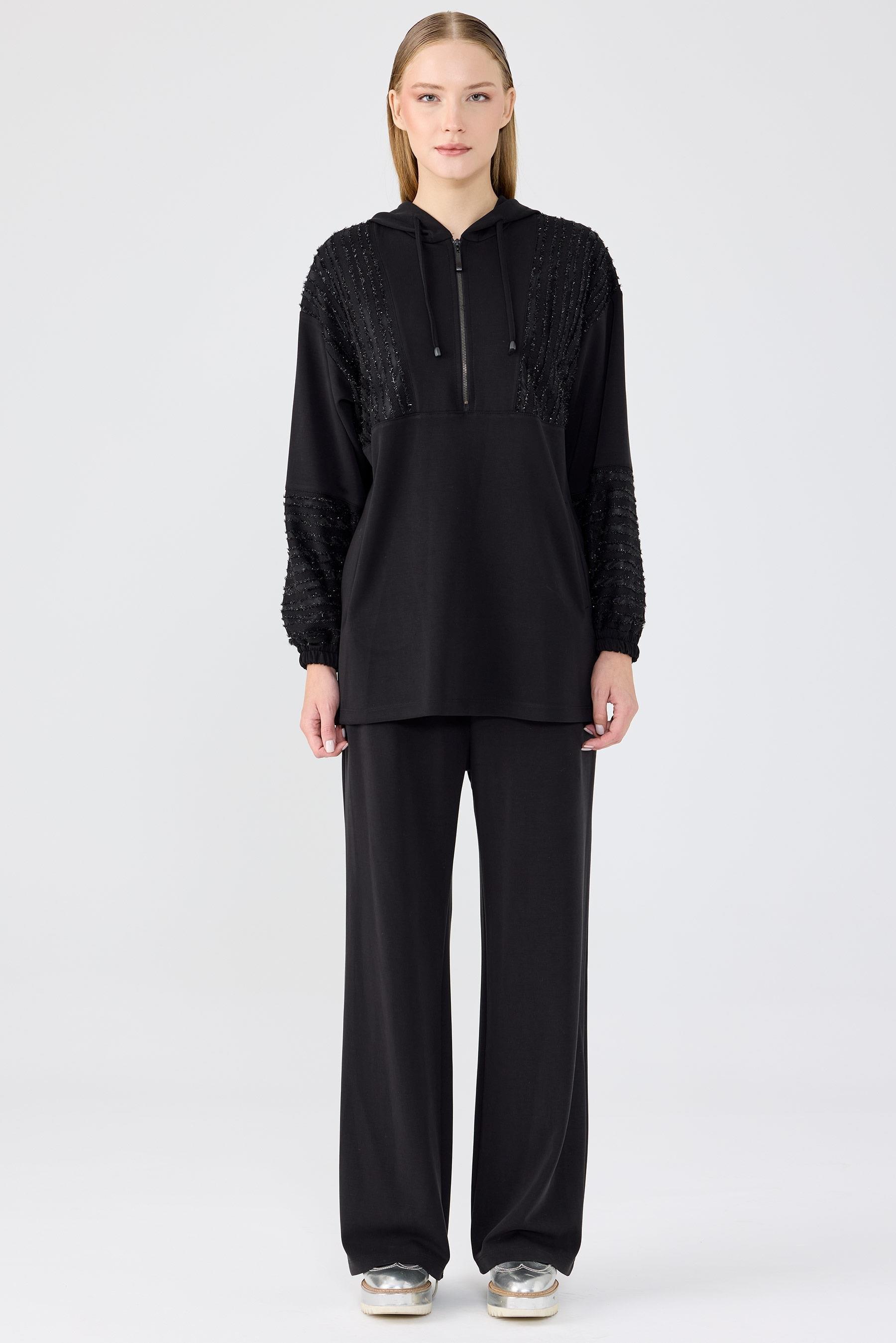 Kabartma File Kombinli Tunik Pantolon Takım SİYAH (TKM.5022.01)