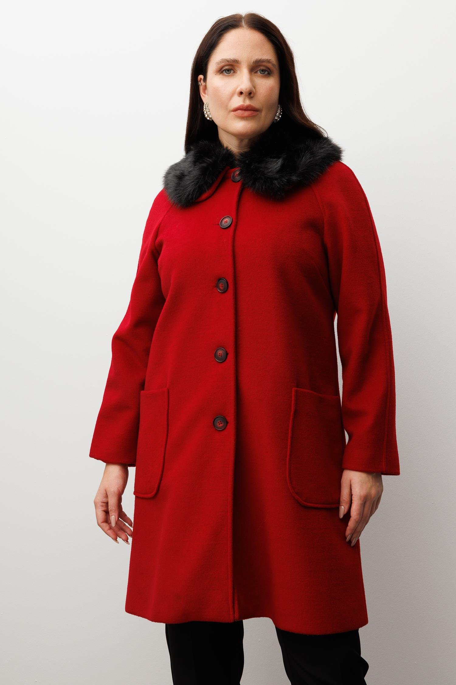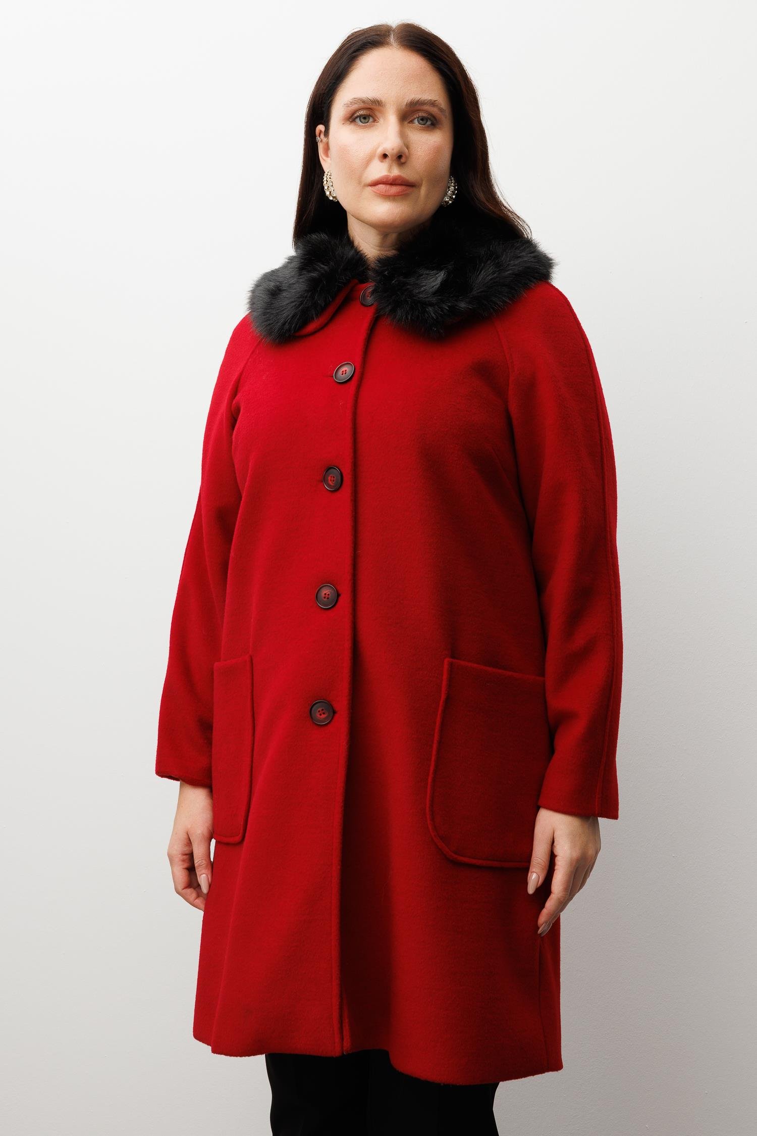 Modailgi Yakası Kürklü Reglan Kol Kaban Kırmızı (GLD230KBN07054-146)