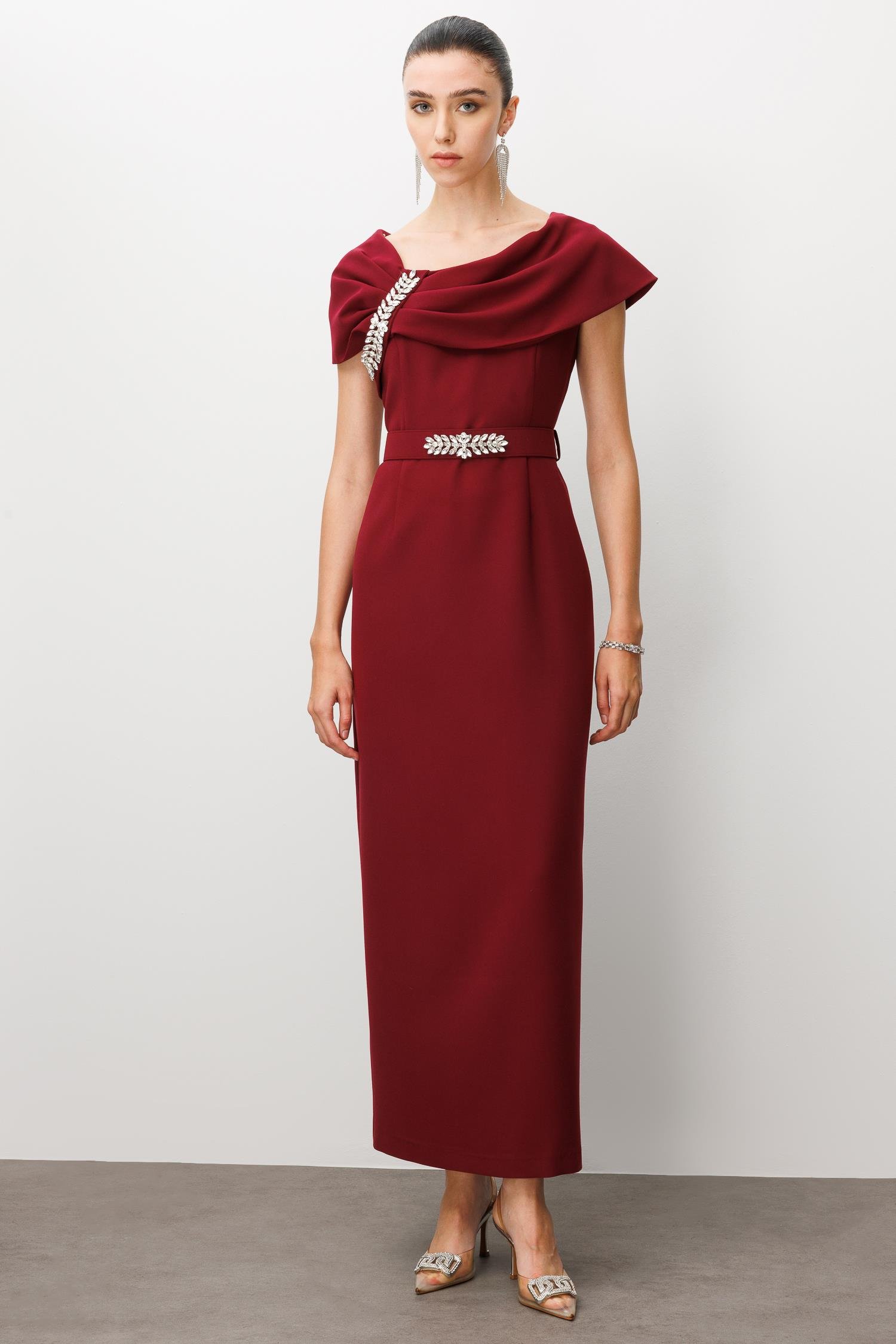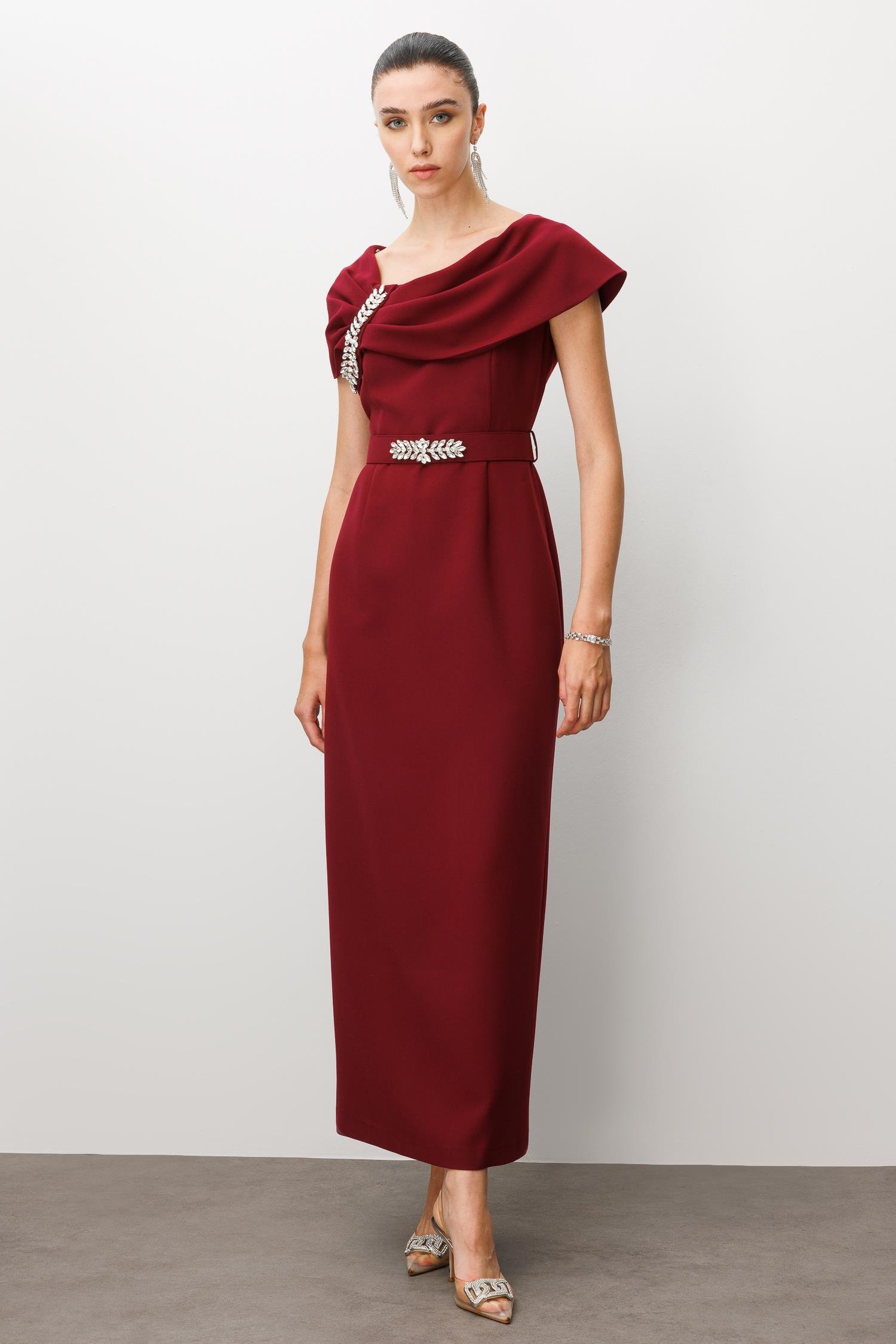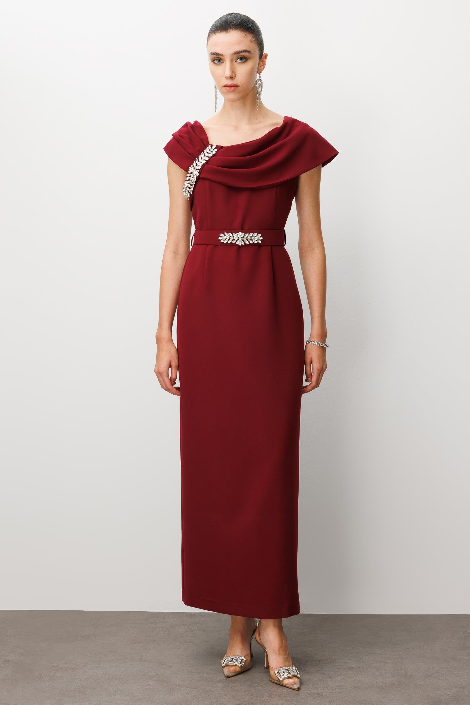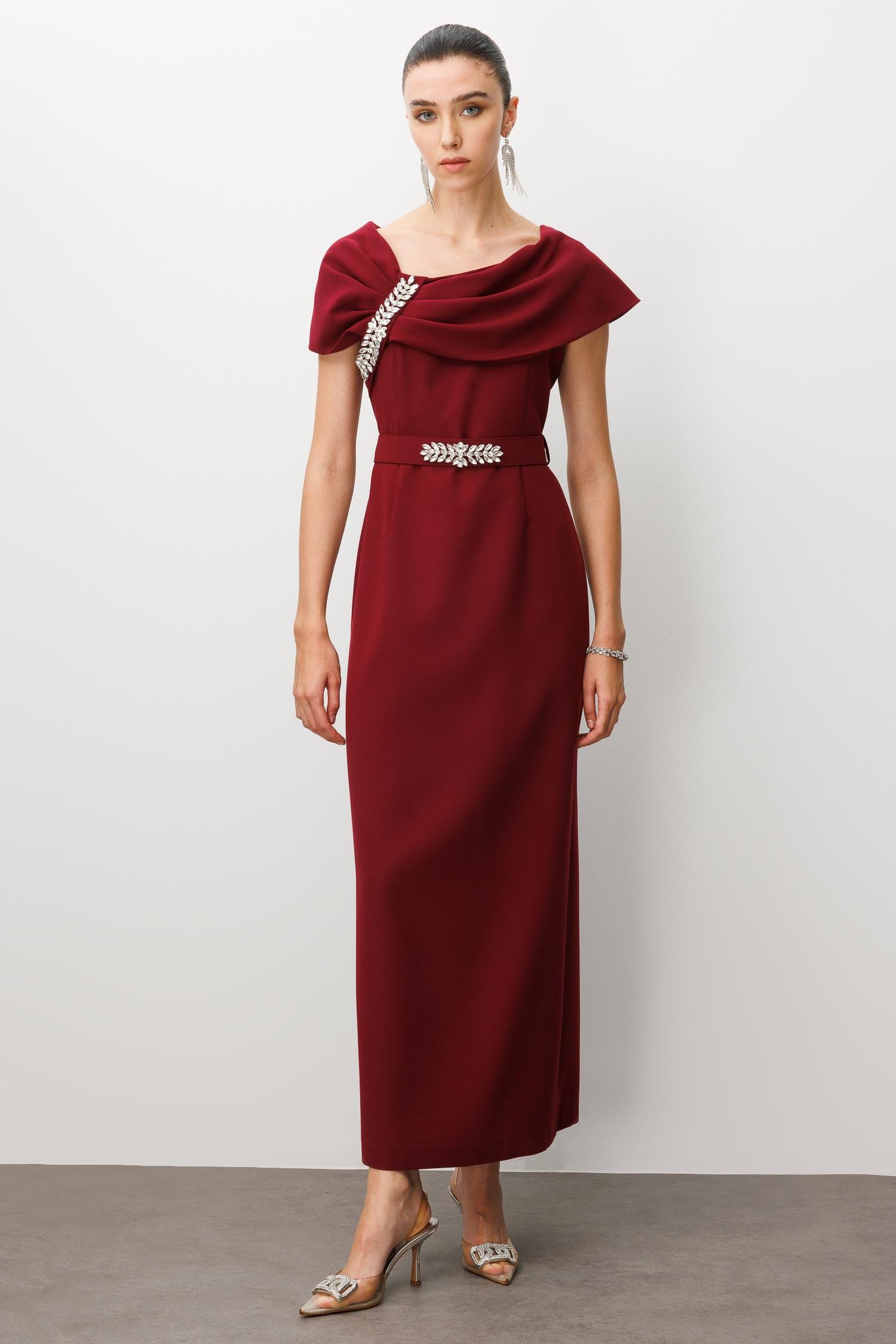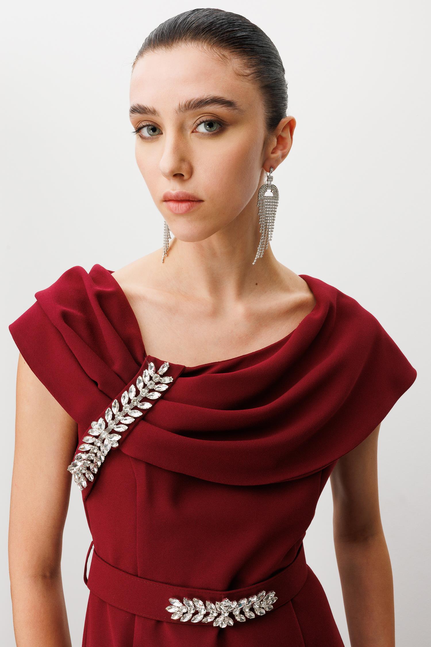 Modailgi Aksesuar Detaylı Elbise – Bordo