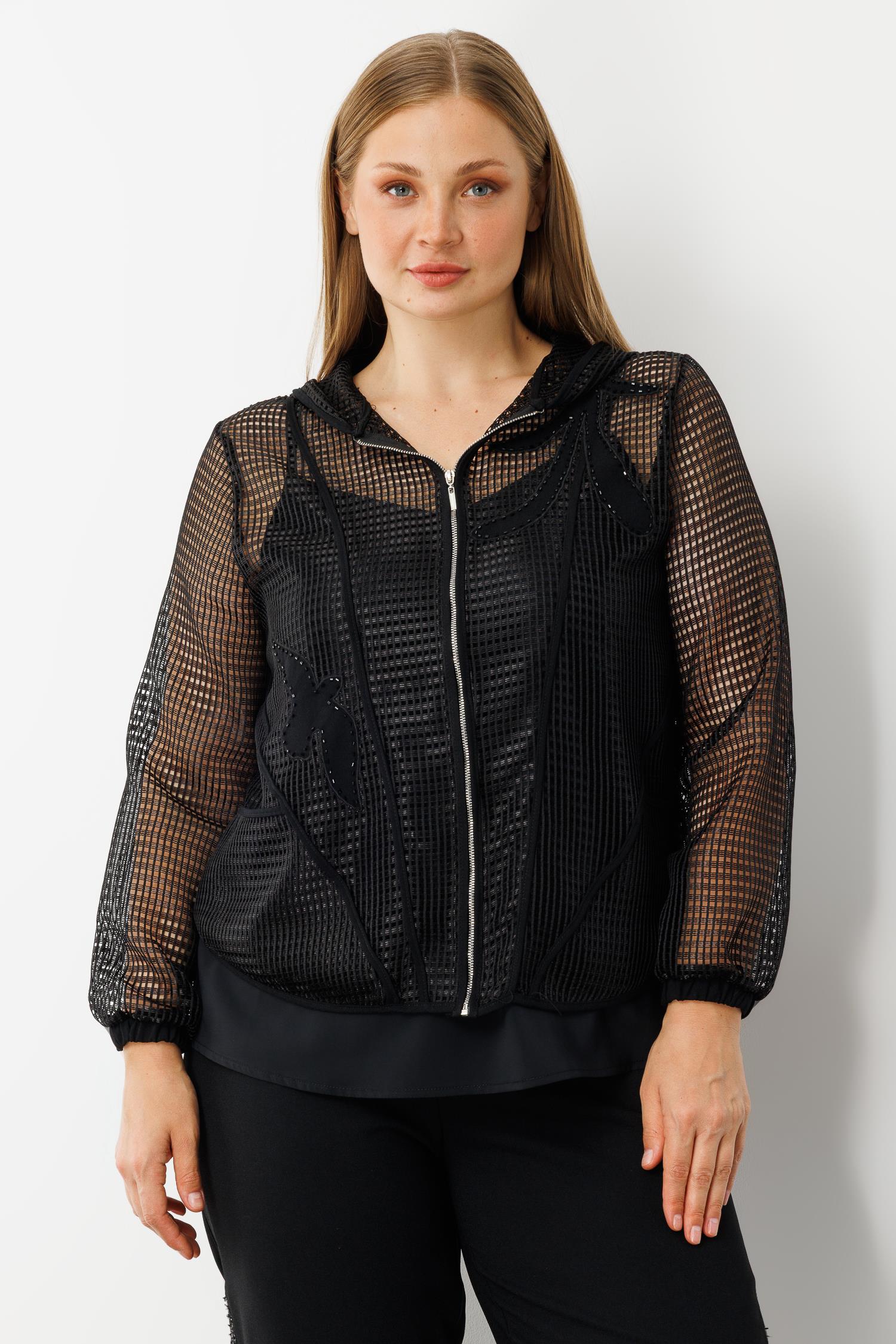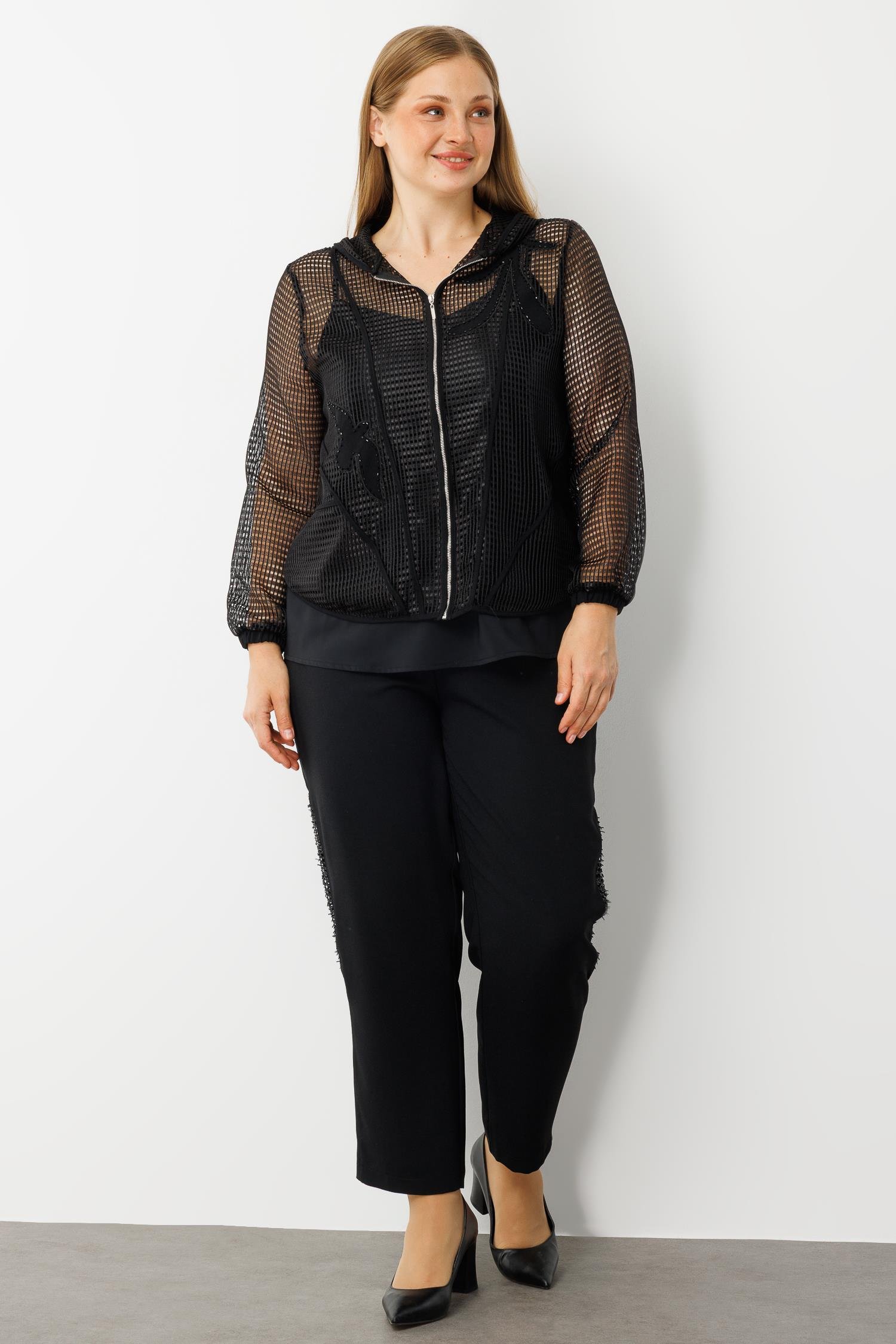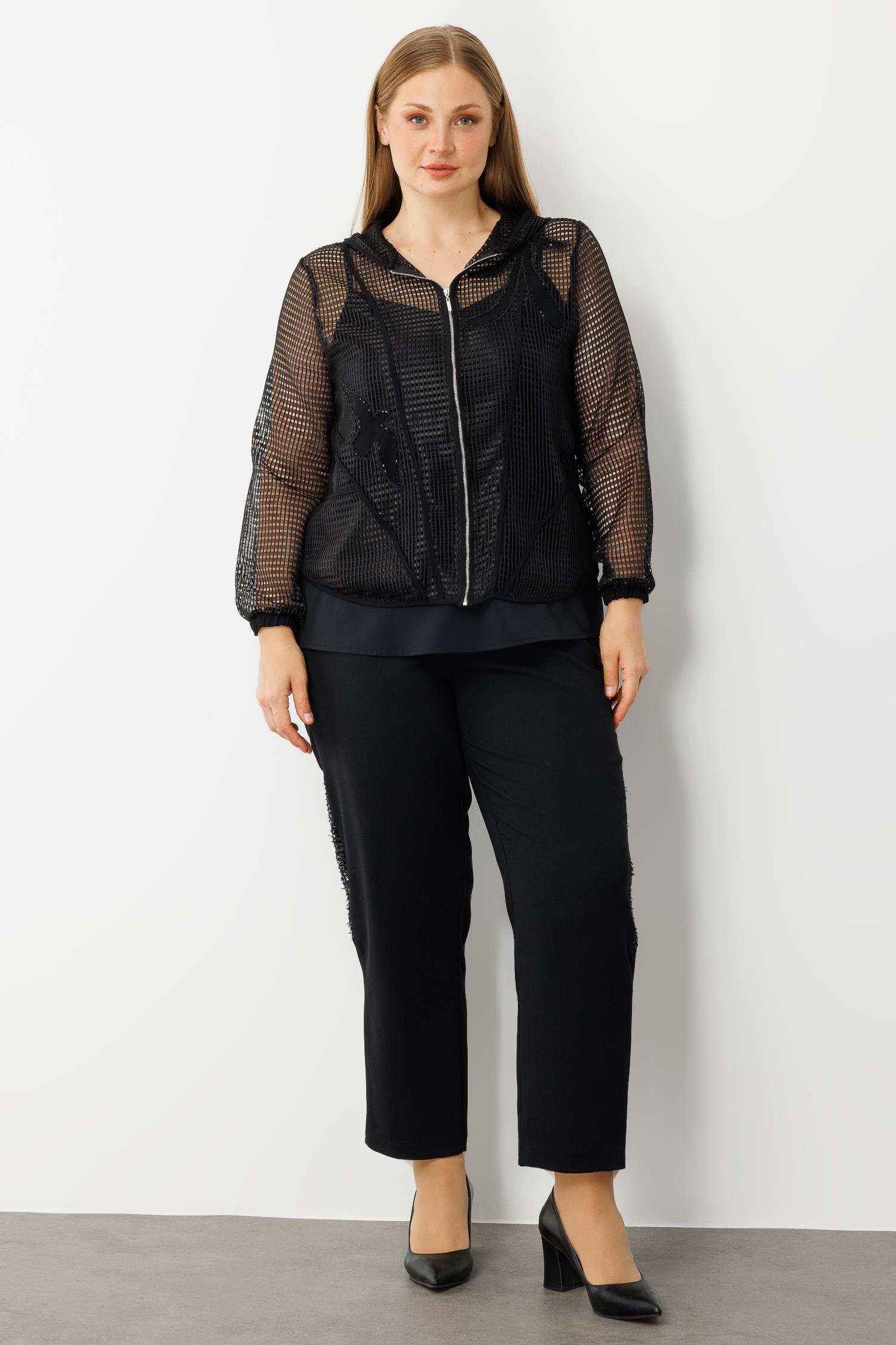 Modailgi  Aplikeli Kapüşonlu Fileli İkili Takım Taş Modailgi  Aplikeli Kapüşonlu Fileli İkili Takım Siyah