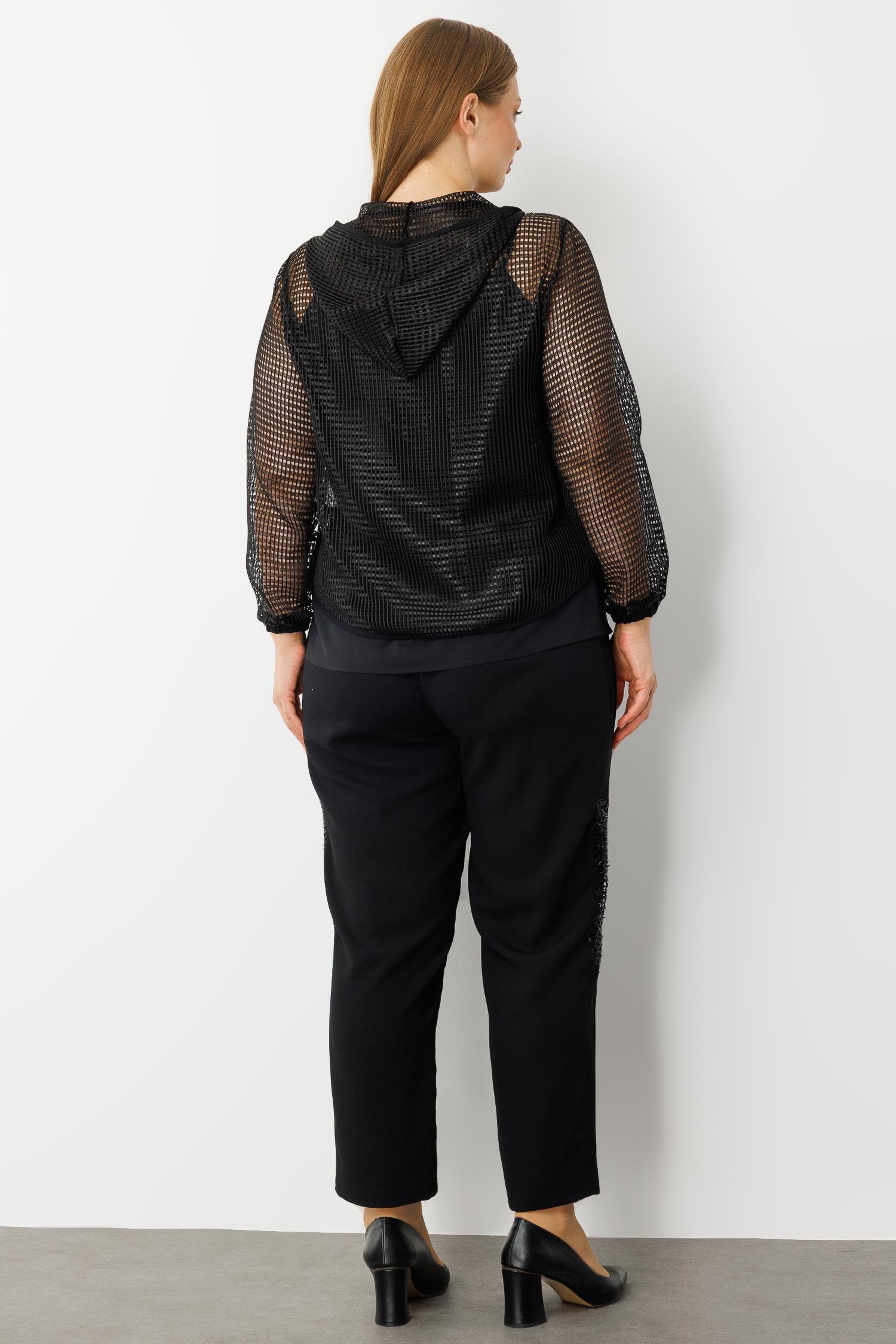 Modailgi Aplikeli Kapüşonlu Fileli İkili Takım Siyah (GLD260TKM40039-263)