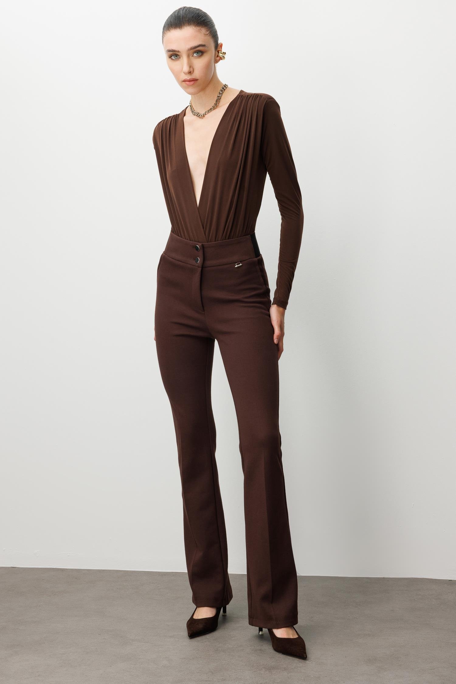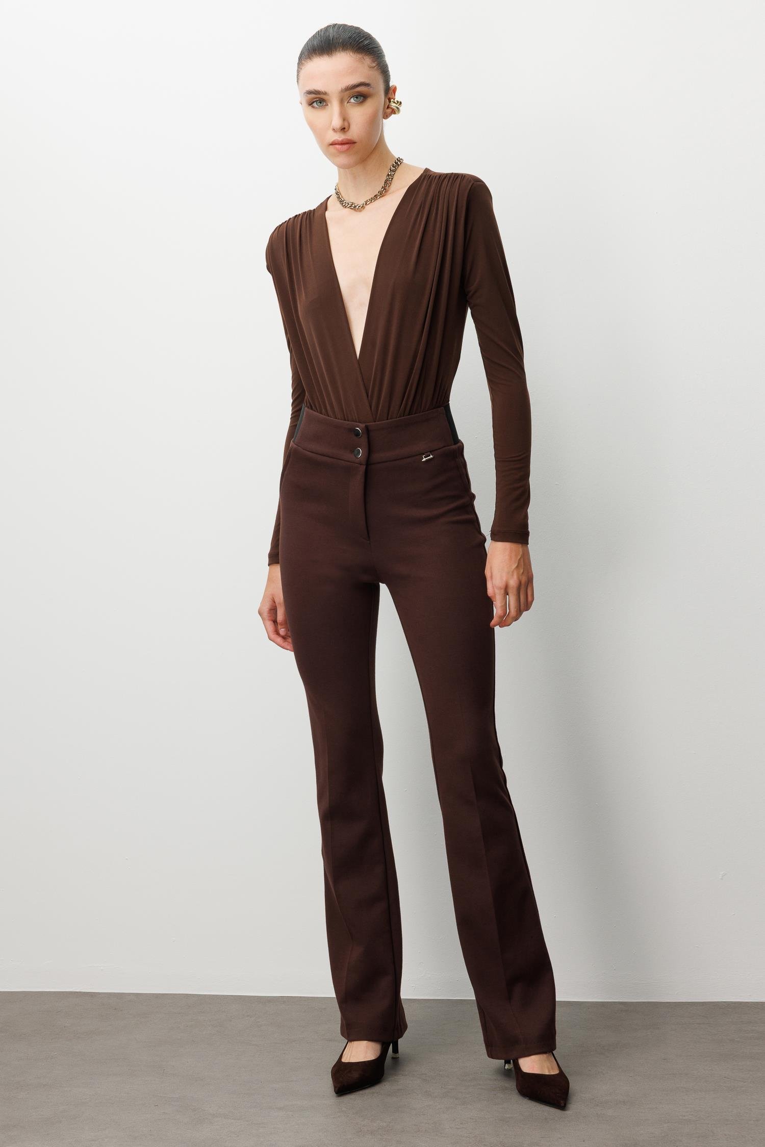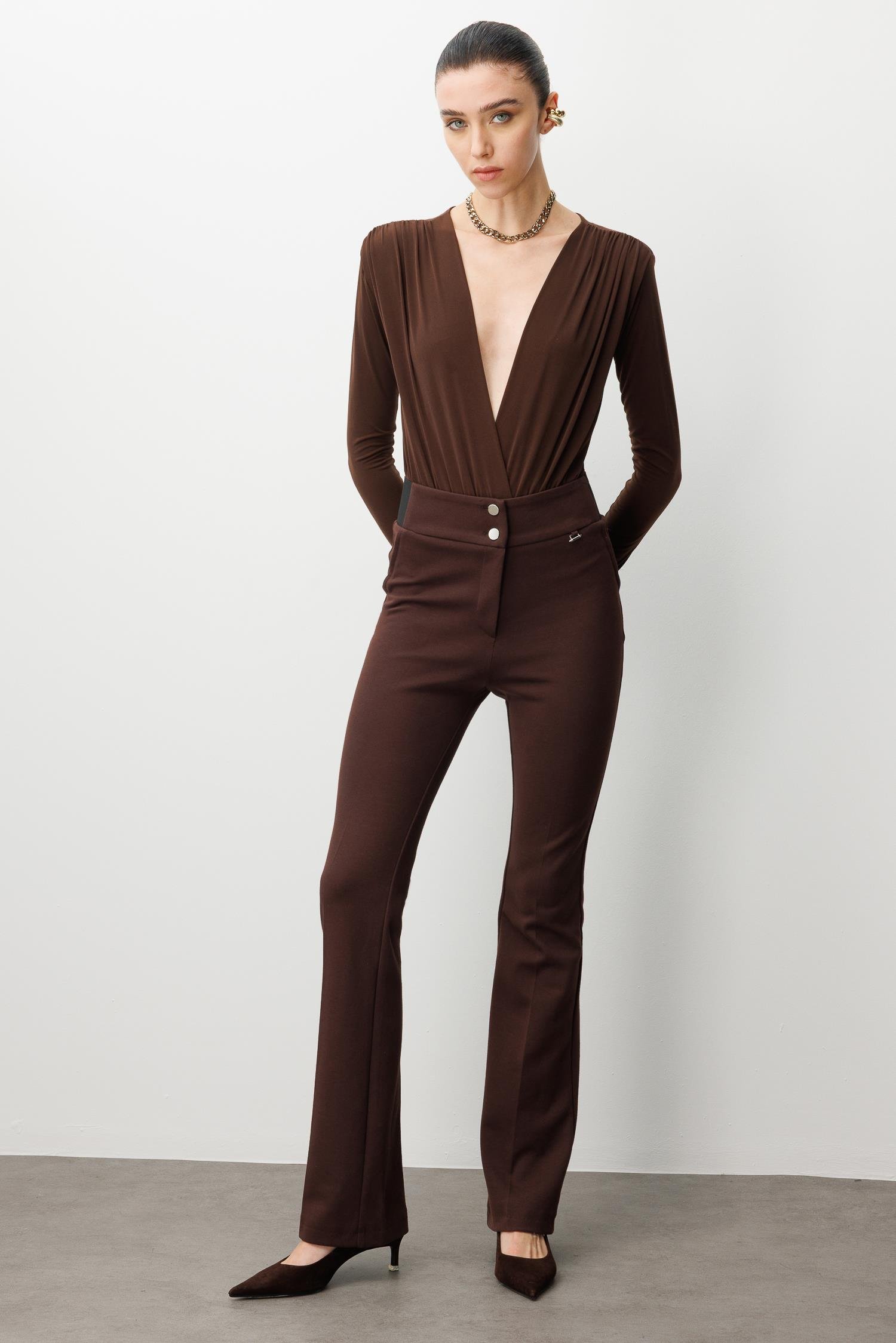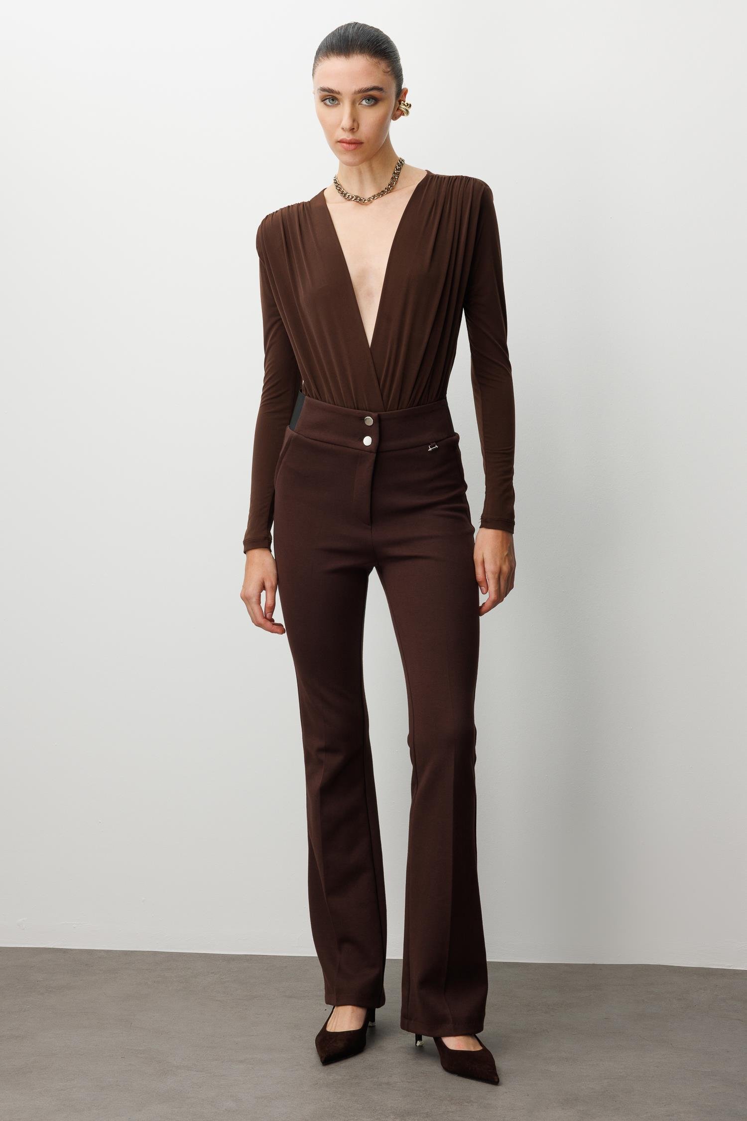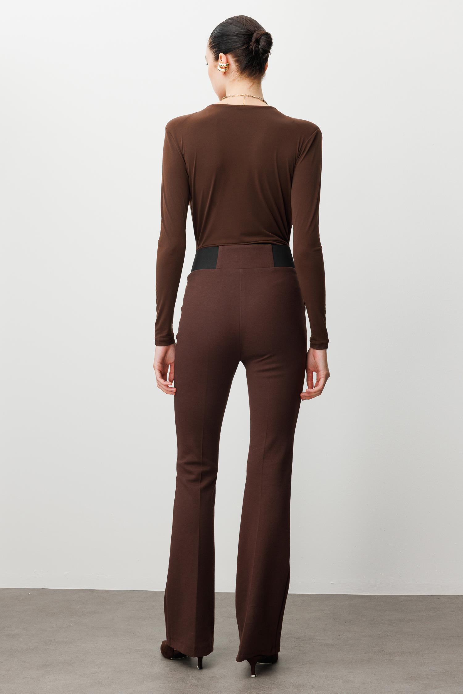 Modailgi Bel Korsajı Lastikli İspanyol Paça Pantolon – Kahve