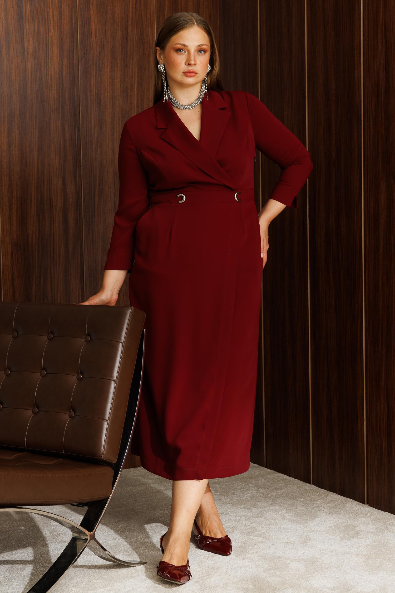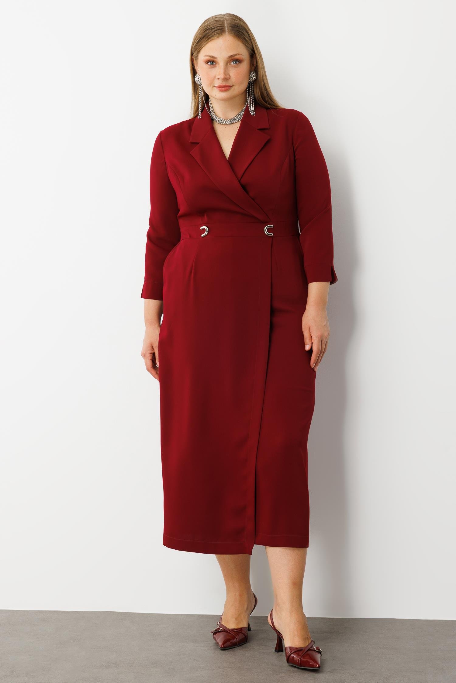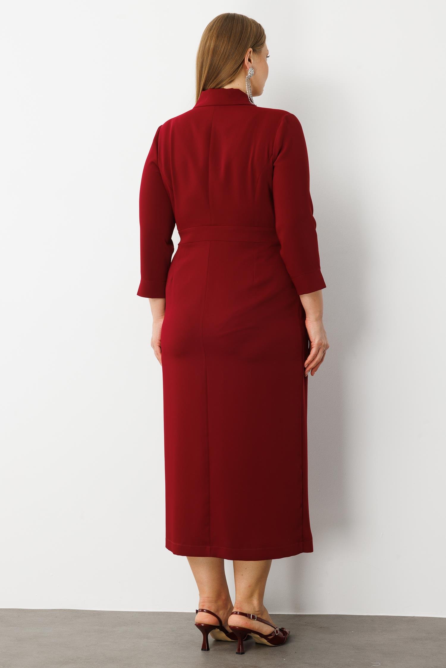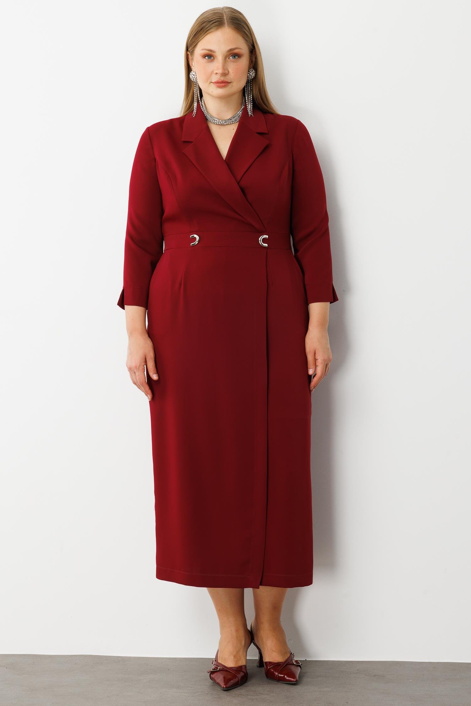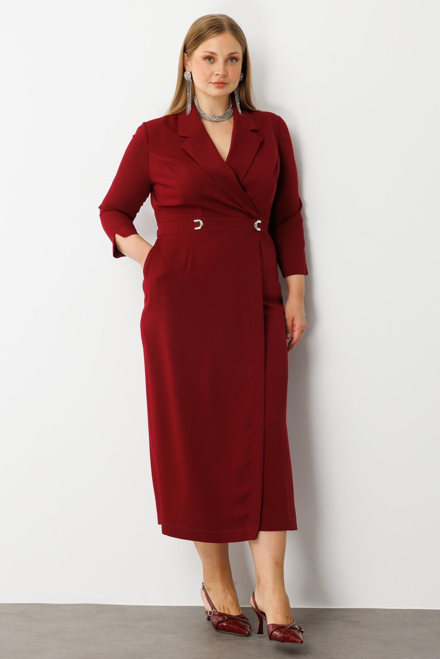 Modailgi Beli Aksesuarlı Cepli Kruvaze Elbise Bordo (GLD251ELB08056-041)