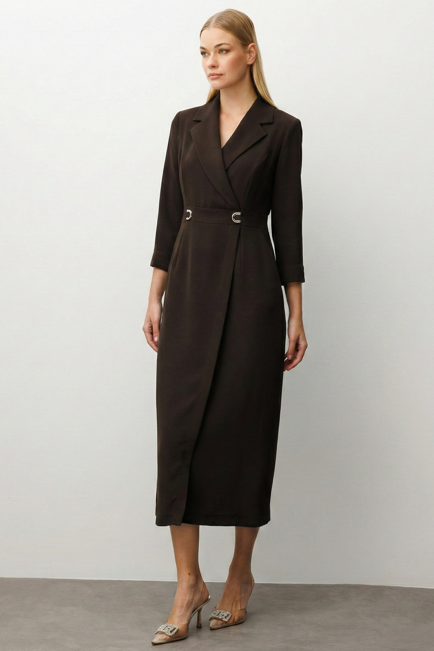 Modailgi Beli Aksesuarlı Cepli Kruvaze Elbise – Kahve