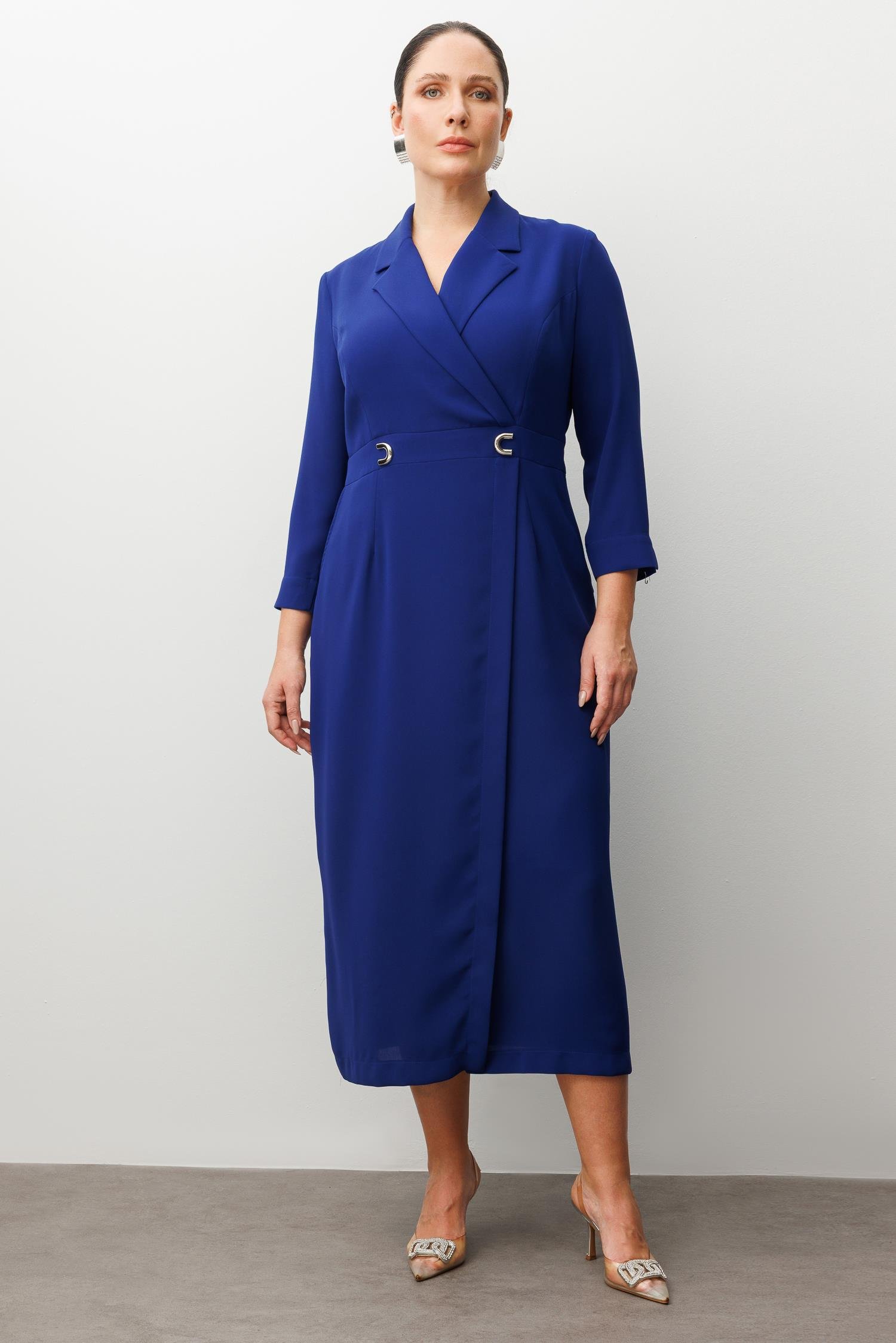 Modailgi Beli Aksesuarlı Cepli Kruvaze Elbise Morcivert (GLD251ELB08056-206)