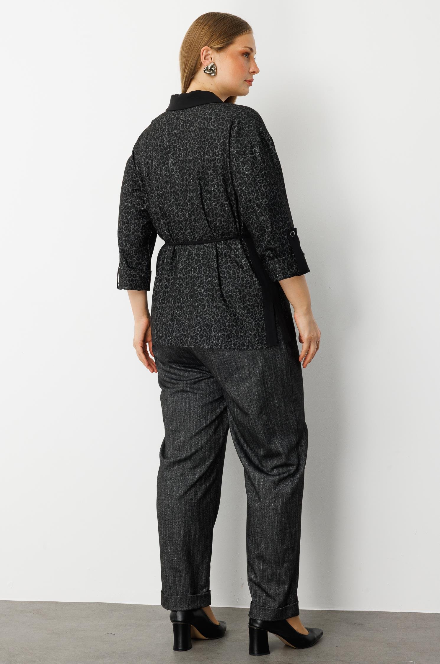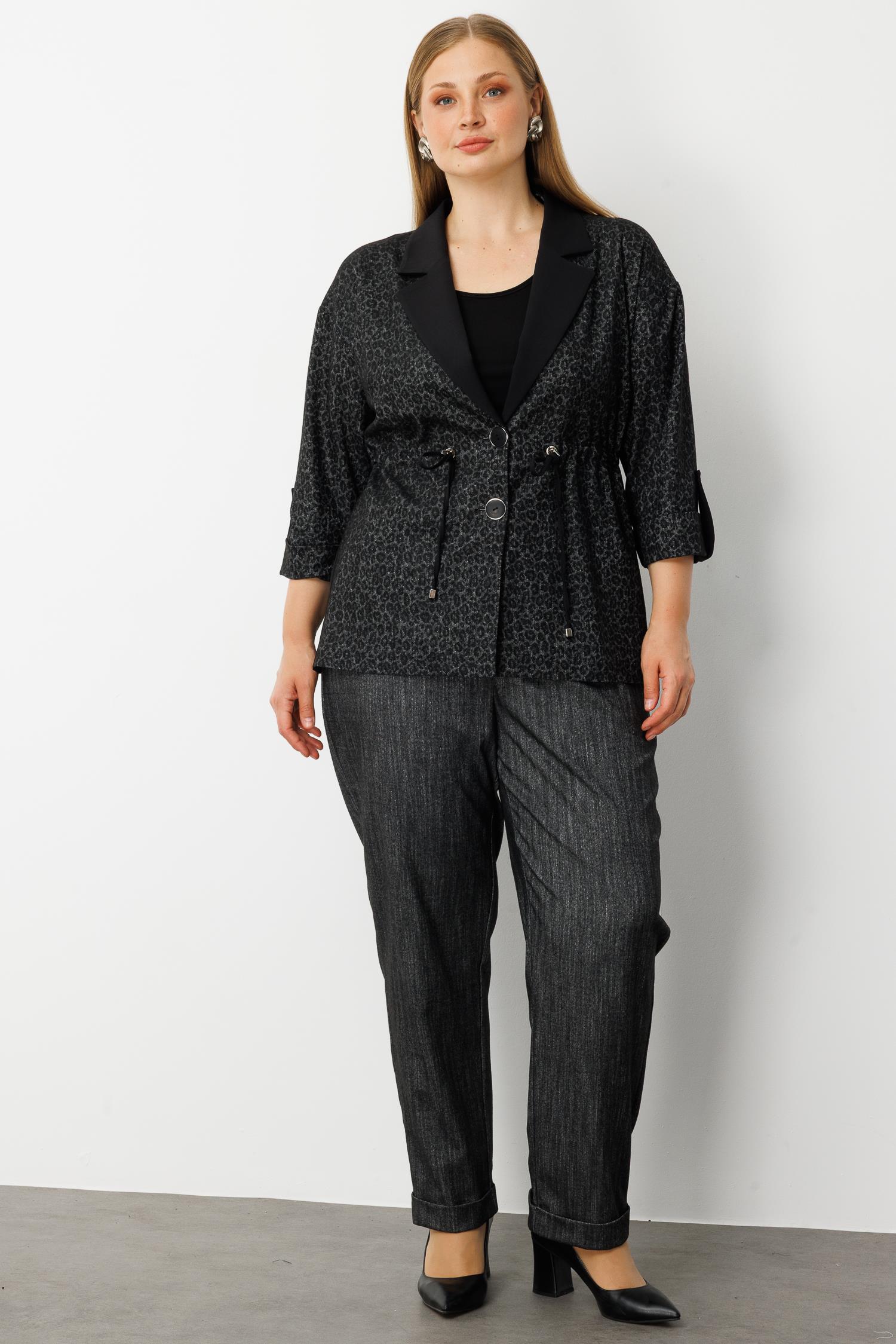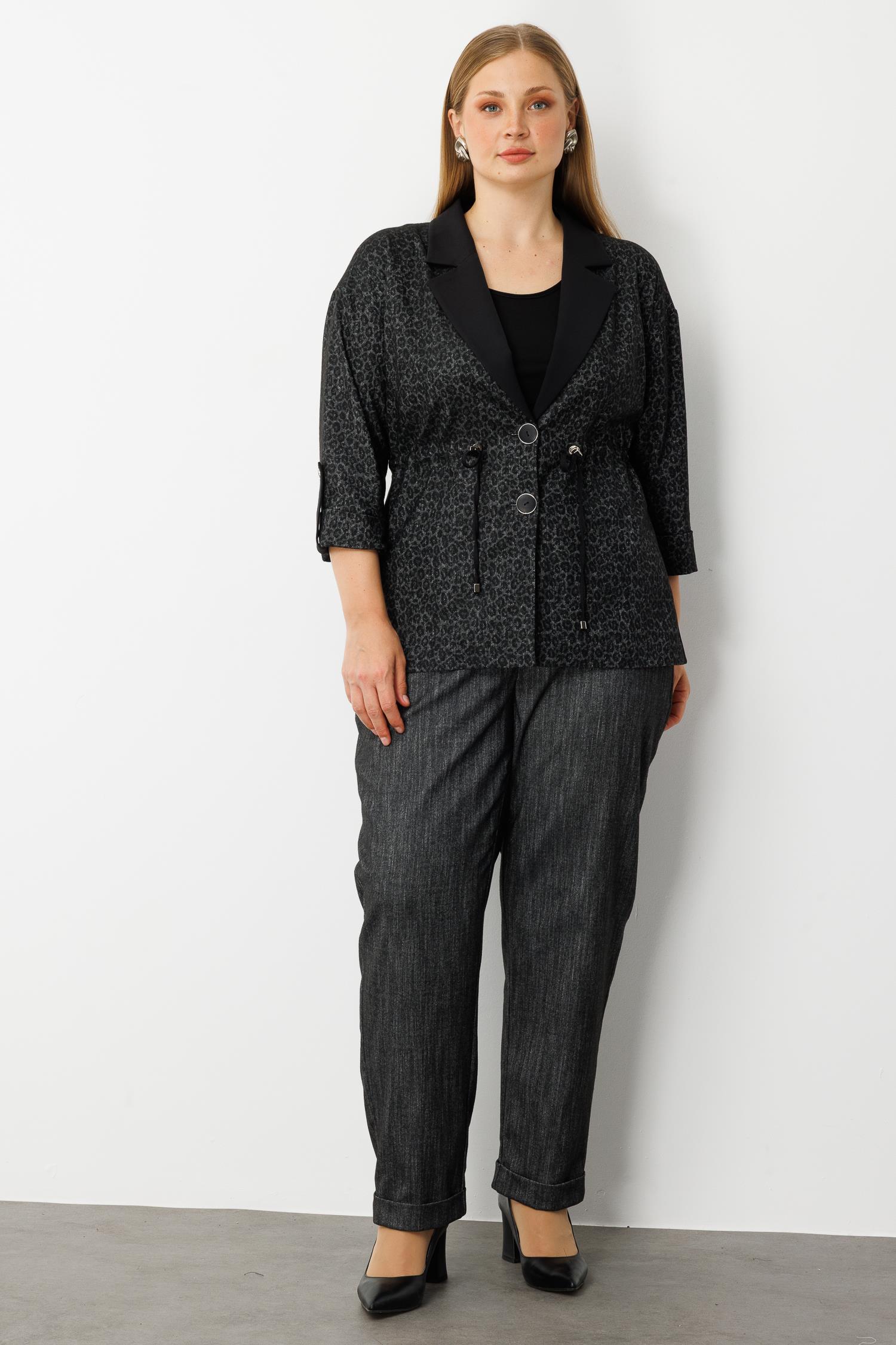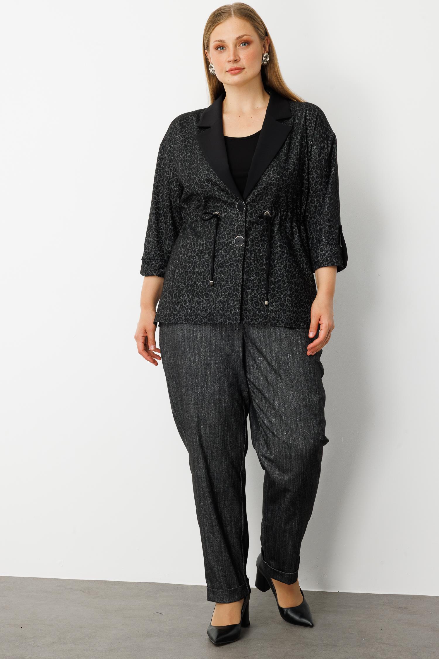 Modailgi Beli Büzgülü Tek Düğme Leopar Ceket - 30062 Antrasit (GLD260TNK40317-003)