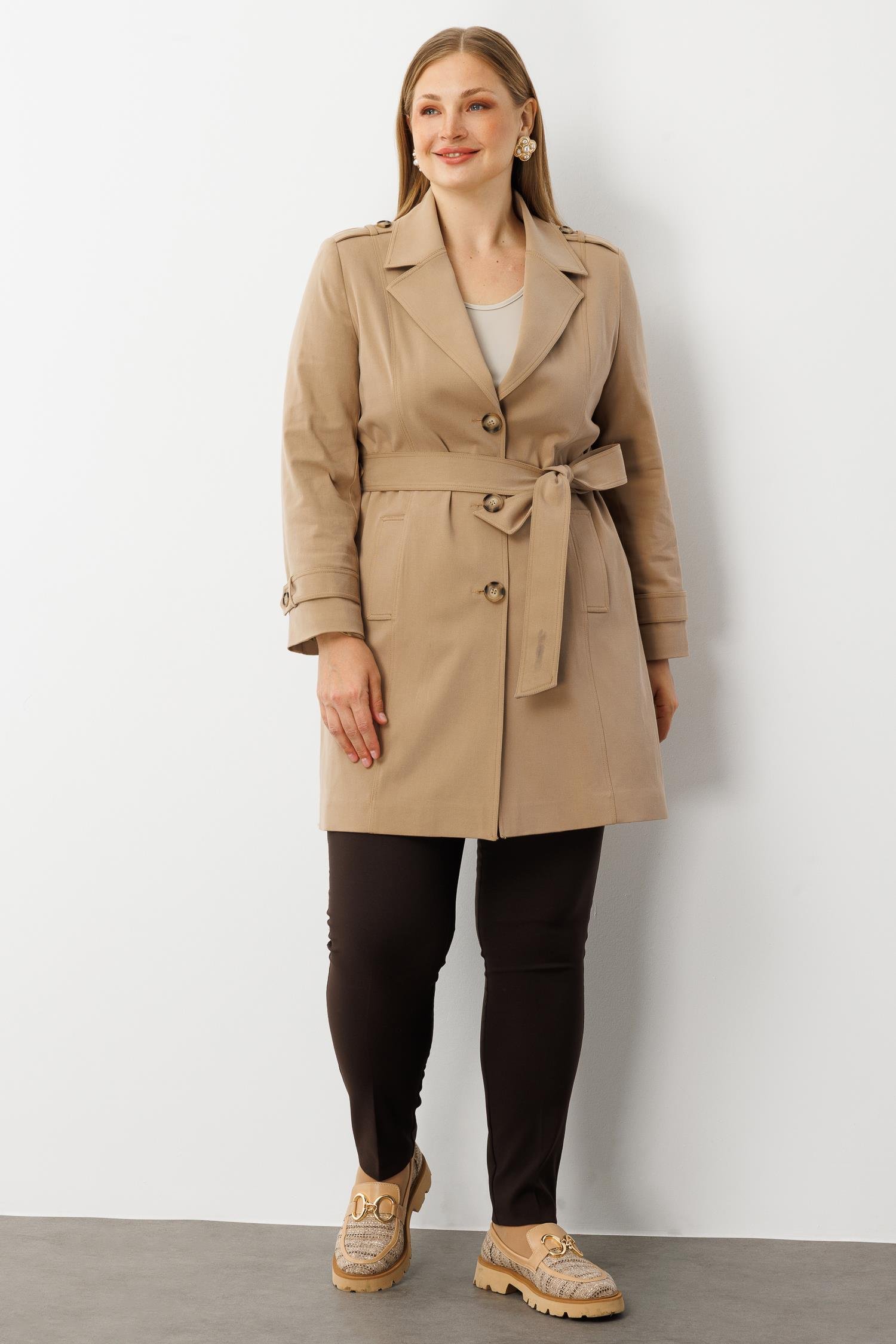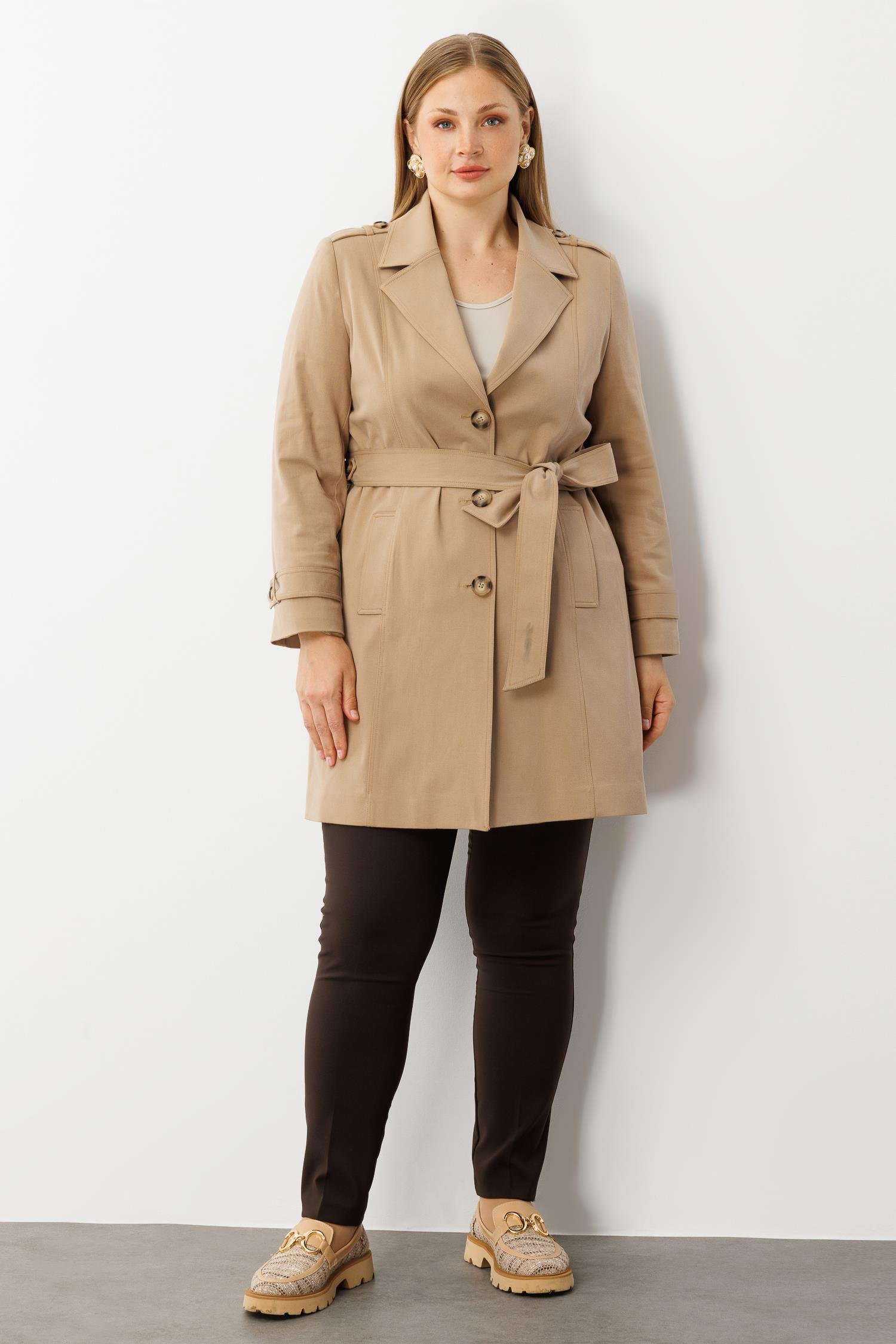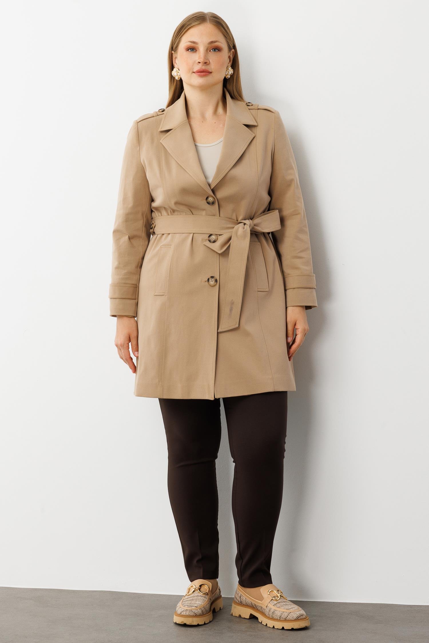 Modailgi Beli Kuşaklı Omuzları Apoletli Trençkot Camel (GLD260TRC70015-047)