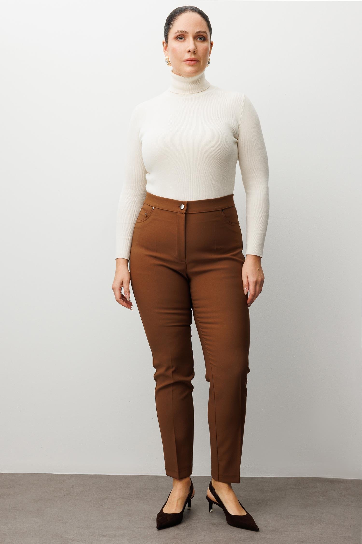 Modailgi Beli Lastikli Beş Cep Dar Paça Pantolon Taba (GLD260PNT30518-309)