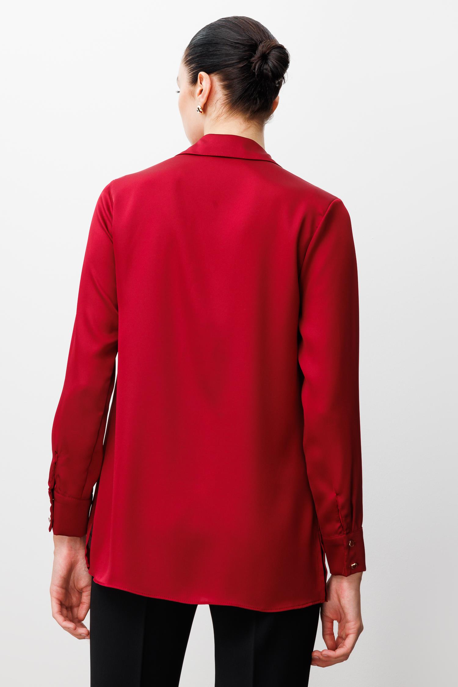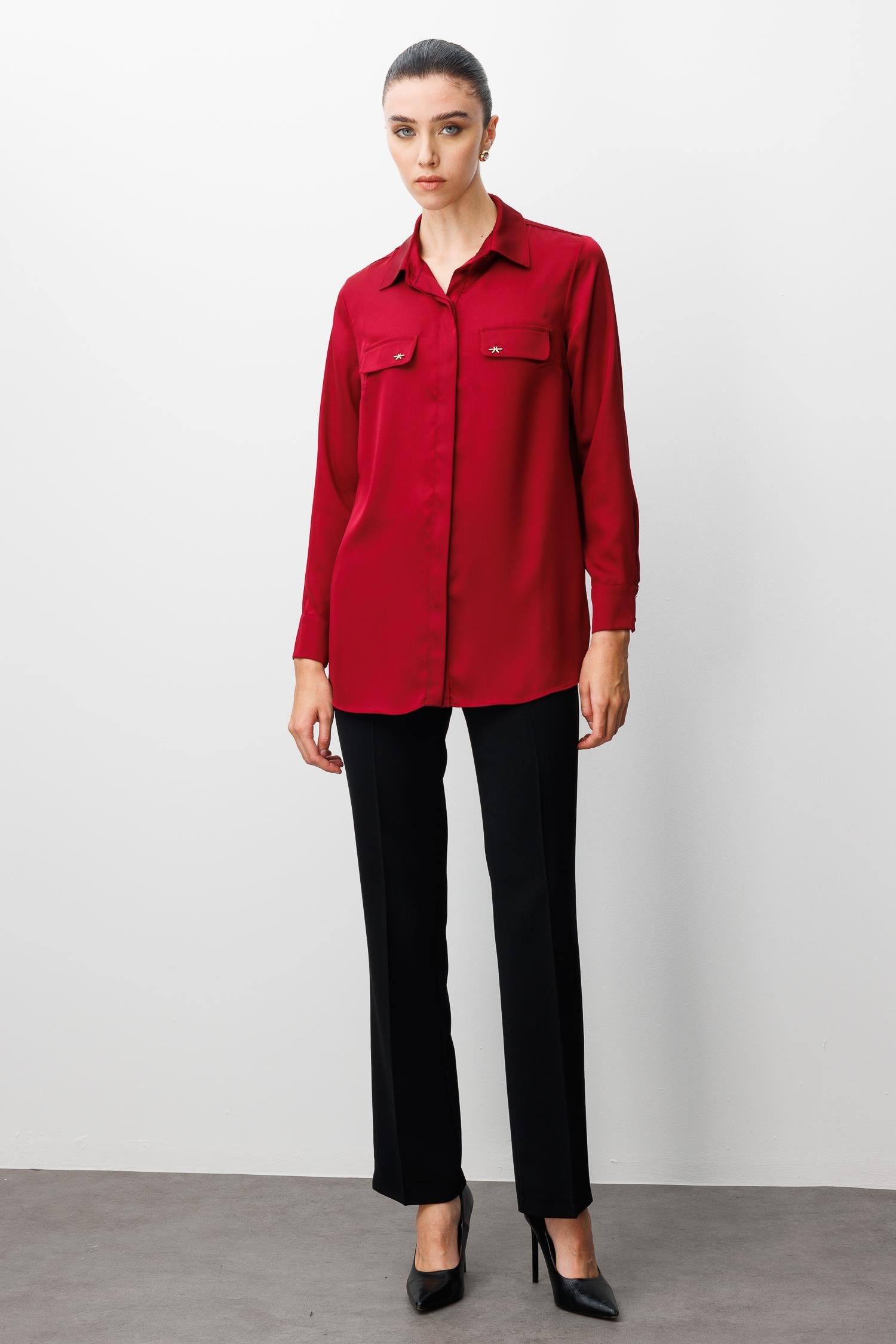 Zamansız şıklığın modern yorumu… Modailgi’nin klasik saten dokusunu detaylarla zenginleştirdiği bu gömlek, şehirli kadının güçlü stilini vurguluyor. Zarif parlaklığı ve bordo renginin sıcak tonu, gün boyu kusursuz bir görünüm sunar.