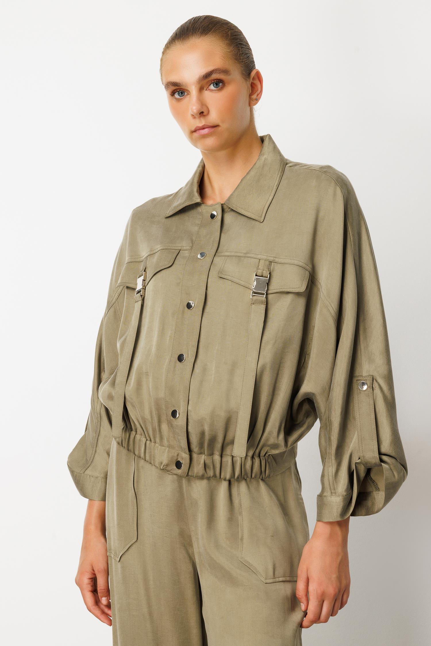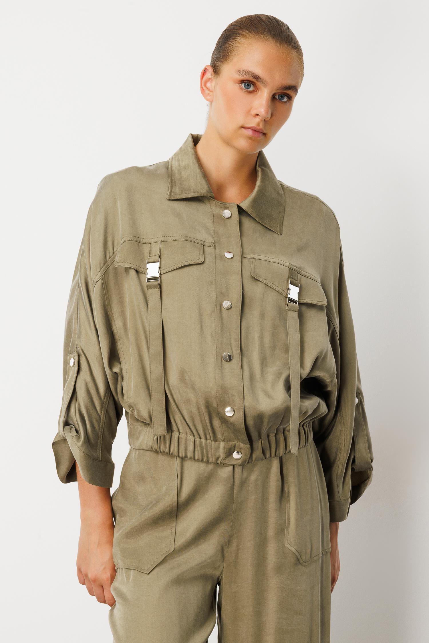 Modailgi Cepleri Metal Aksesuarlı Beli Lastikli Gömlek - Haki