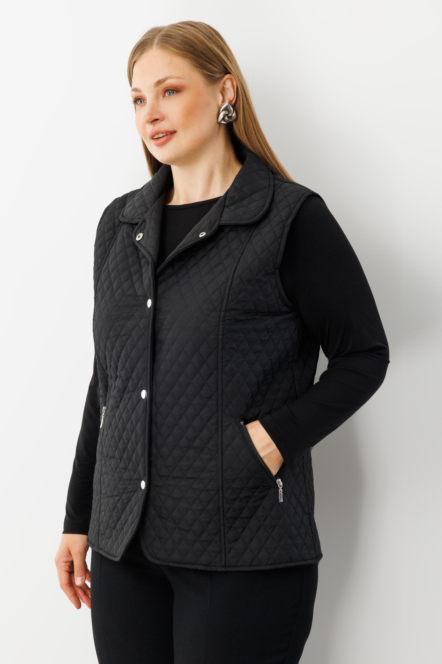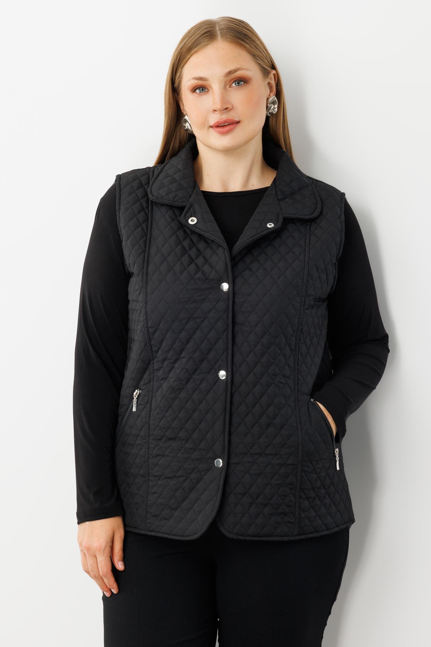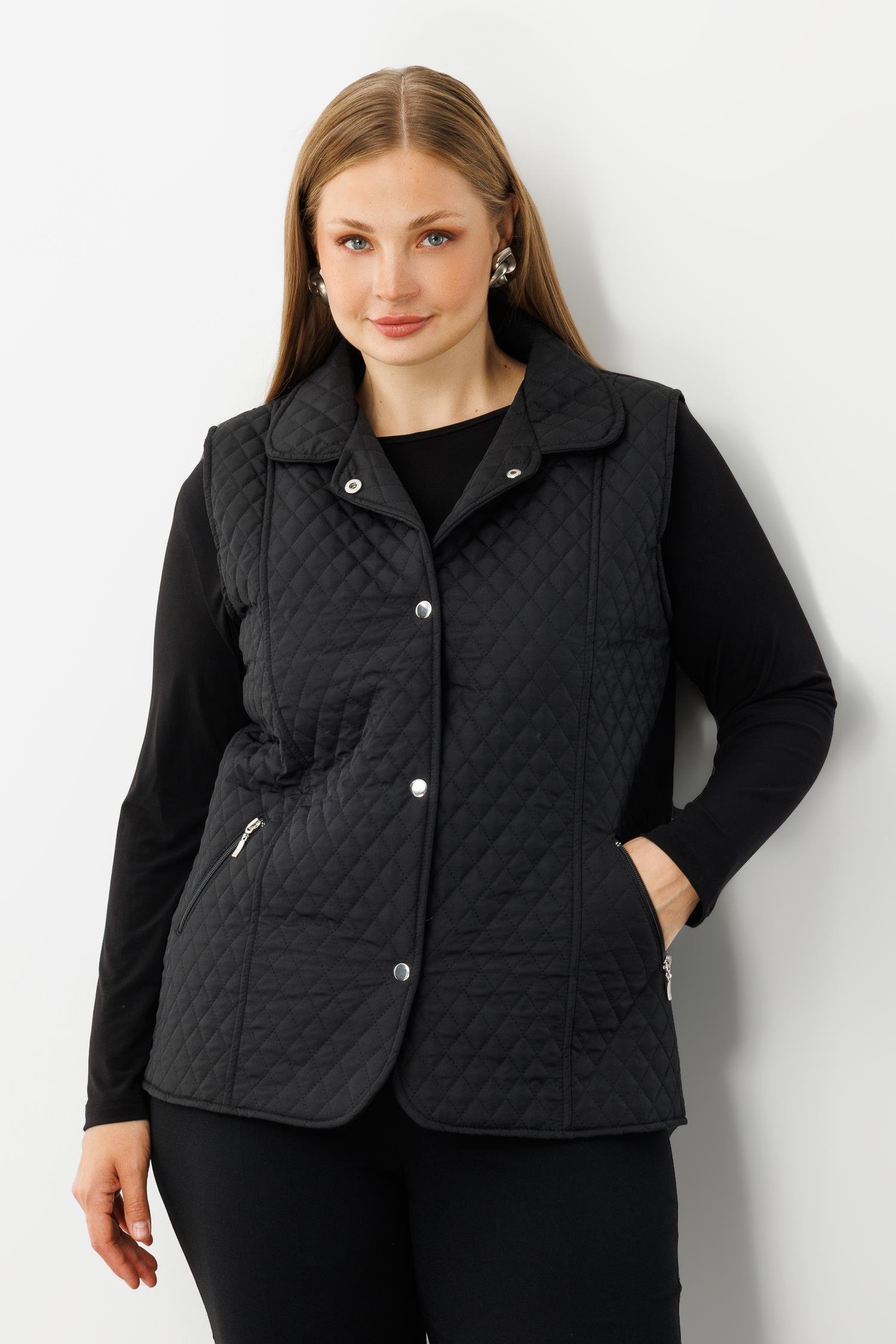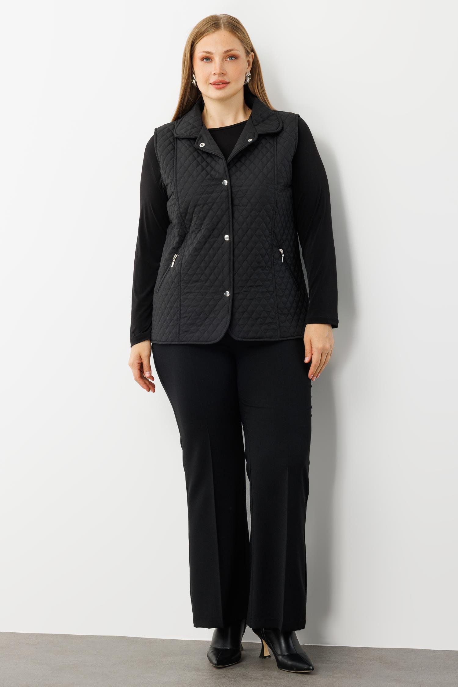Modailgi Çıtçıt Kapamalı Ekose Desen Kapitone Yelek Siyah (GLD260YLK61028-263)