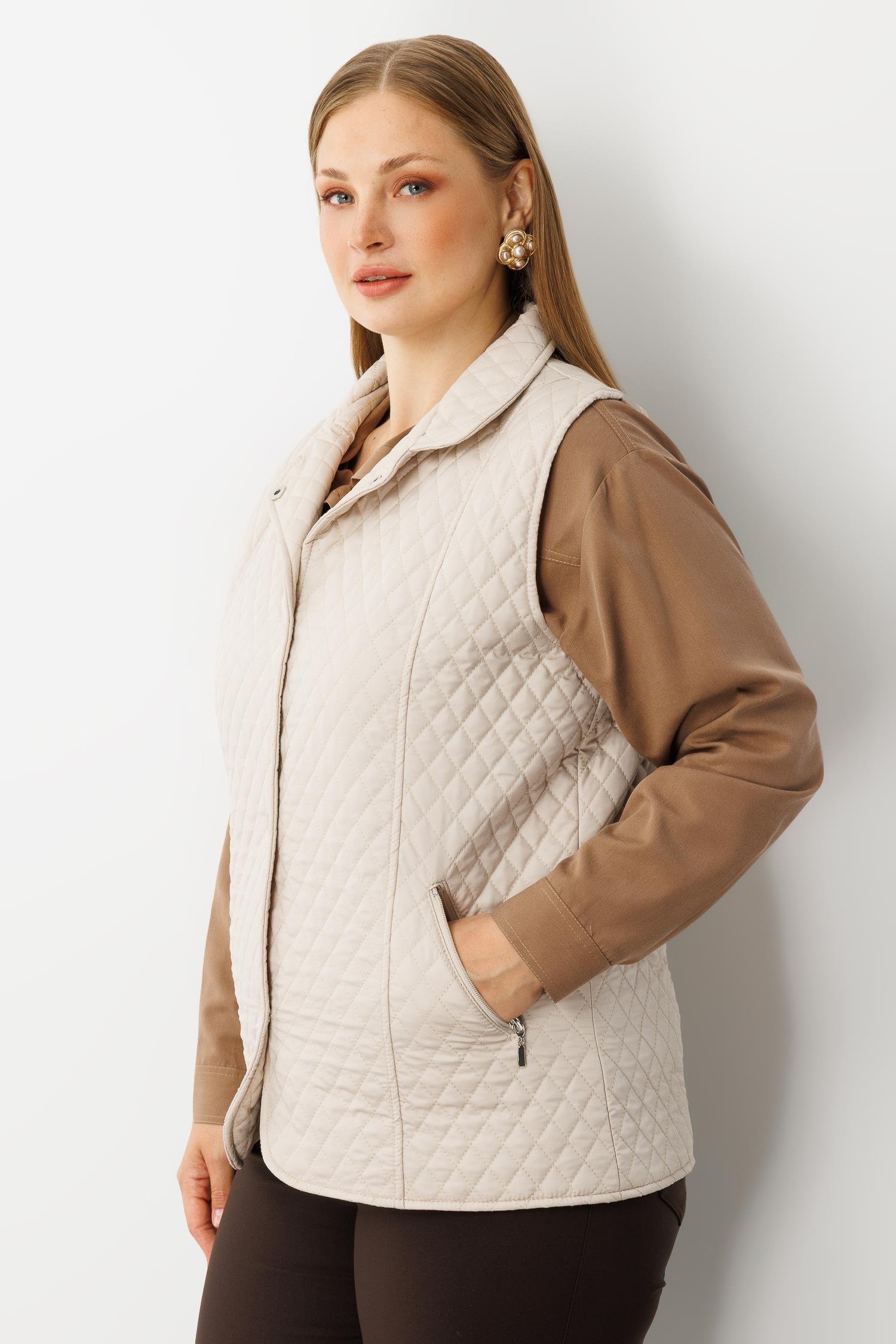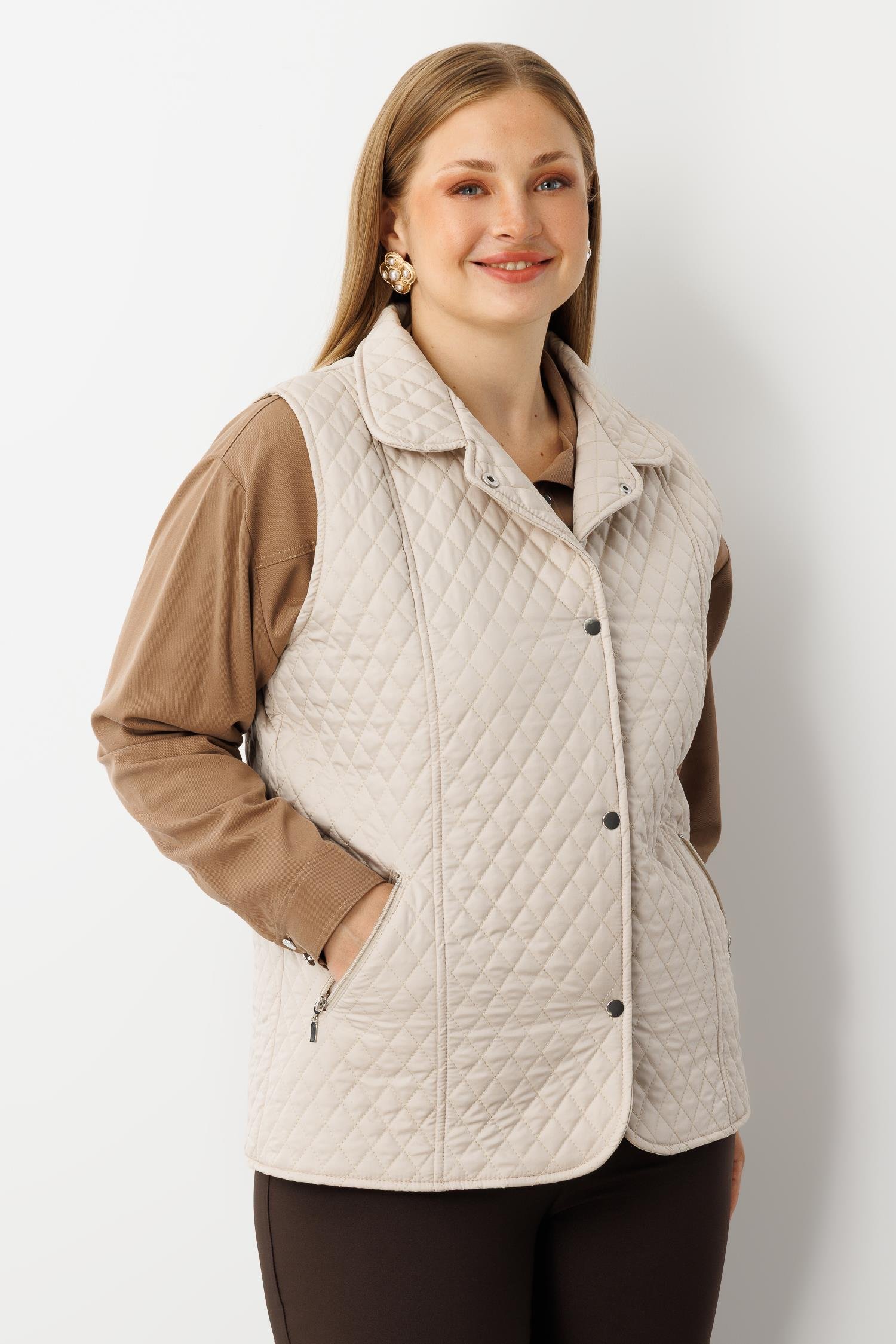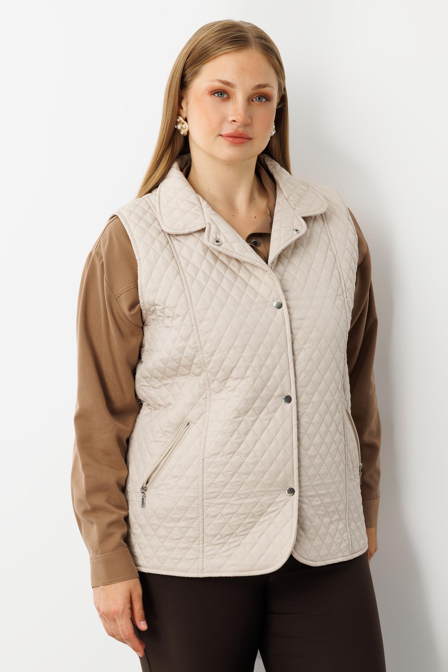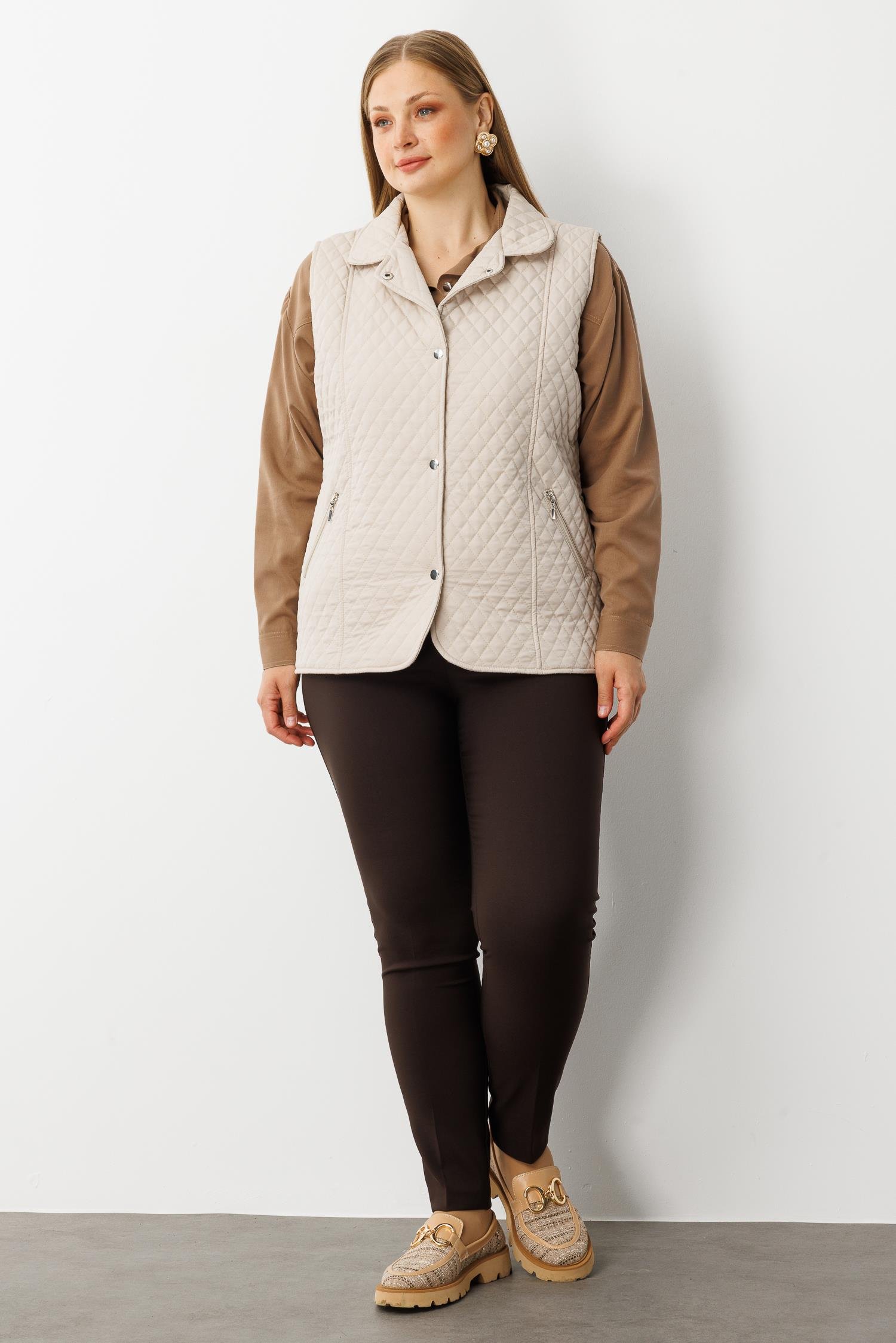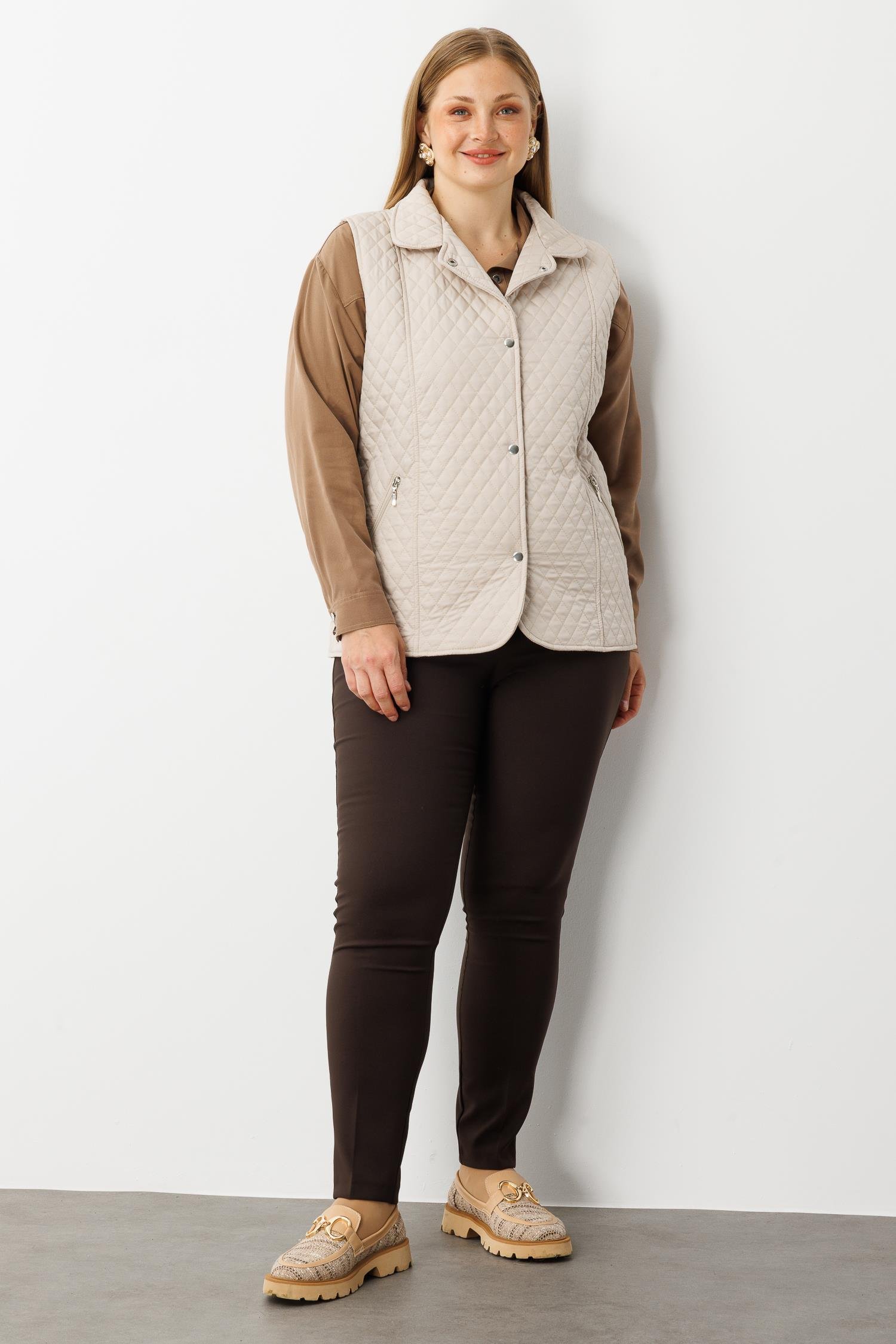 Modailgi Çıtçıt Kapamalı Ekose Desen Kapitone Yelek Taş (GLD260YLK61028-317)