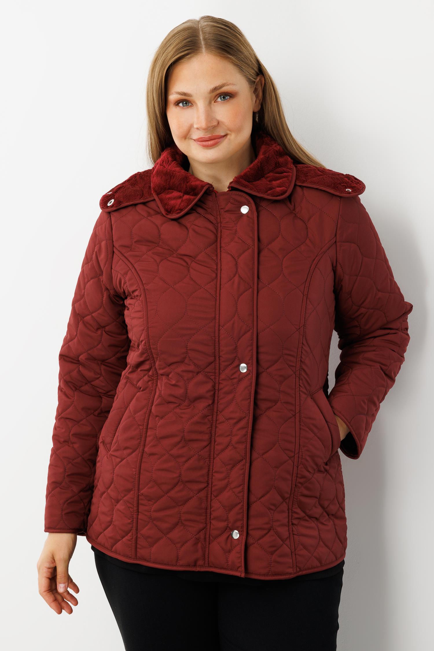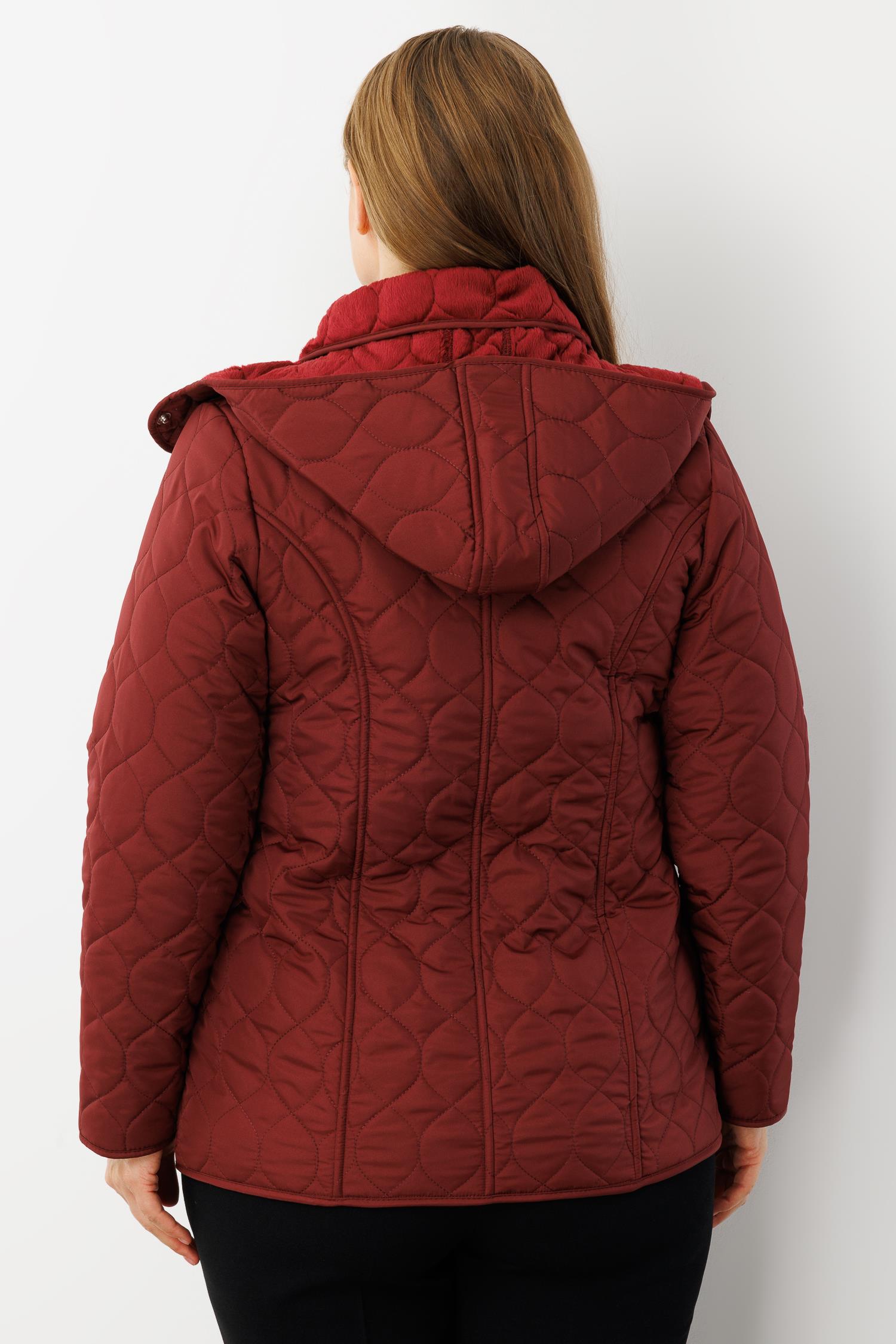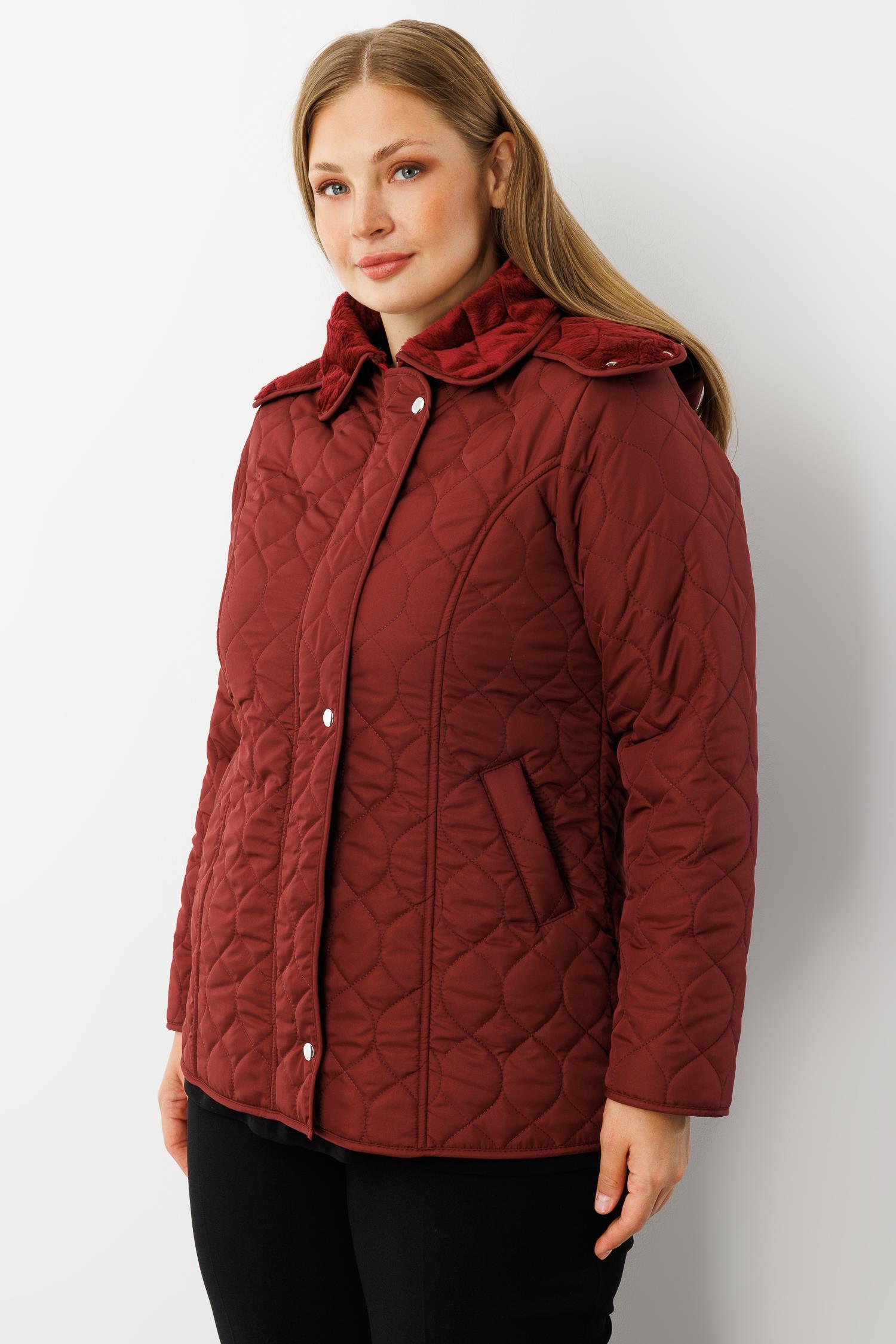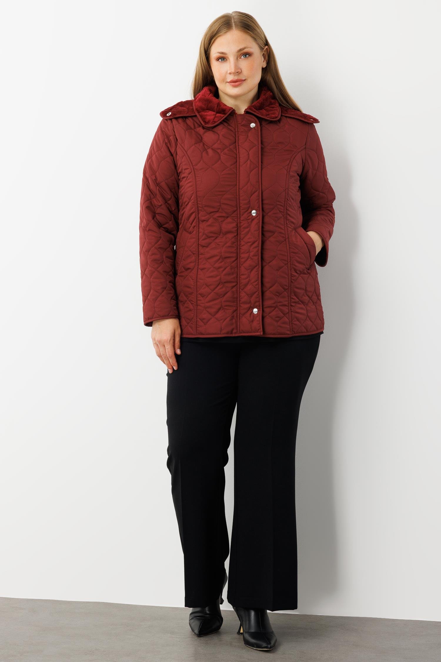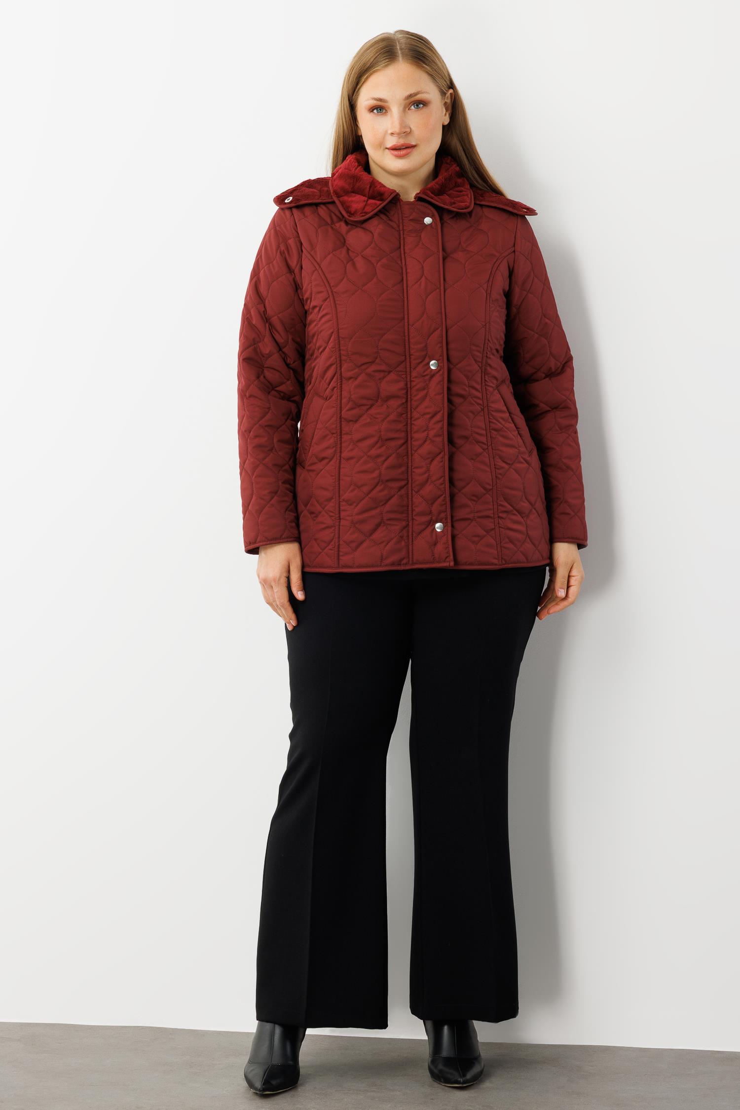 Modailgi Çıtçıtlı Fermuarlı Soğan Desenli Kapüşonlu Kısa Kapitone Kaban Bordo (GLD260KBN71014-041)