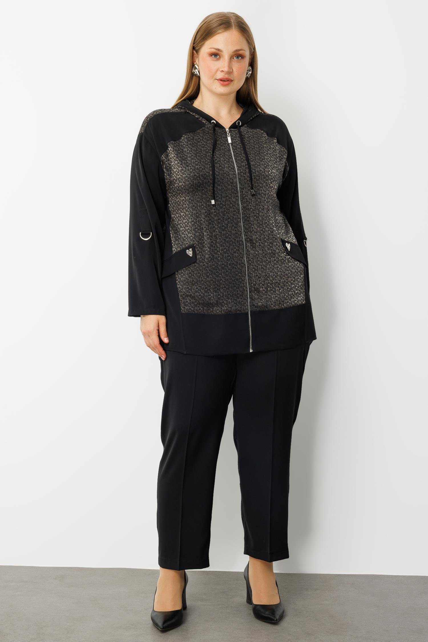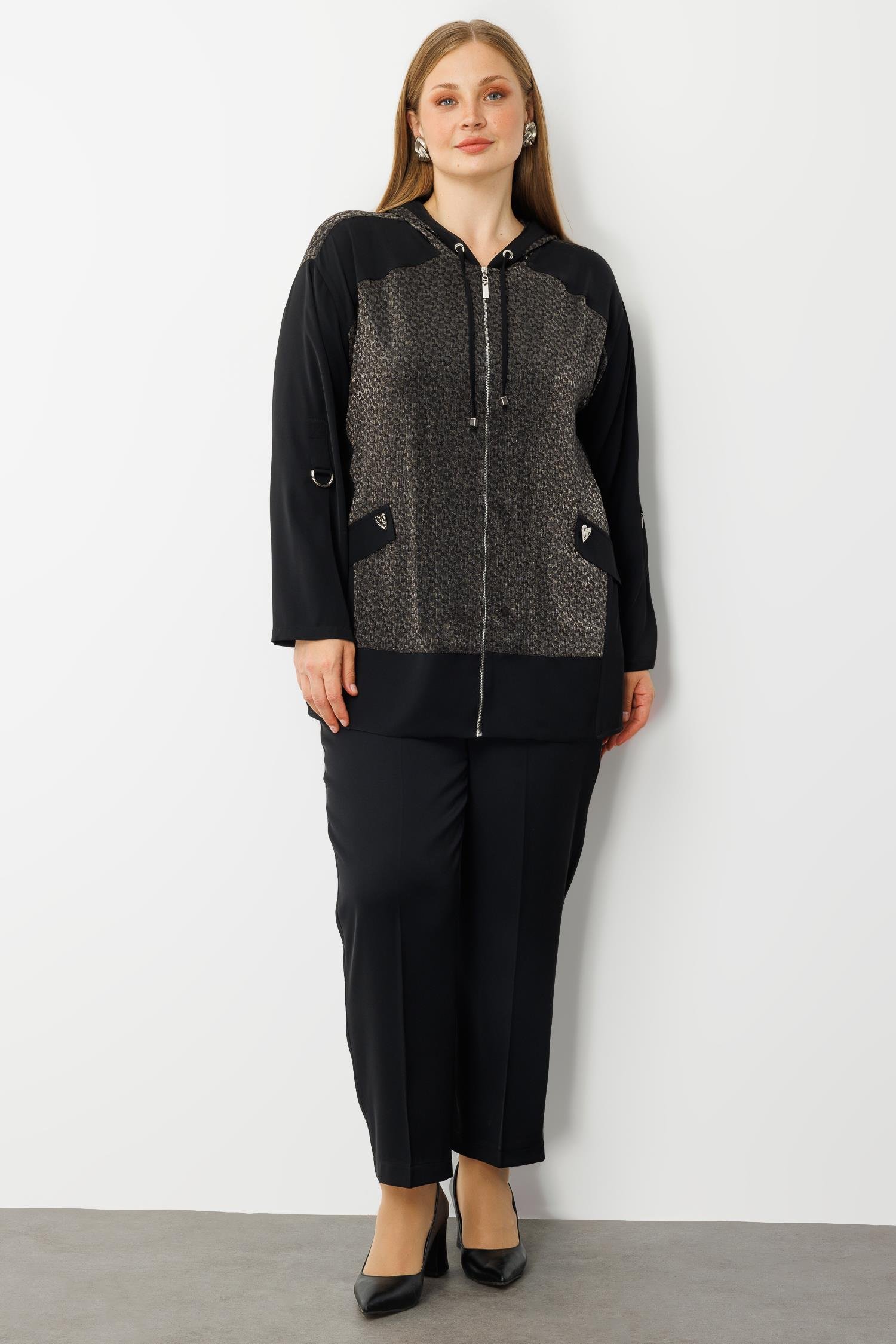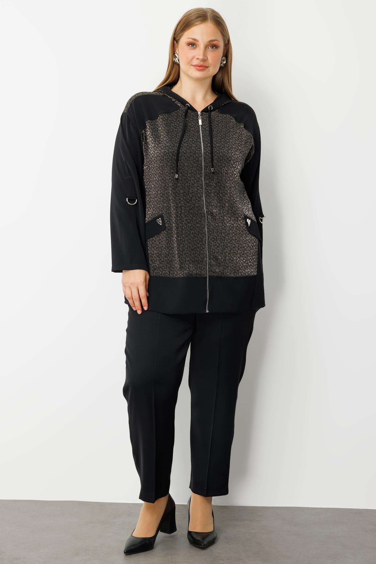 Modailgi  Kapişonlu Cepte Kalpli Düğme Detaylı Tunik Siyah