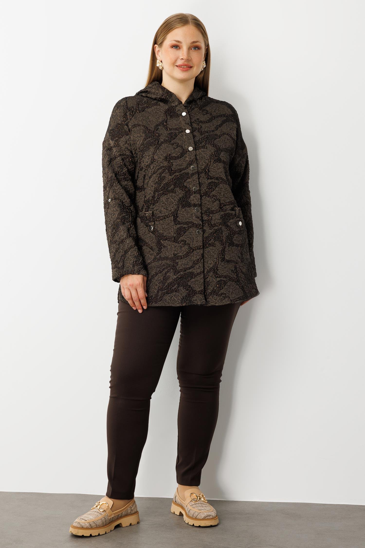 Modailgi Kapüşonlu Jakar Tunik Kahve (GLD250TNK04305-122)