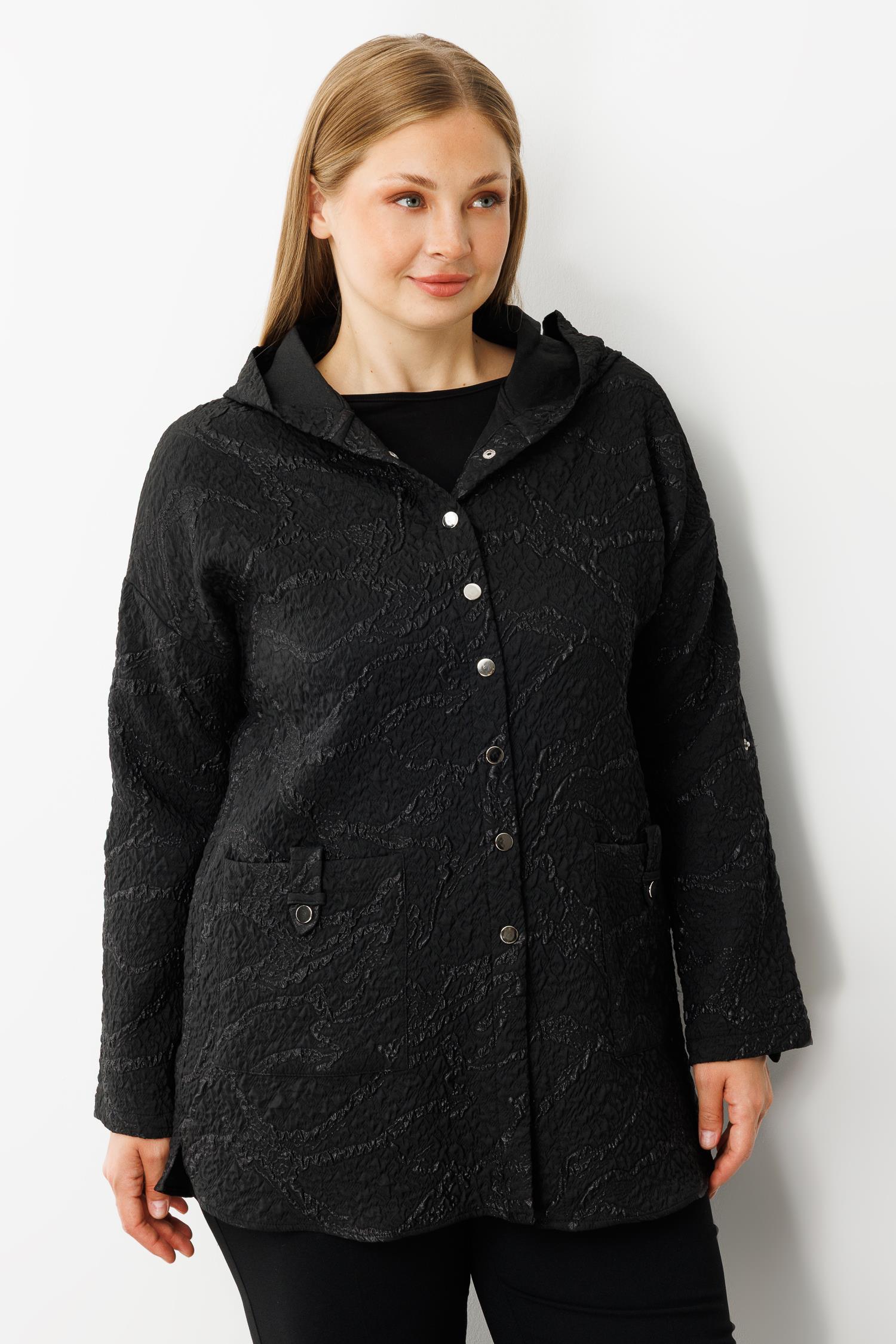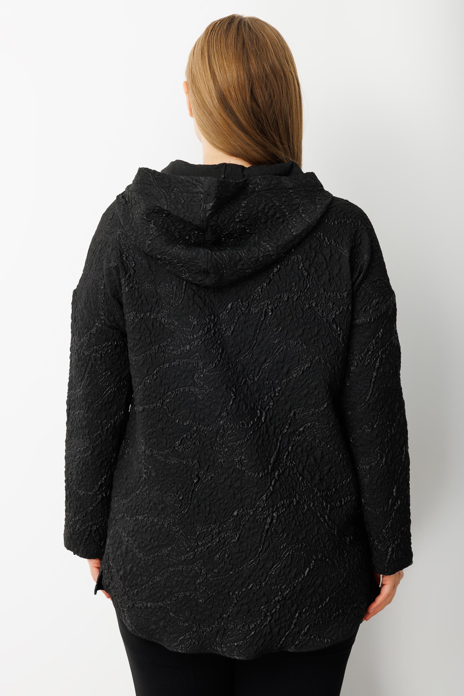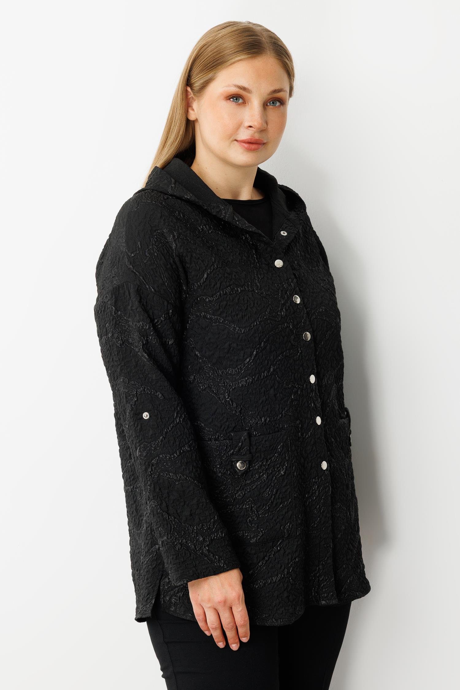 • Model: Kapüşonlu, düz kesim, rahat ve modern tunik formu • Renk: Siyah • Kumaş: Jakarlı dokuma kumaş, hafif parlak doku • Detaylar: • Önde metal düğmeli kapama • İki yan cep detayı • Kapüşonlu tasarım ile sportif-şık duruş • Tam astarlı yapı sayesinde konforlu kullanım • Uzun kollu ve kalça hizasında biten form • Gün boyu şıklık ve rahatlığı bir araya getirir