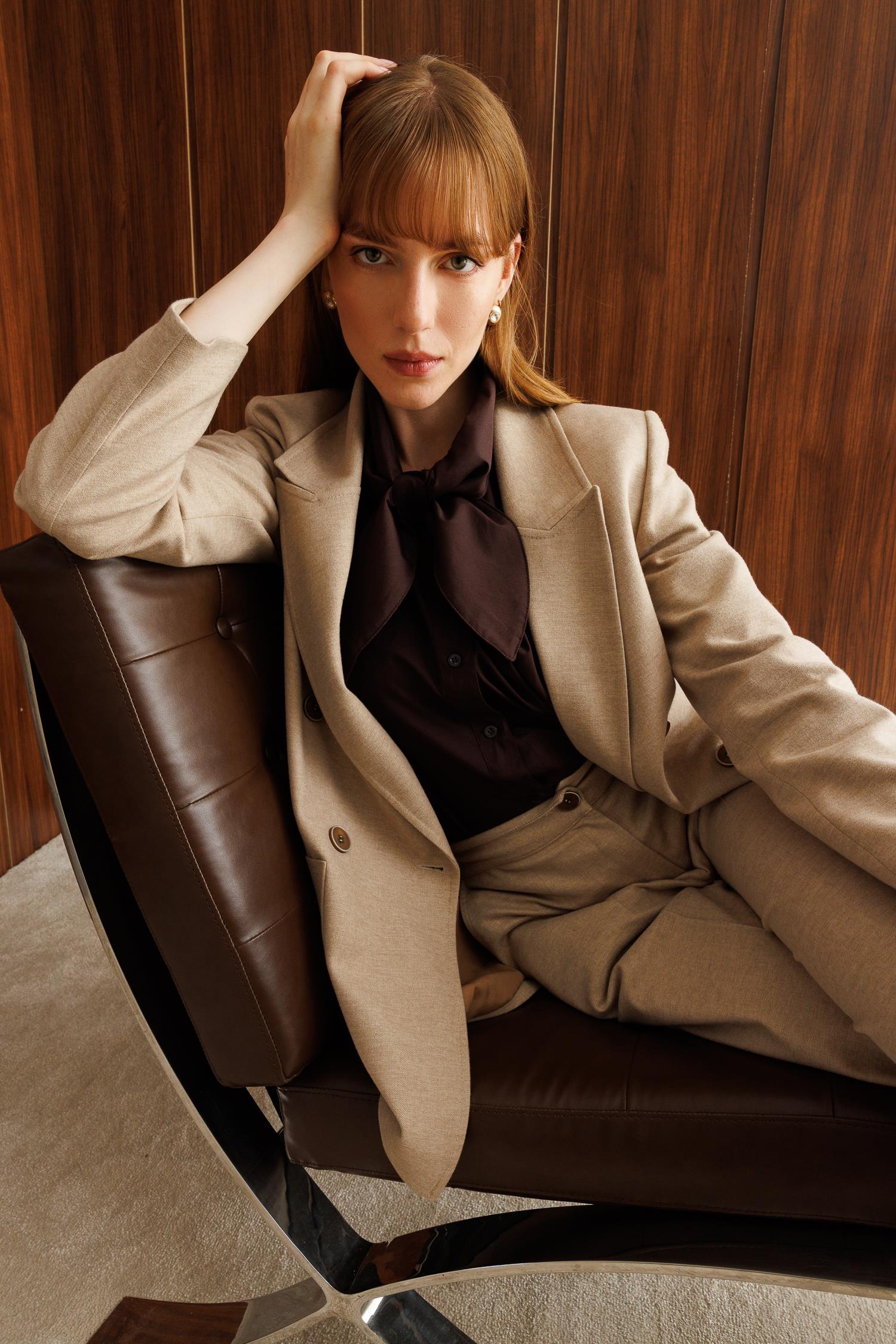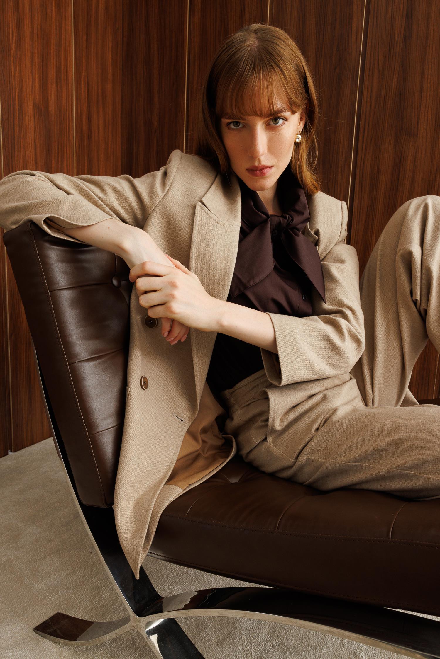 Modailgi’nin yalın ama etkileyici tasarım anlayışını temsil eden bu ceket, klasik ceket formuna konforlu bir dokunuş katıyor. Vizonun doğal tonlarıyla zamansız bir zarafet sunarken, modern kadının şehirli ve sade tarzına mükemmel uyum sağlıyor. Gücünü detaylardaki sadelikten alan bu parça, hem profesyonel ortamlarda hem gündelik hayatta fark yaratmak isteyen kadınlar için tasarlandı.