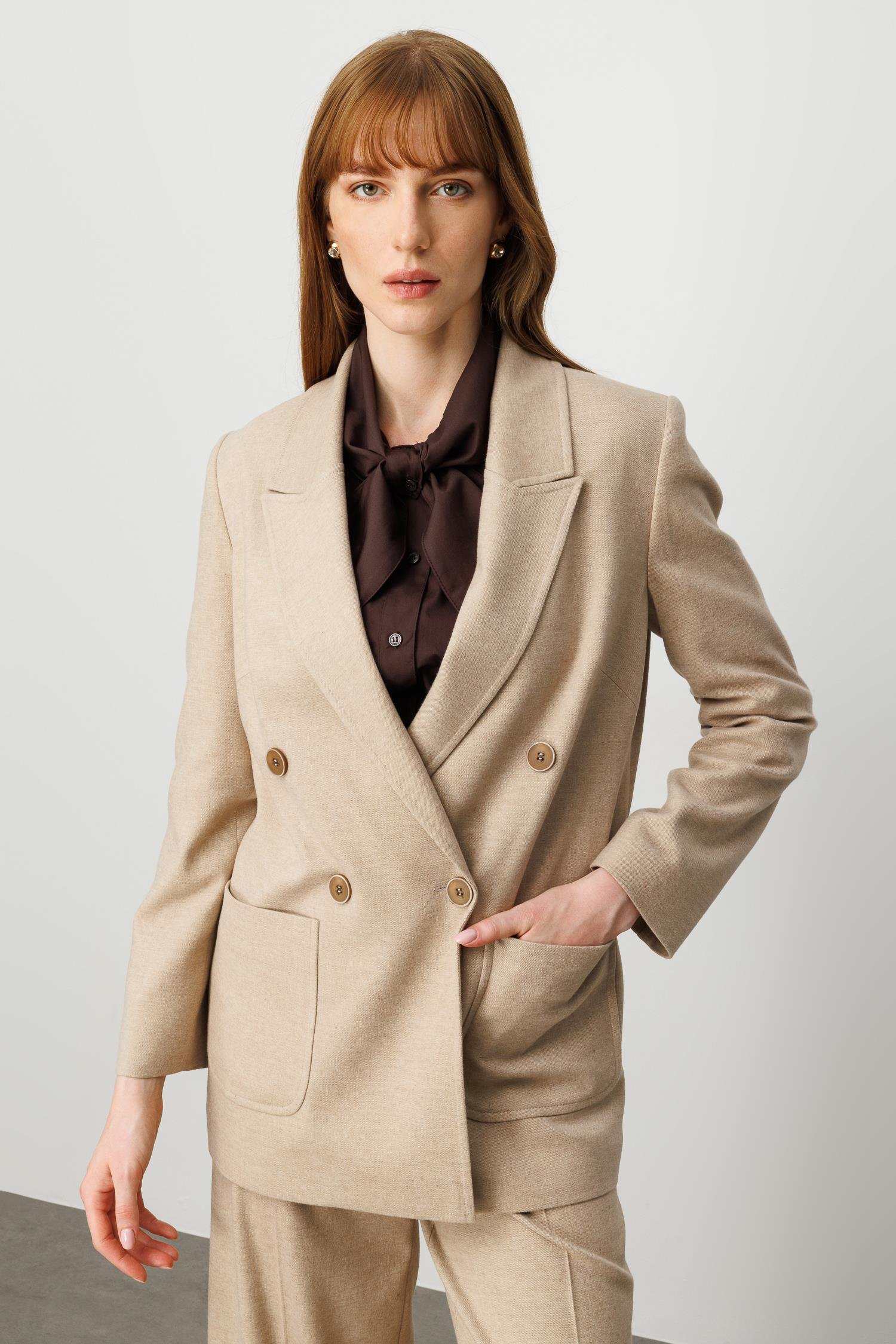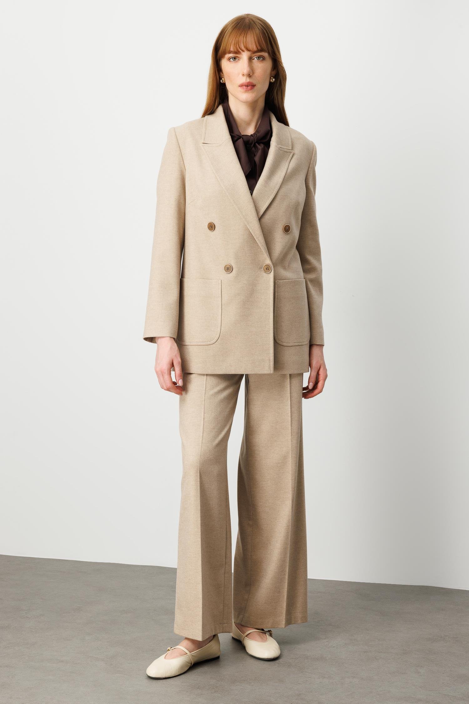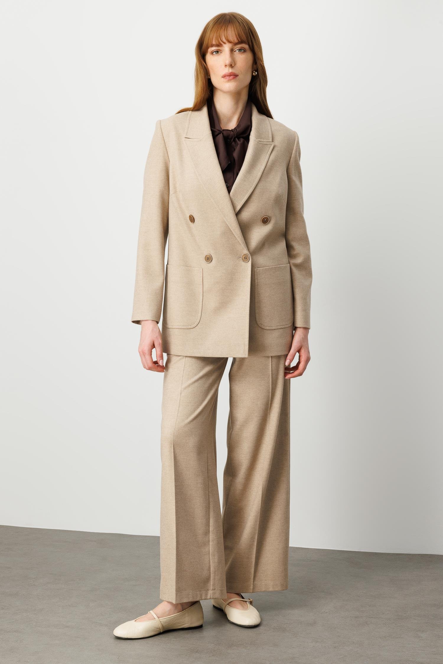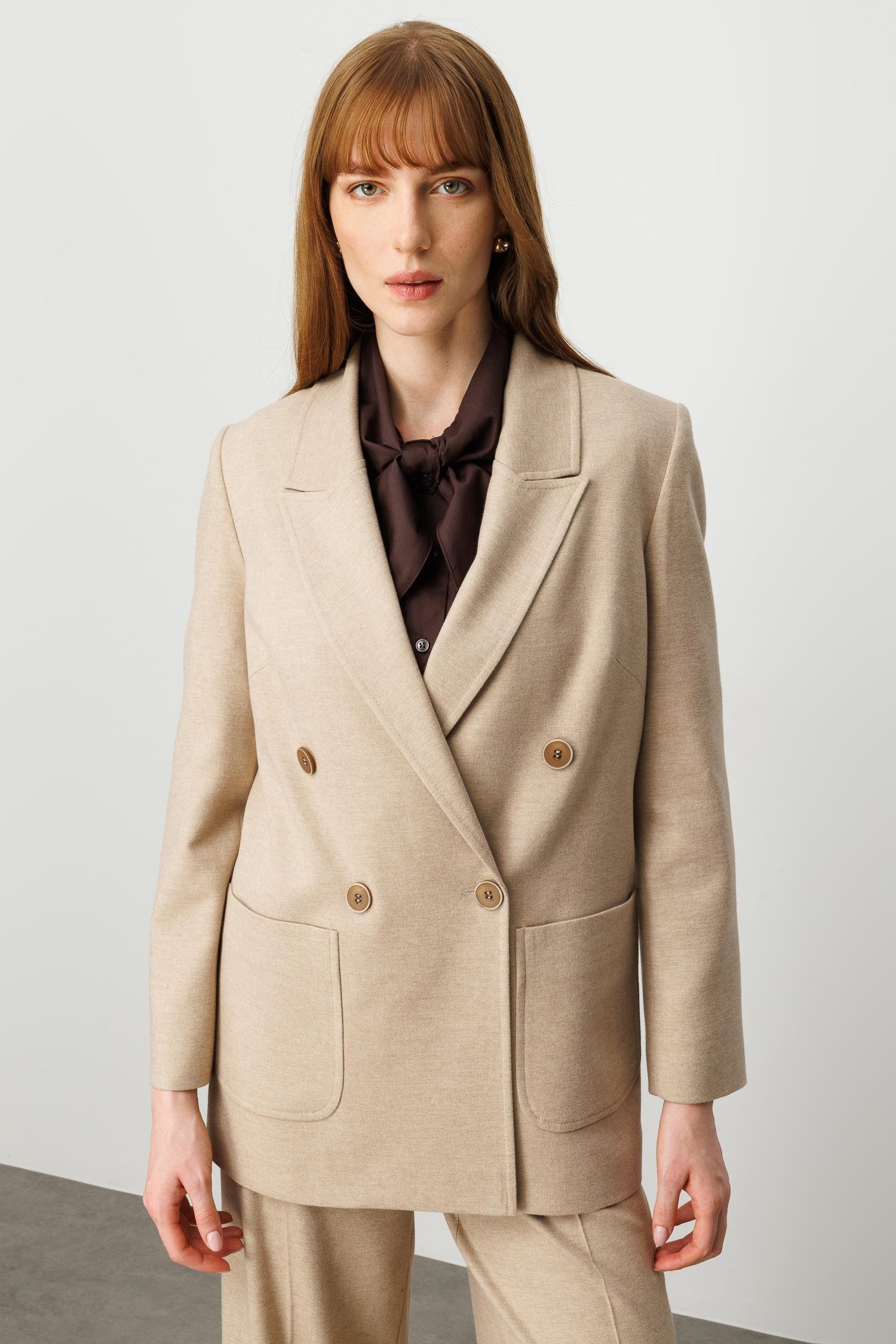 Modailgi Kırlangıç Yaka Kruvaze Kapama Torba Cepli Rahat Kesim Ceket - Vizon