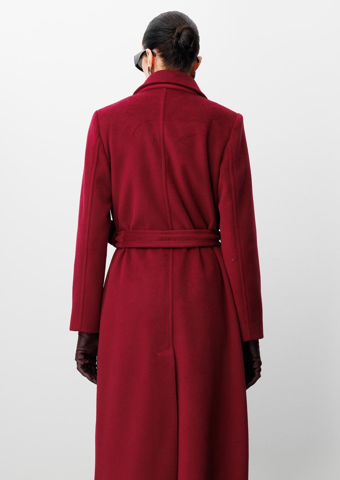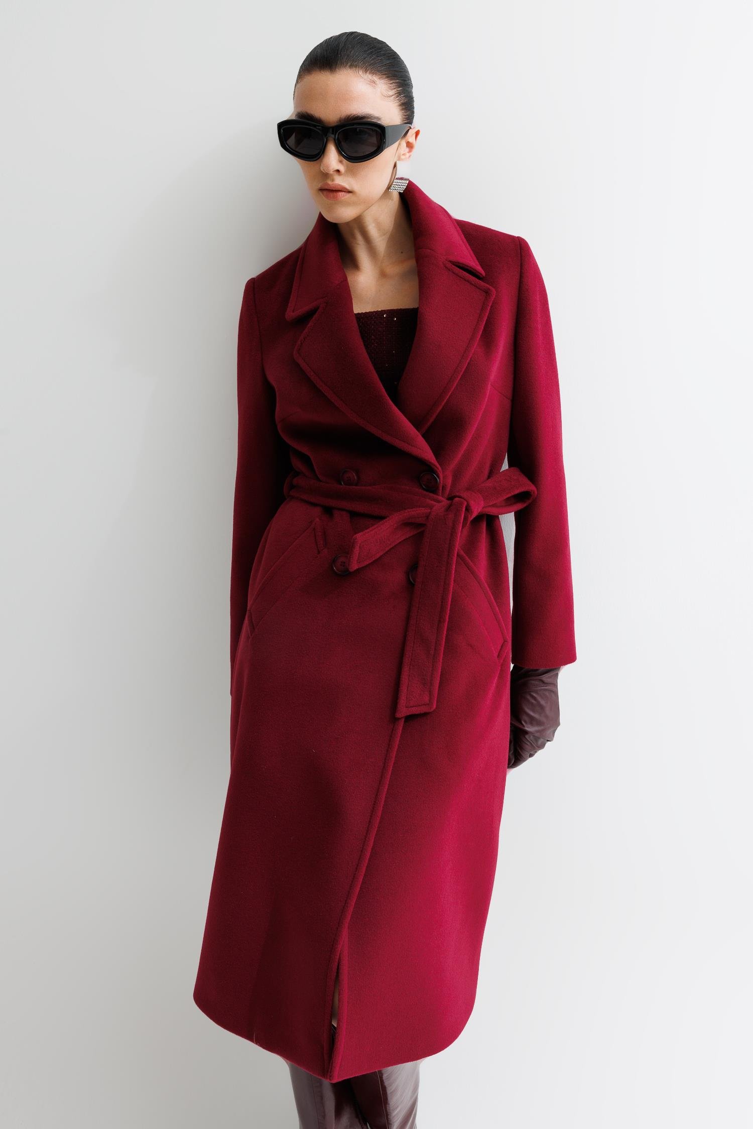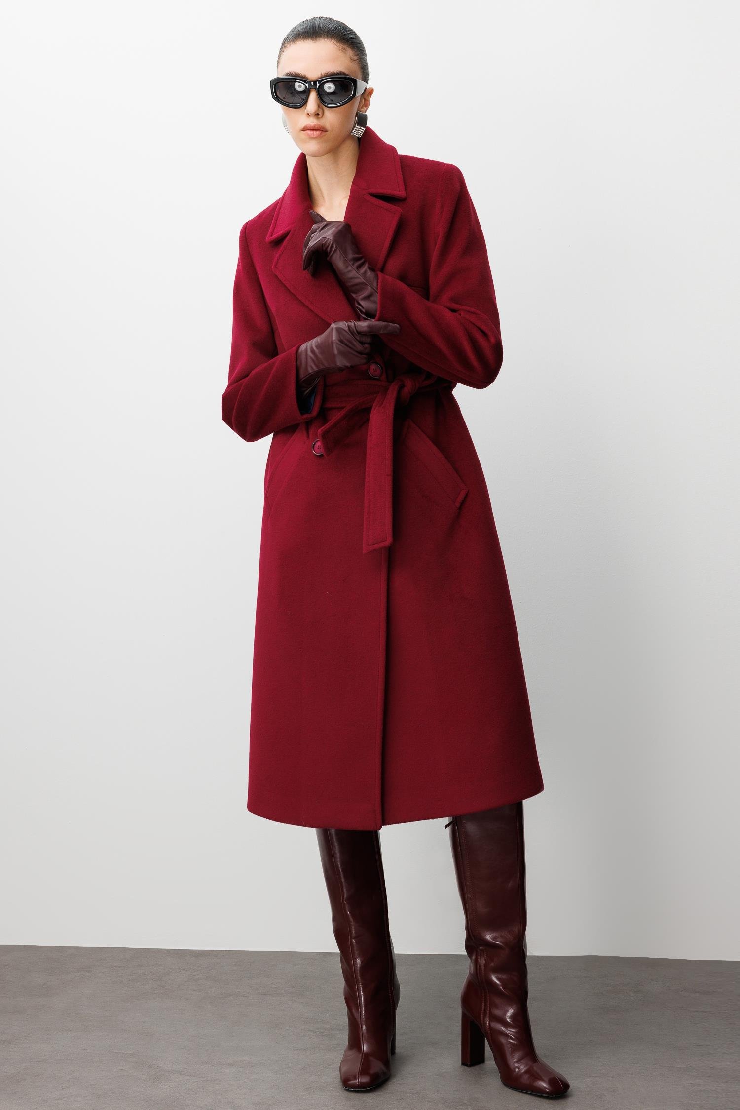 Modailgi Kuşaklı Kruvaze Dört Düğmeli Kaban - Bordo