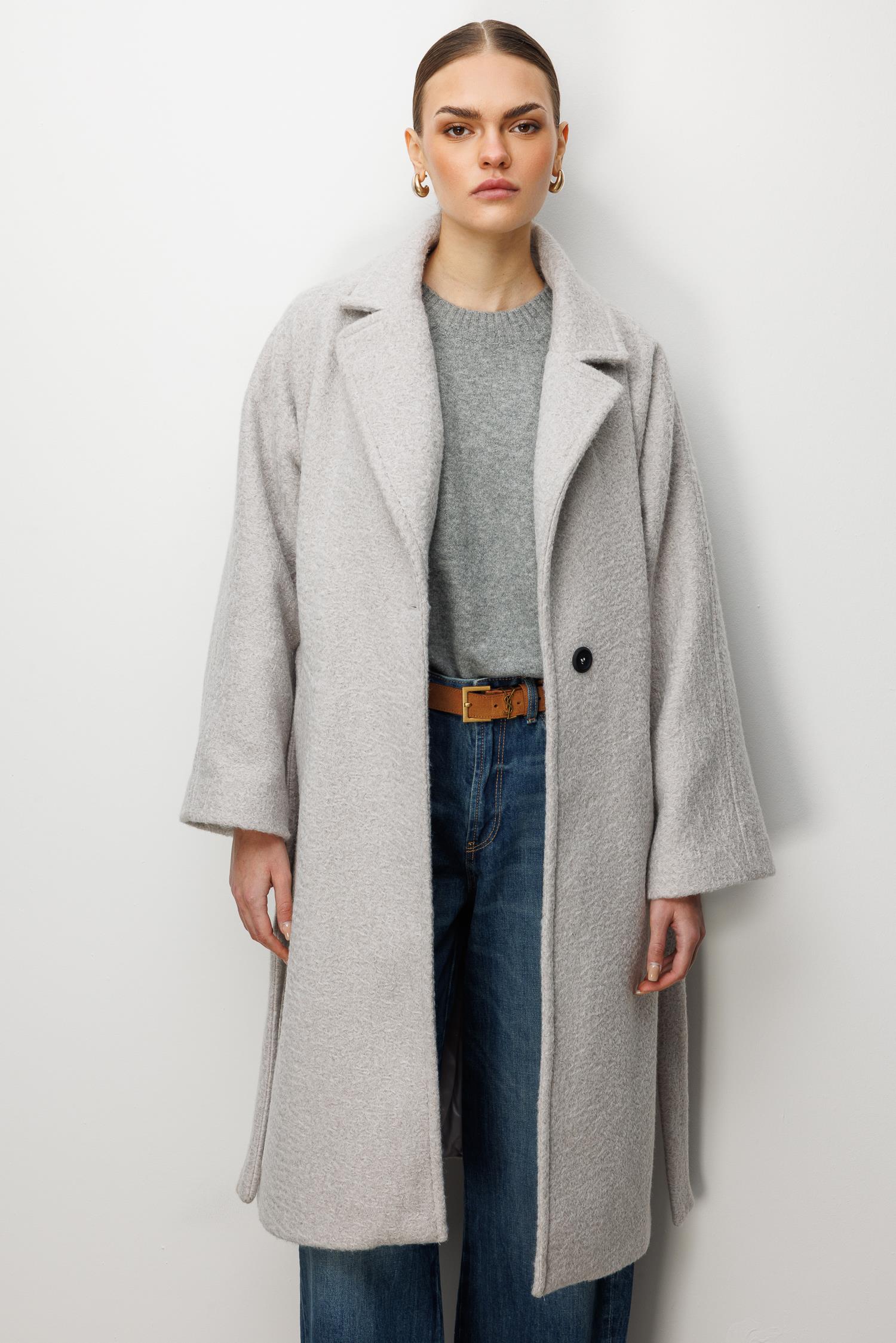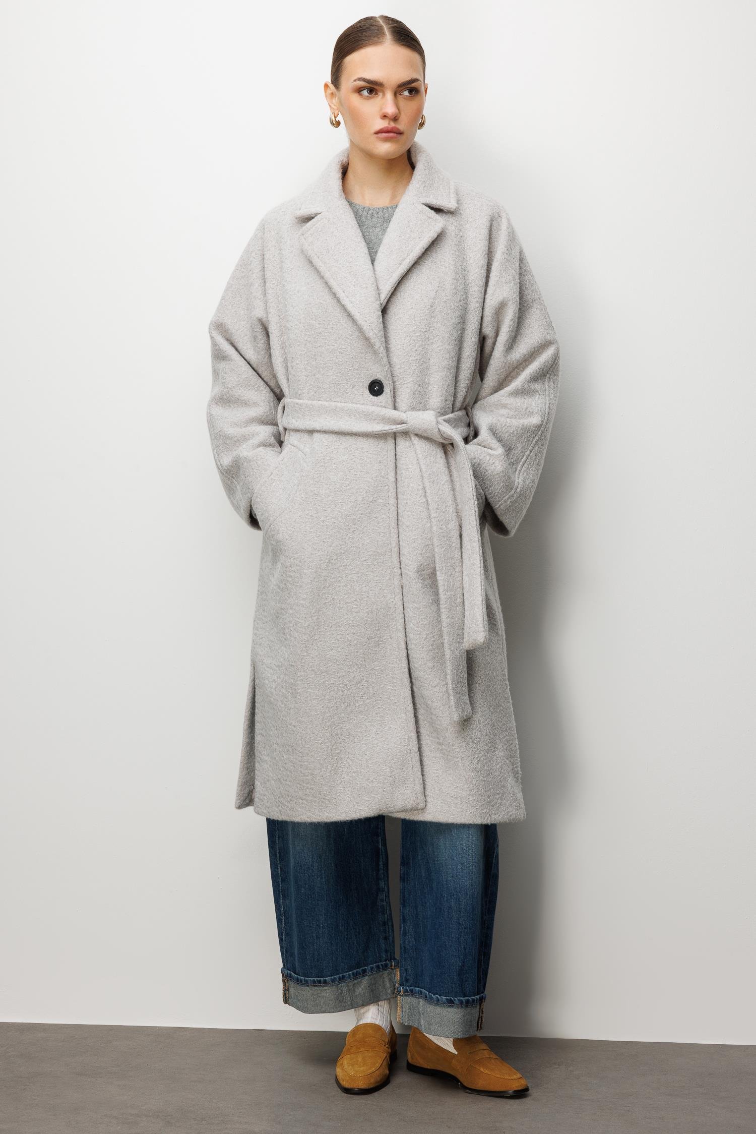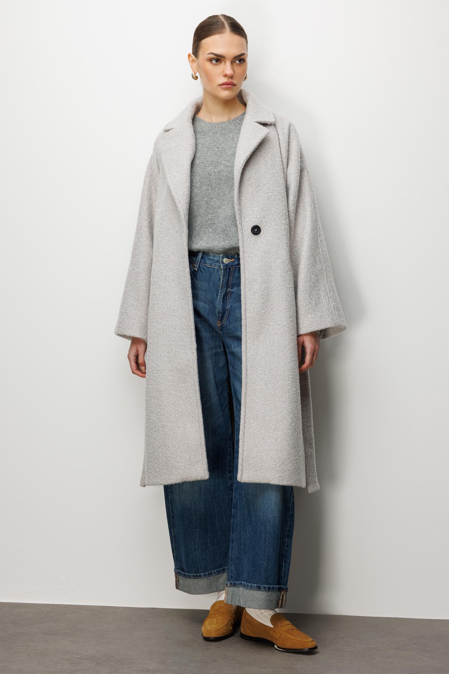 Model: Modern silüeti klasik terzilikle buluşturan, düşük omuzlu ve rahat kesimli kaşe kaban.