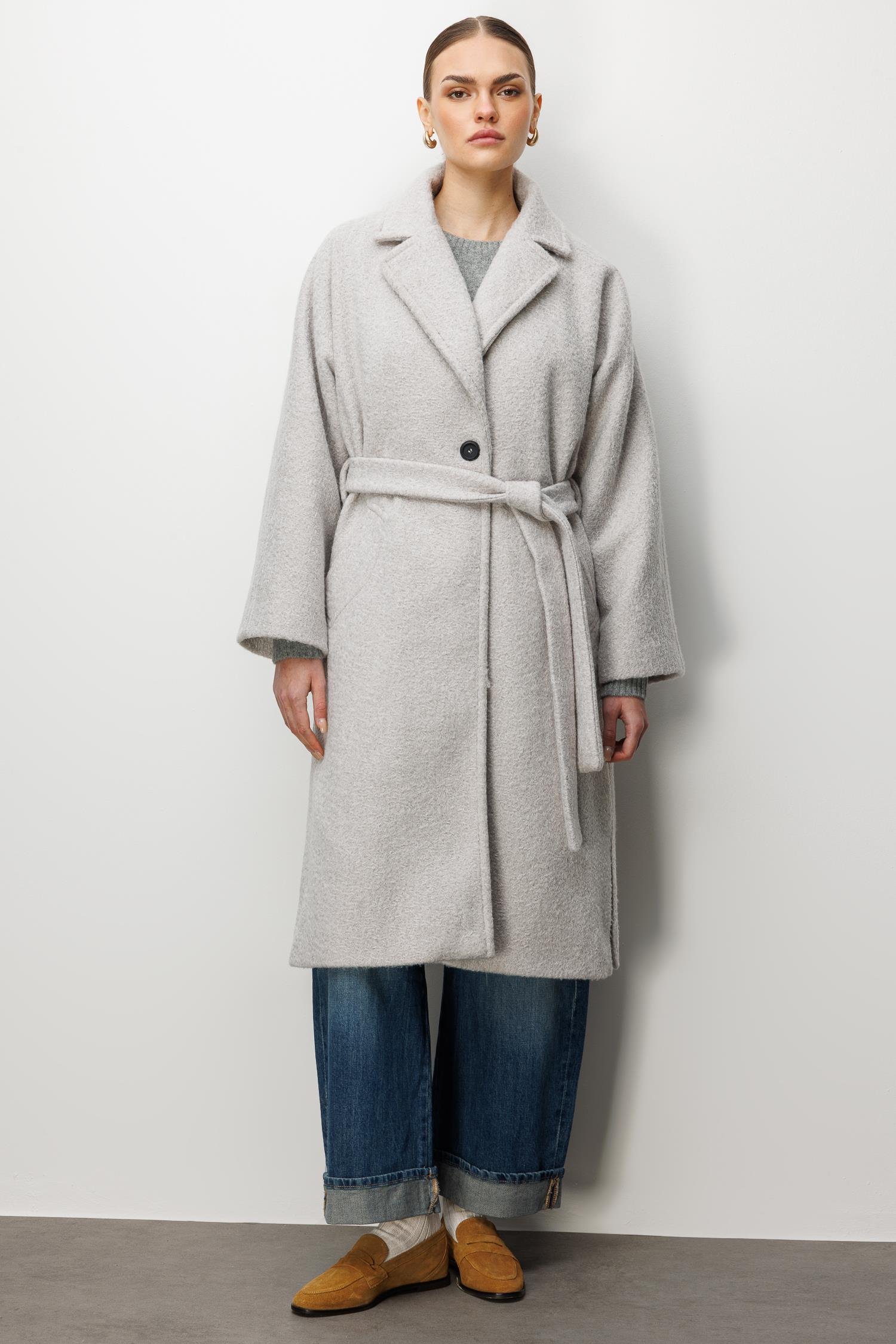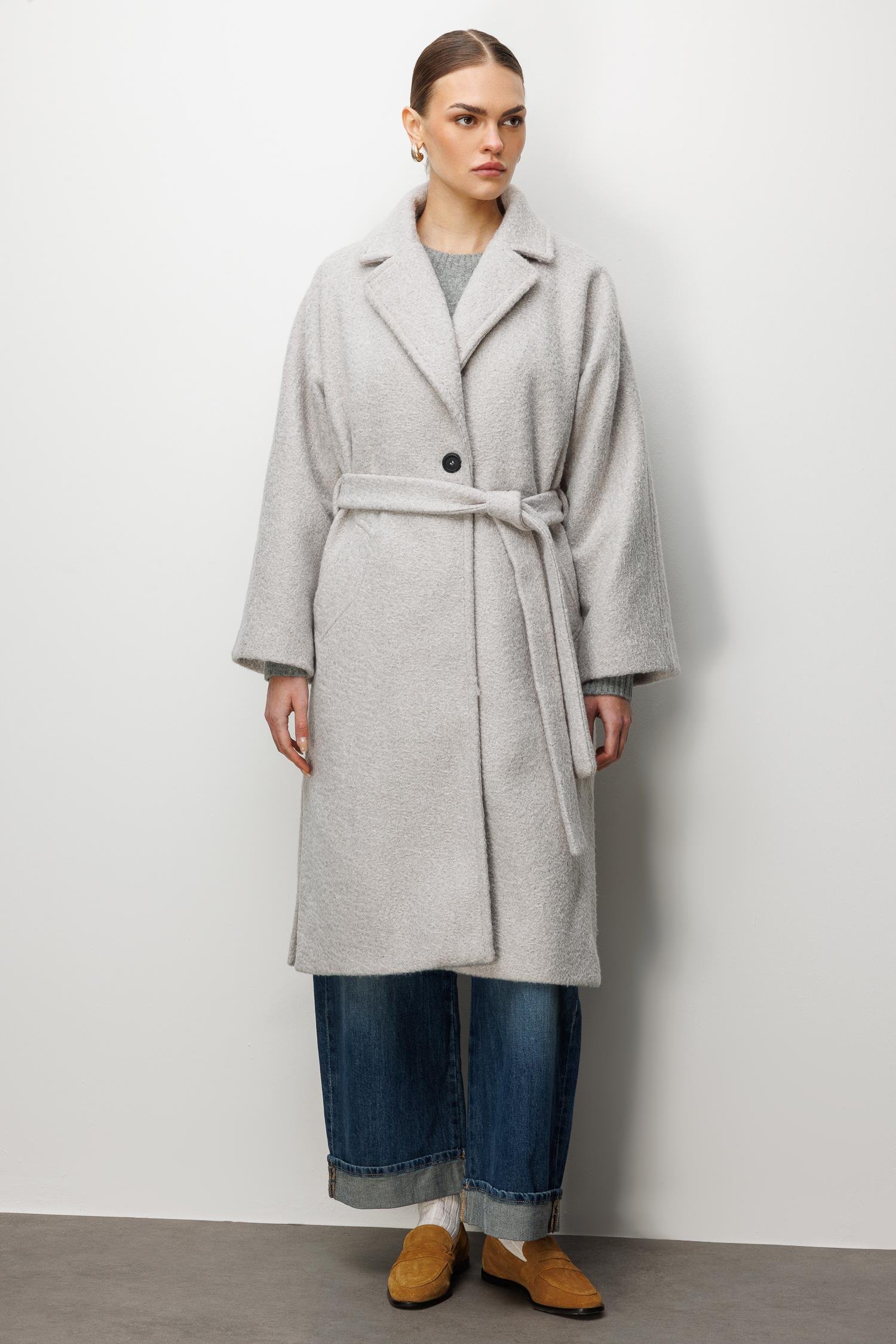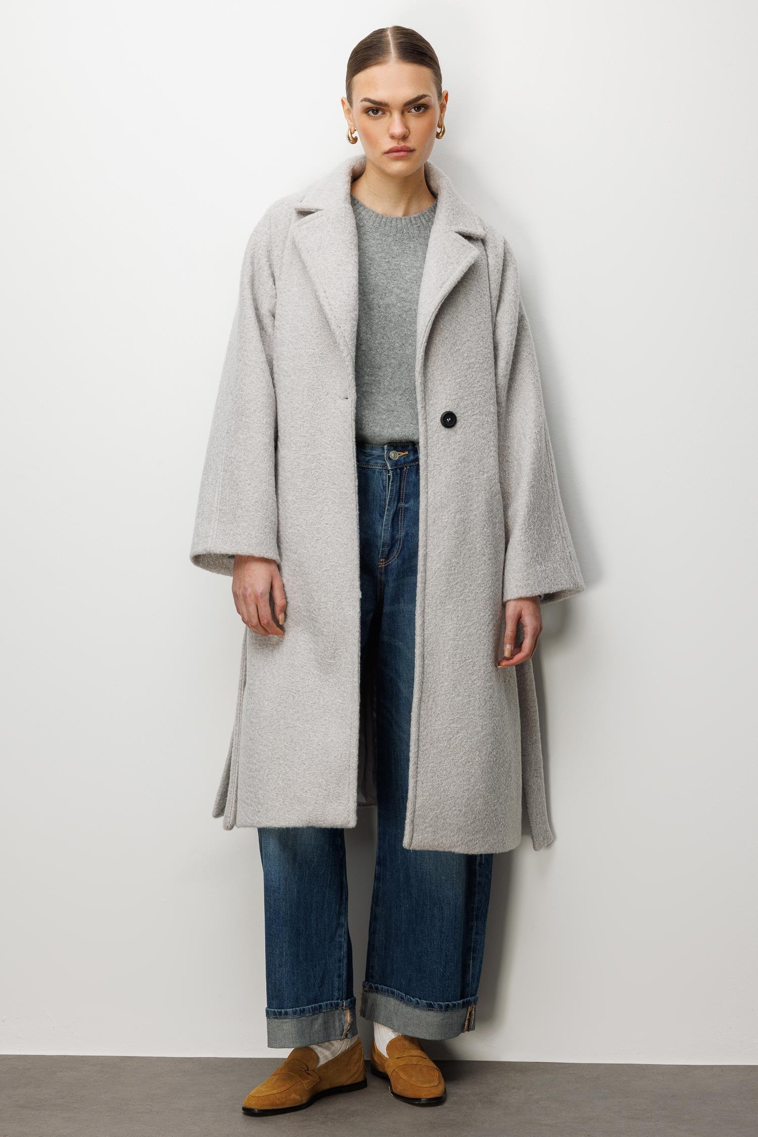 Model: Modern silüeti klasik terzilikle buluşturan, düşük omuzlu ve rahat kesimli kaşe kaban.