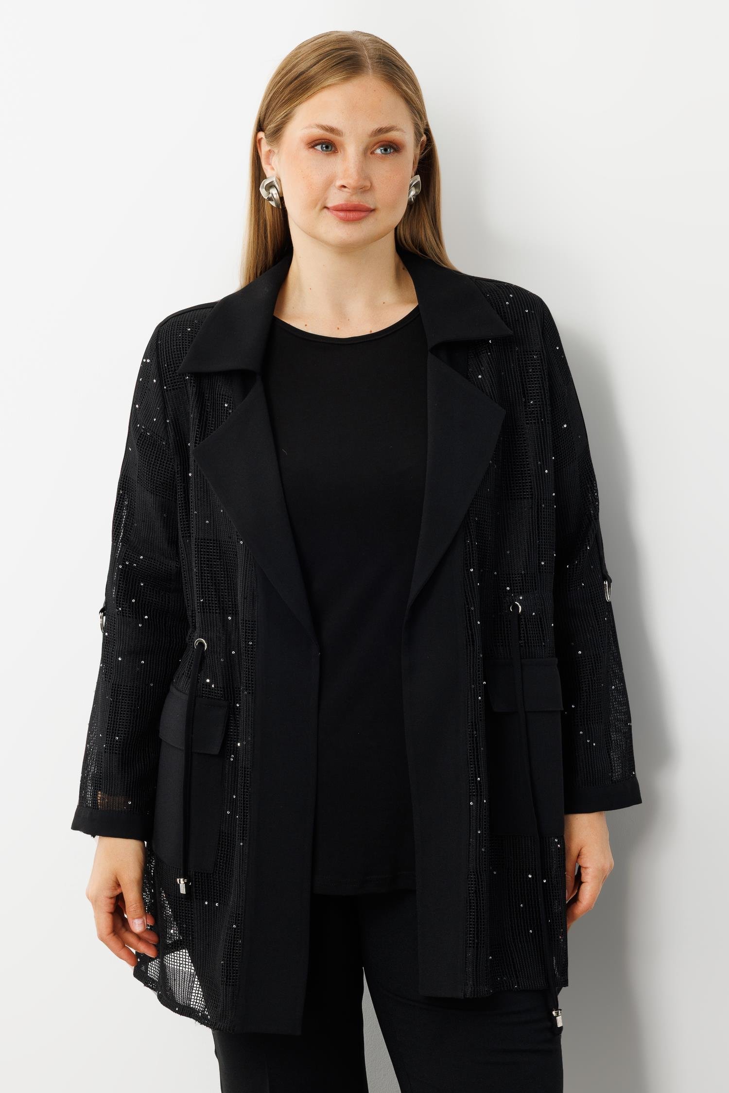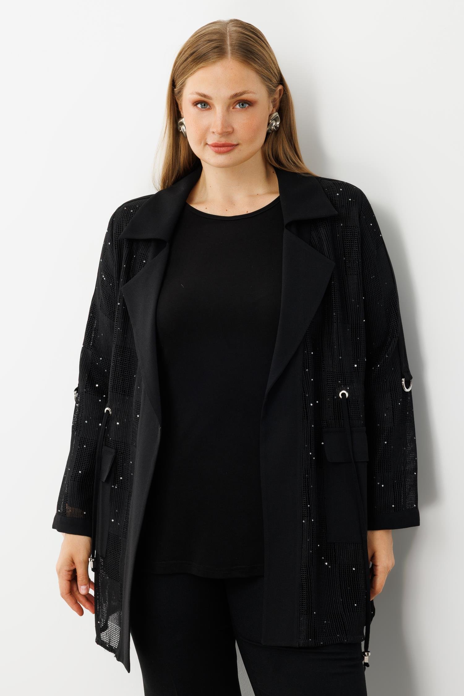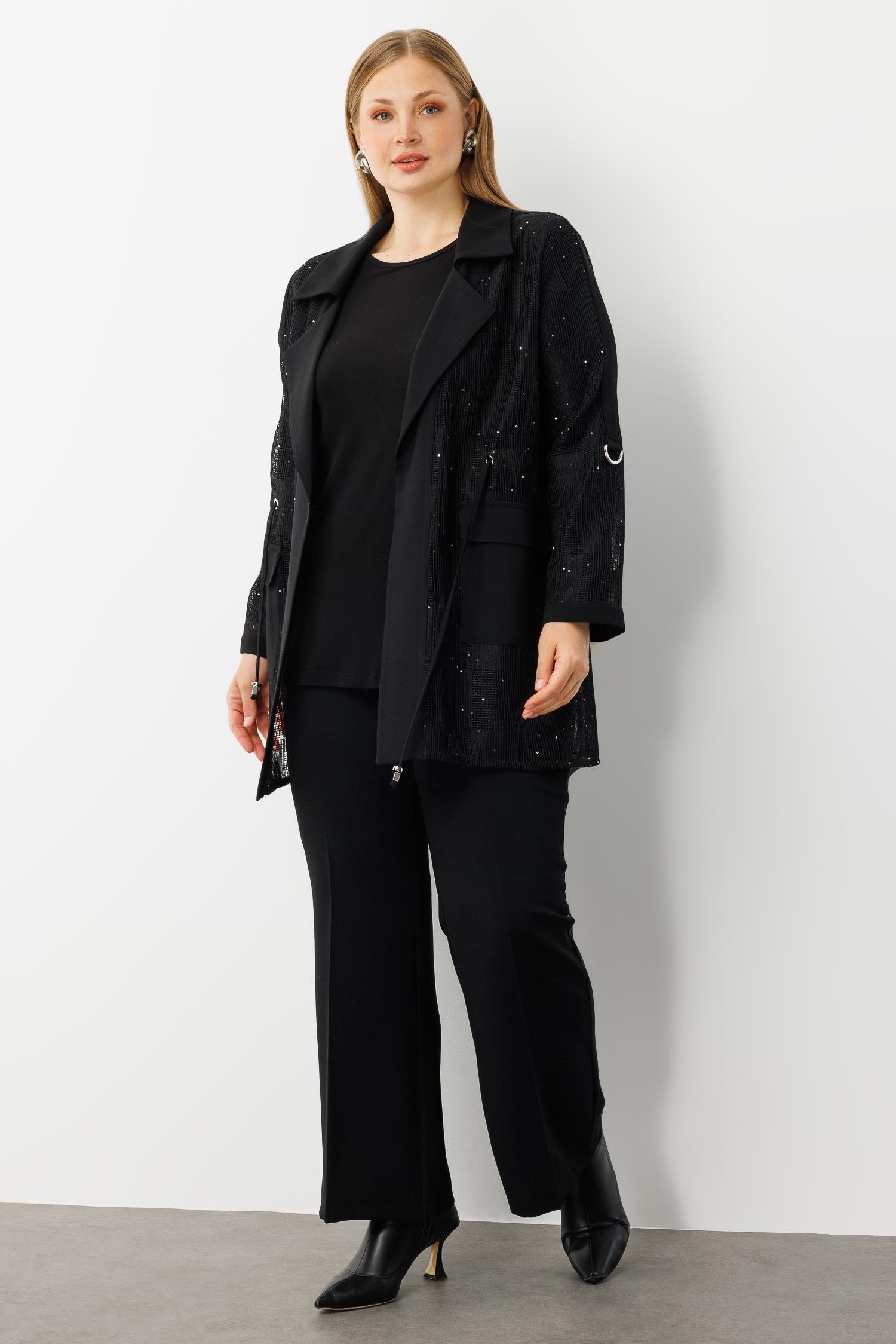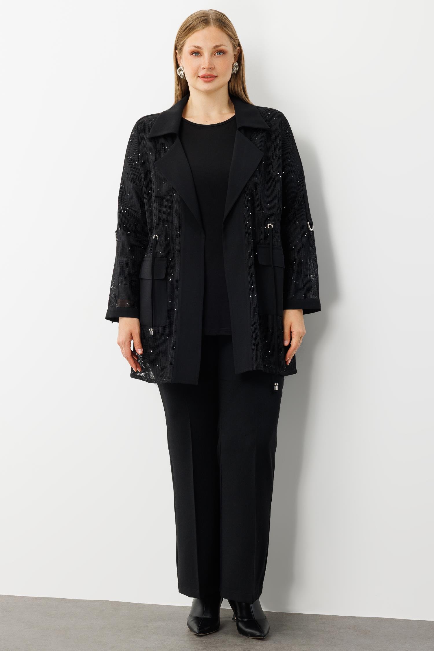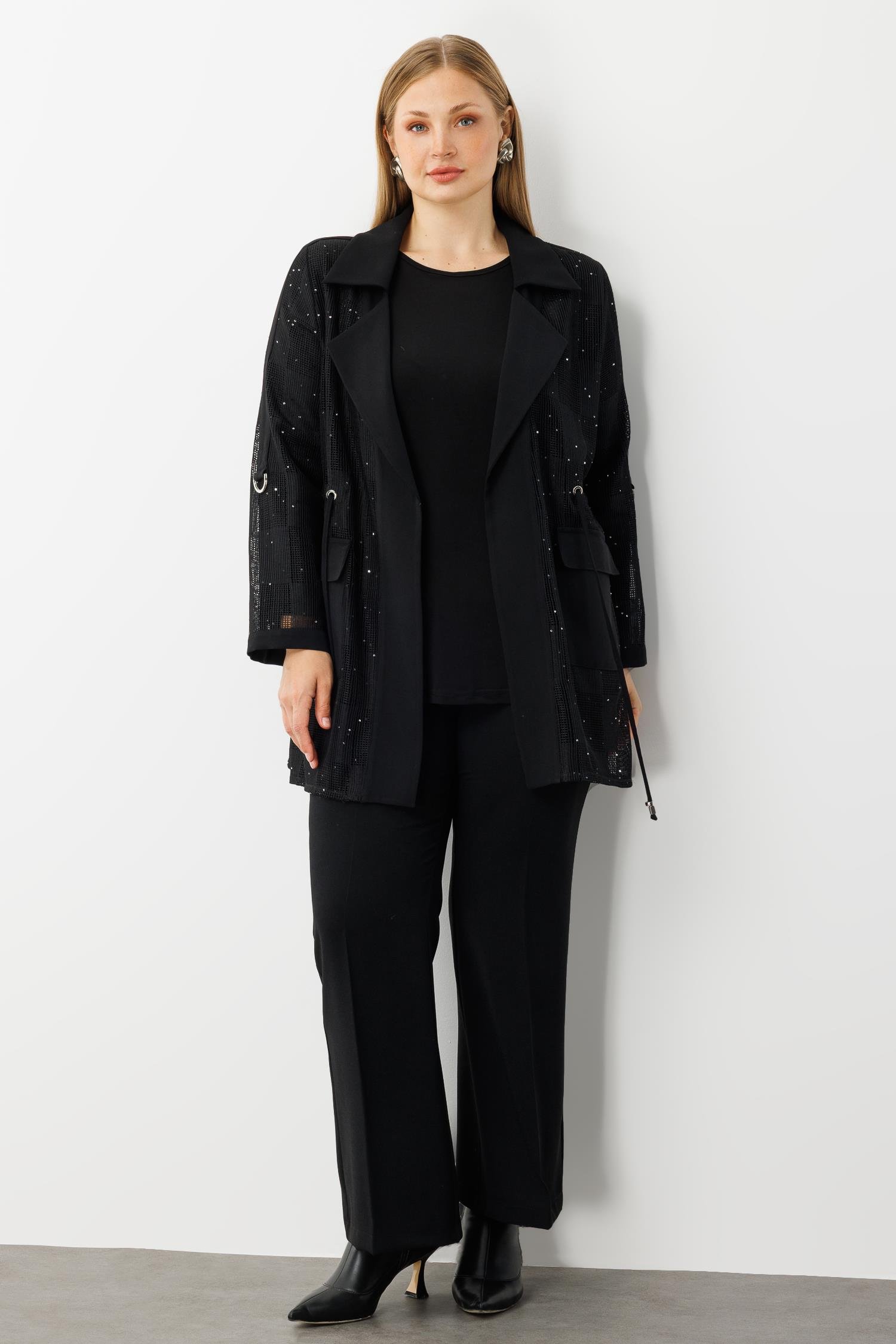 Modailgi Mono Yaka Pullu File Beli Büzgülü İkili Takım Siyah (GLD260TKM40306-263)