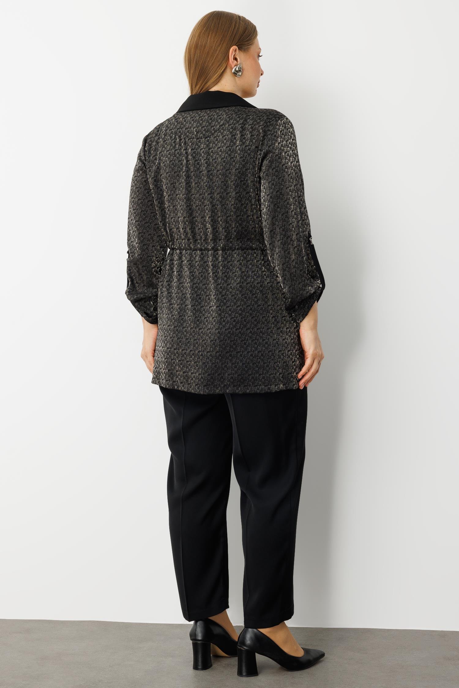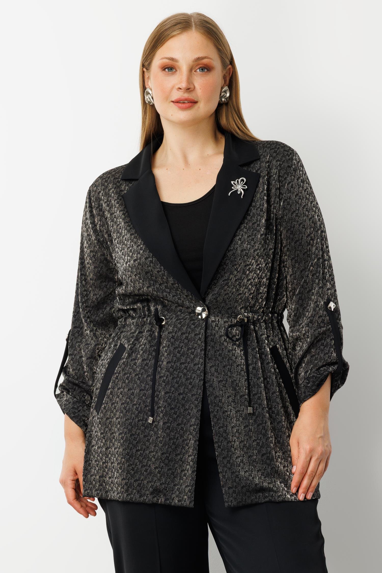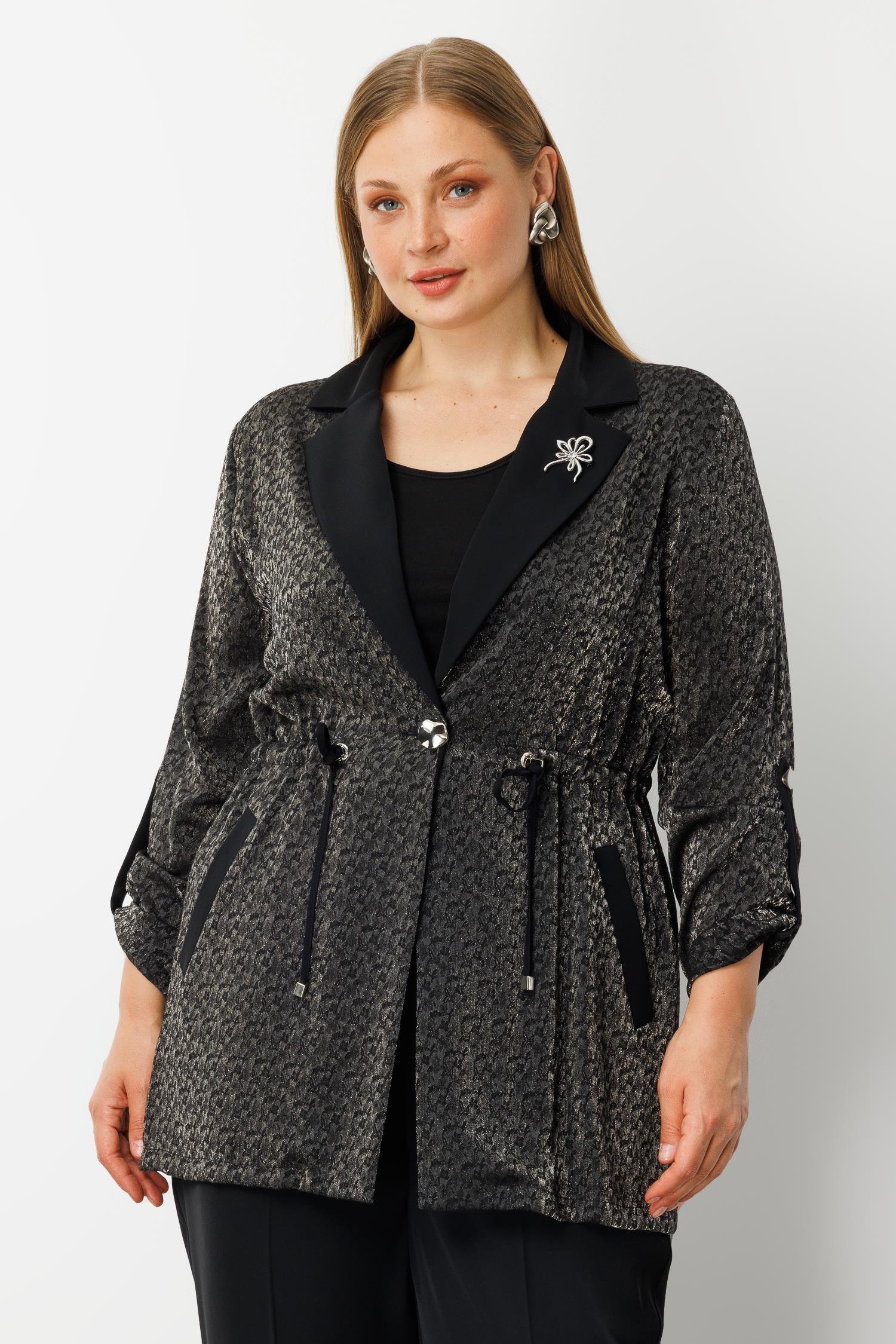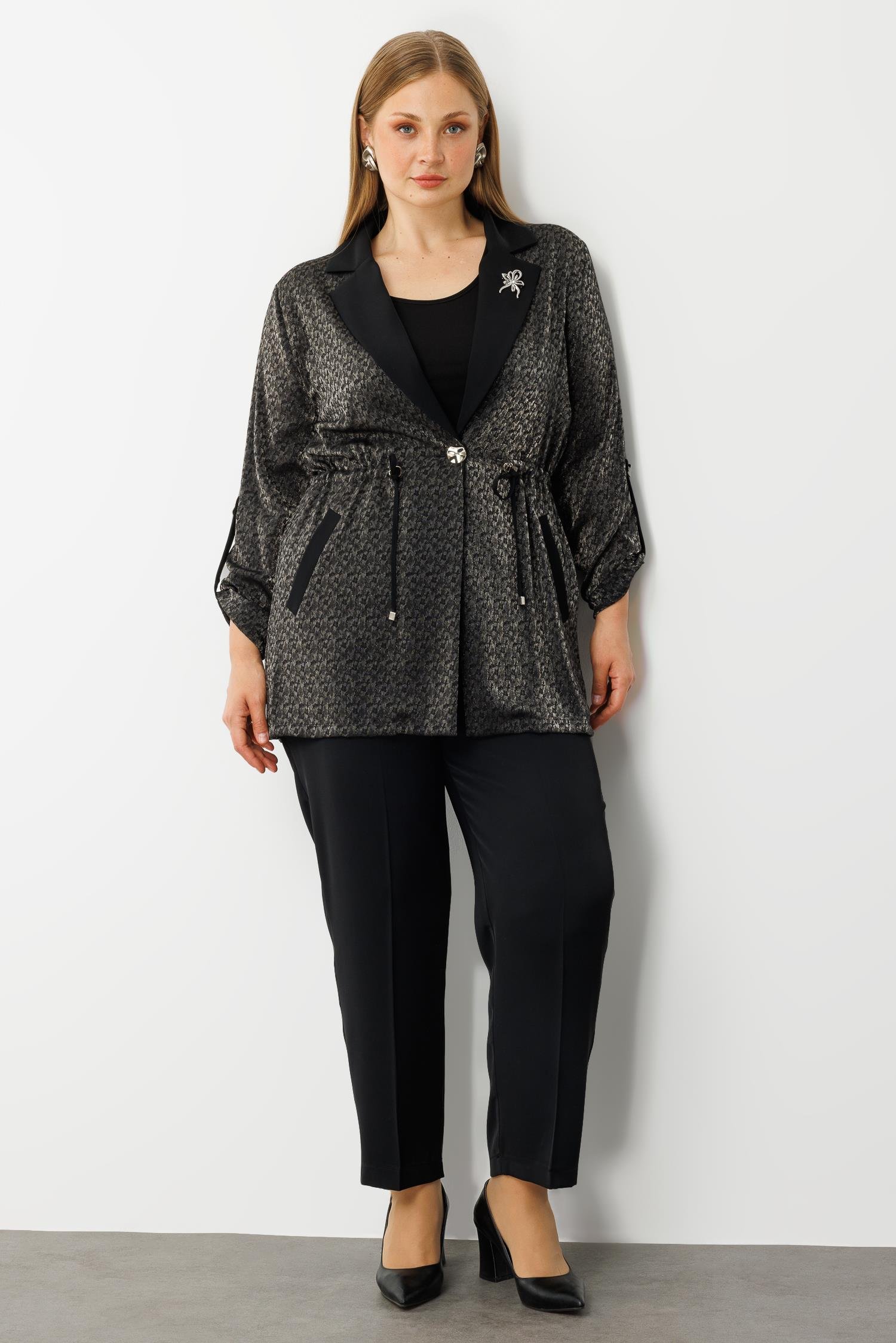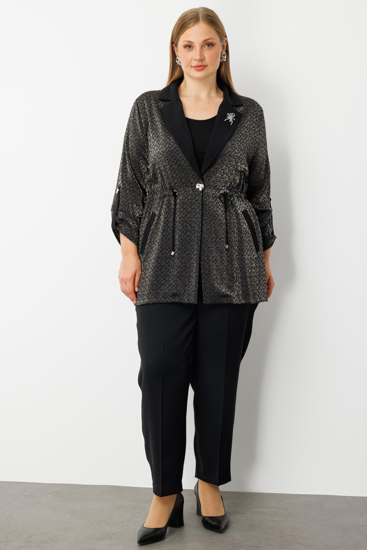 Modailgi Mono Yaka Yakası Broşlu Beli Büzgülü İkili Takım Siyah (GLD260TKM40304-263)