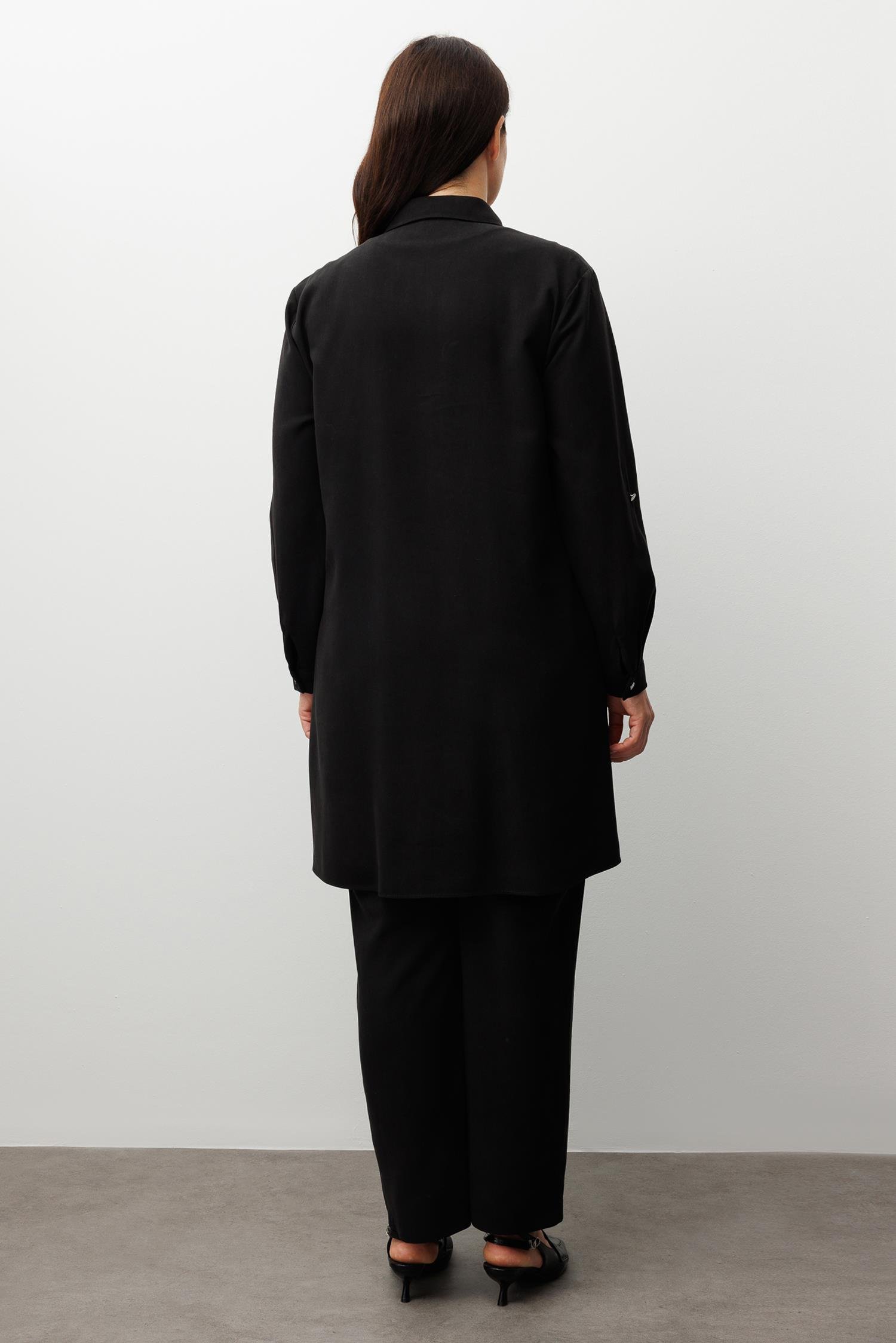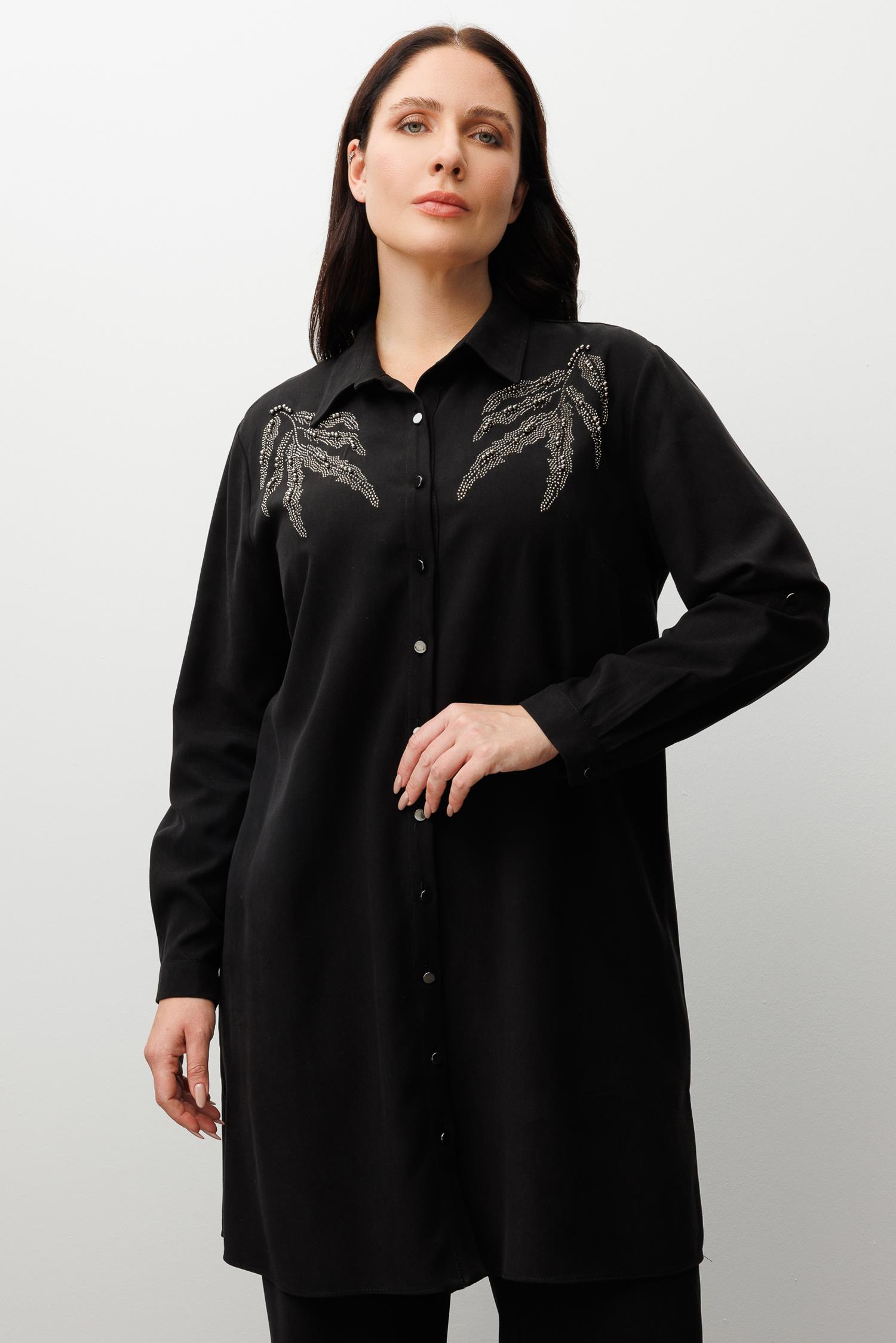 Modailgi Ön Robaları Yaprak Desenli Taş Tunik Siyah (GLD260TNK40301-263)